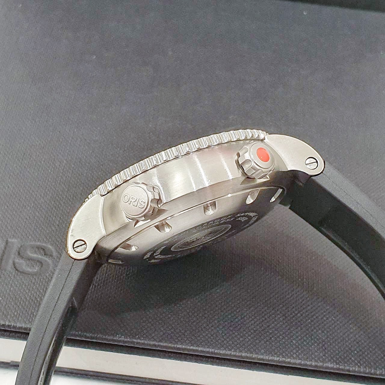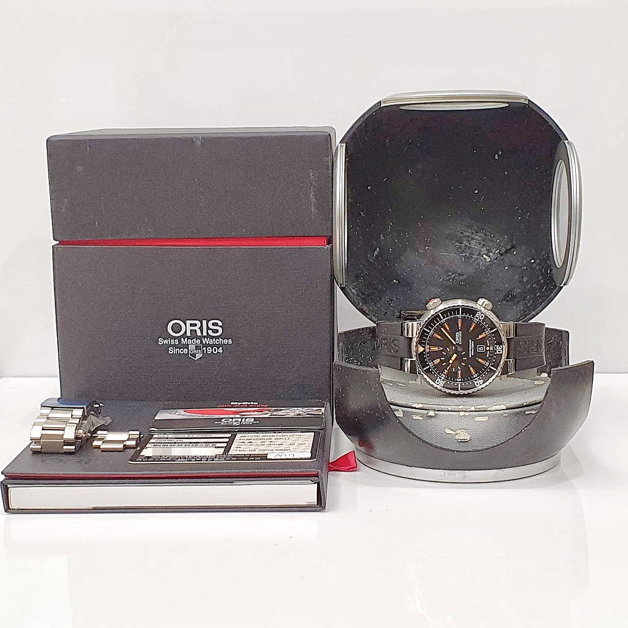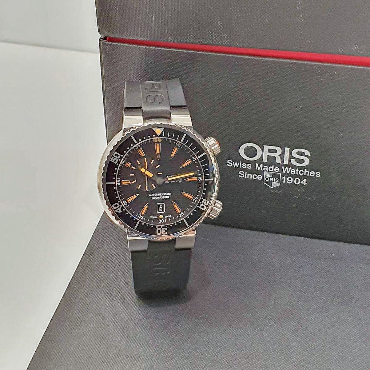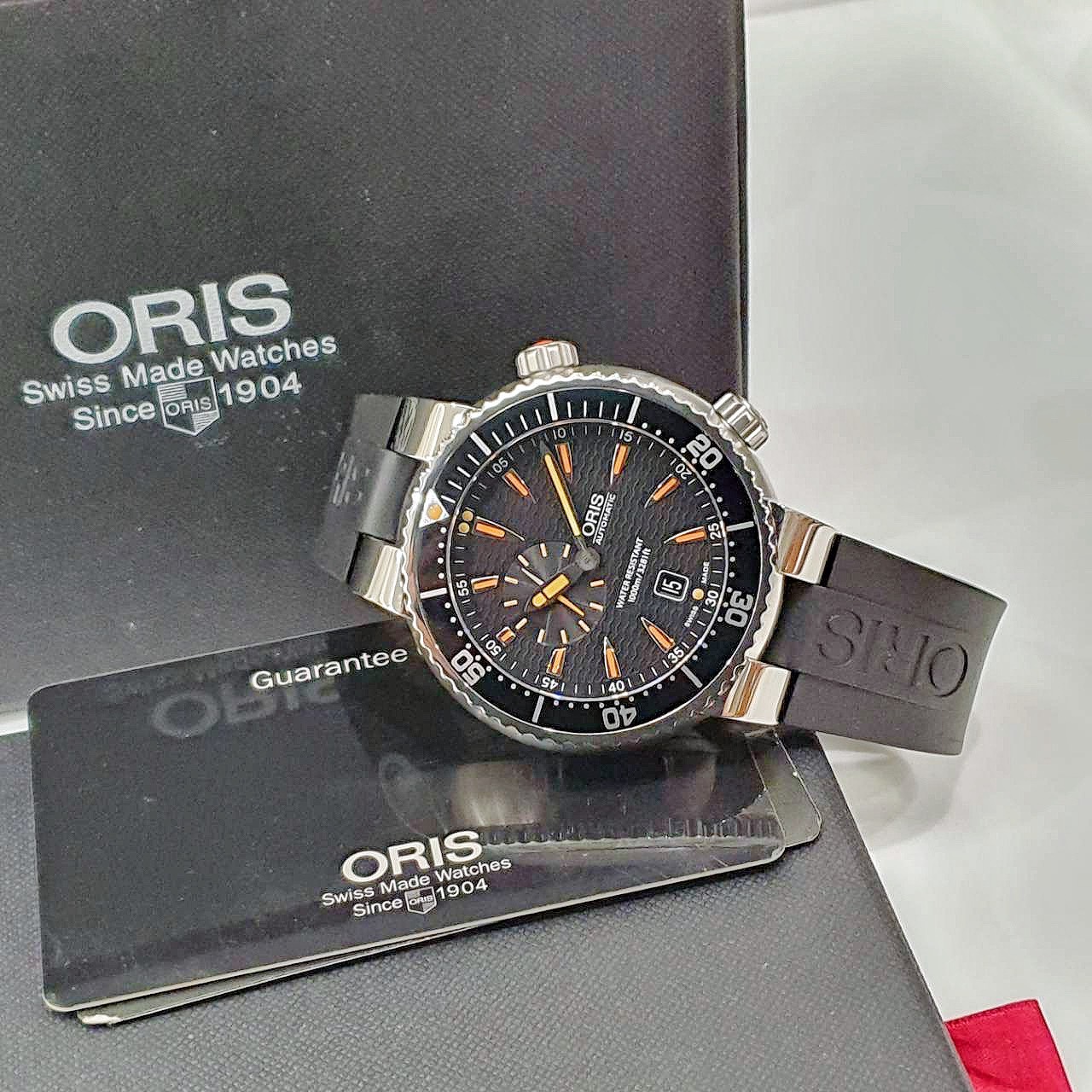 ORIS豪利時 0164376098454 Divers系列 黑面波浪紋 橘色時標 2011/01 潛水錶 小秒針 日期窗 原廠帶/錶扣 附原廠鋼帶 錶徑47mm 自動上鍊 不鏽鋼材質 防水1000米 原廠盒單齊全 保養完成