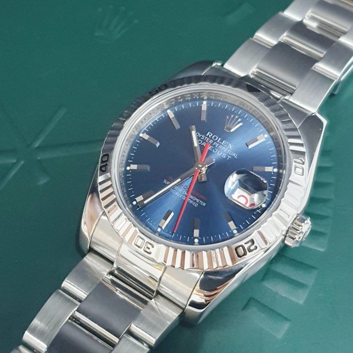 ROLEX 勞力士 116264 Datejust 爬山虎系列 可轉動太陽圈 藍面紅針 錶徑36mm D字頭 自動上鍊 不鏽鋼材質 防水100米 原廠盒裝 店保卡 保養完成