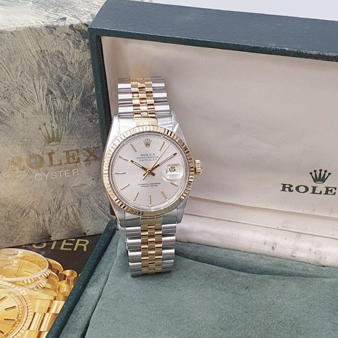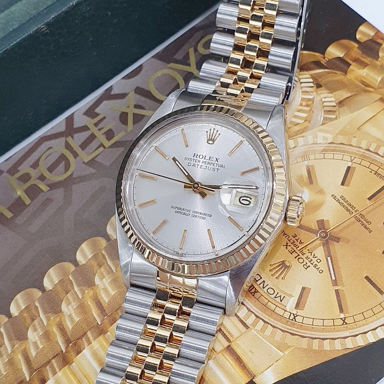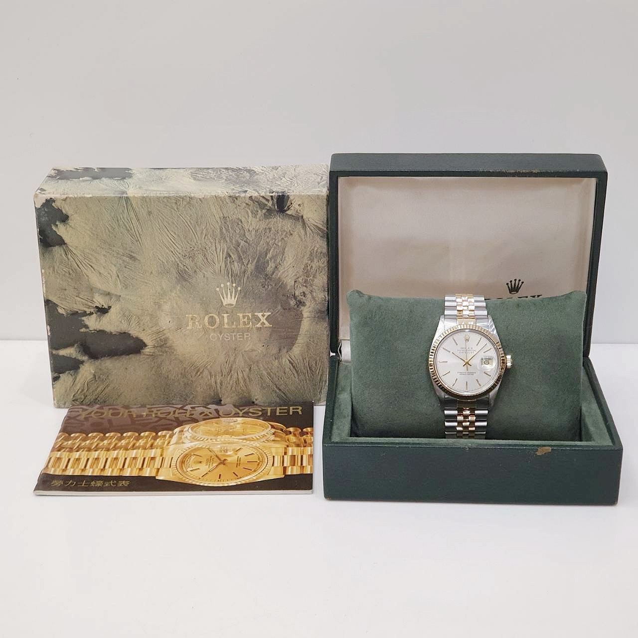 ROLEX勞力士 16013 Datejust 蠔式日誌 銀面T柱 錶耳有孔 錶徑36mm 自動上鍊 18K金及不鏽鋼 防水100米 900萬字頭 缺證書 原廠盒裝 店保卡 保養完成