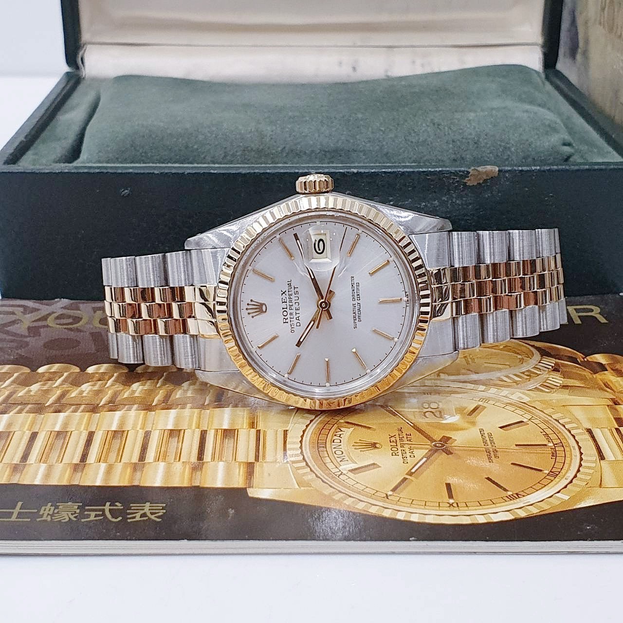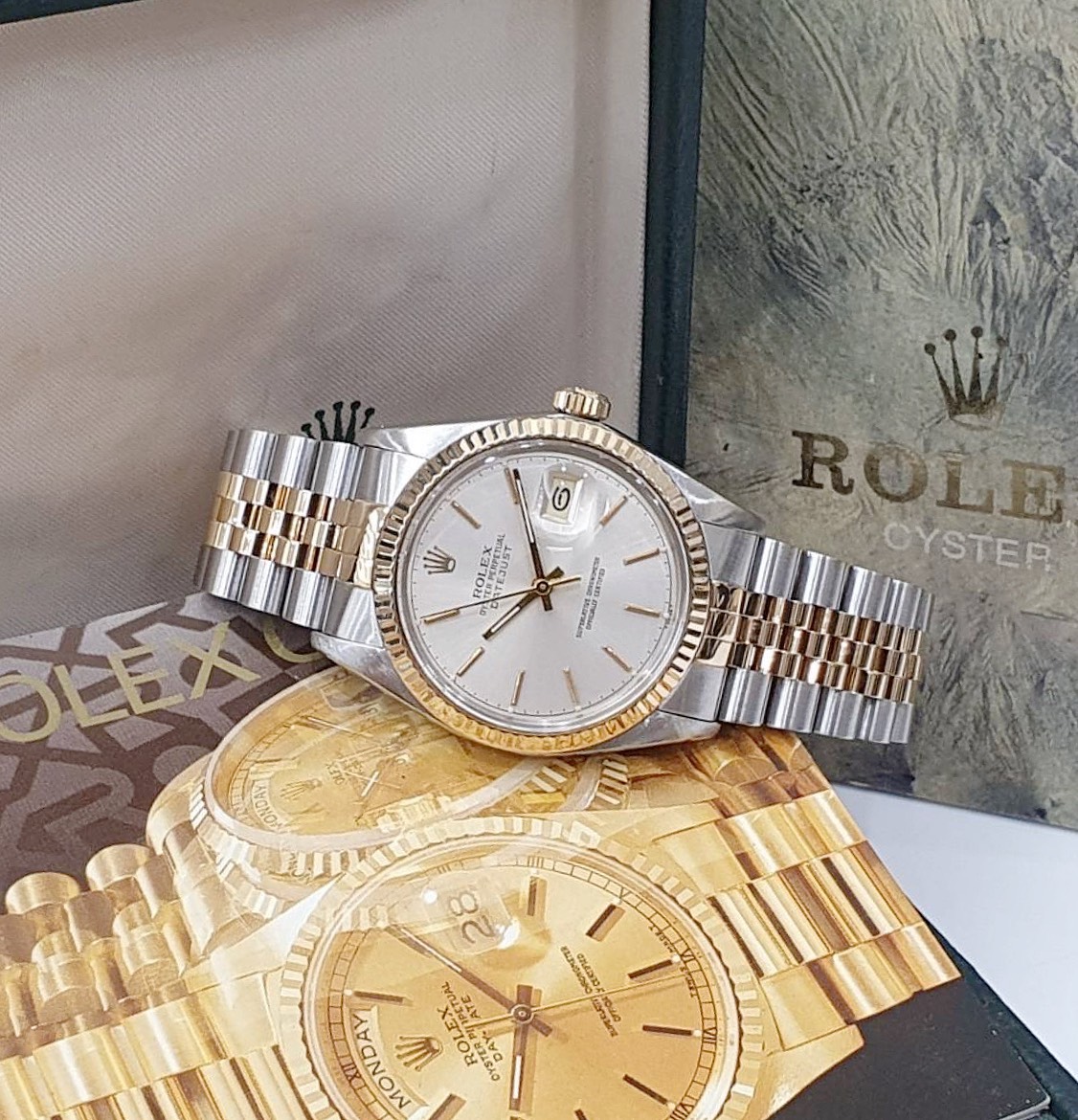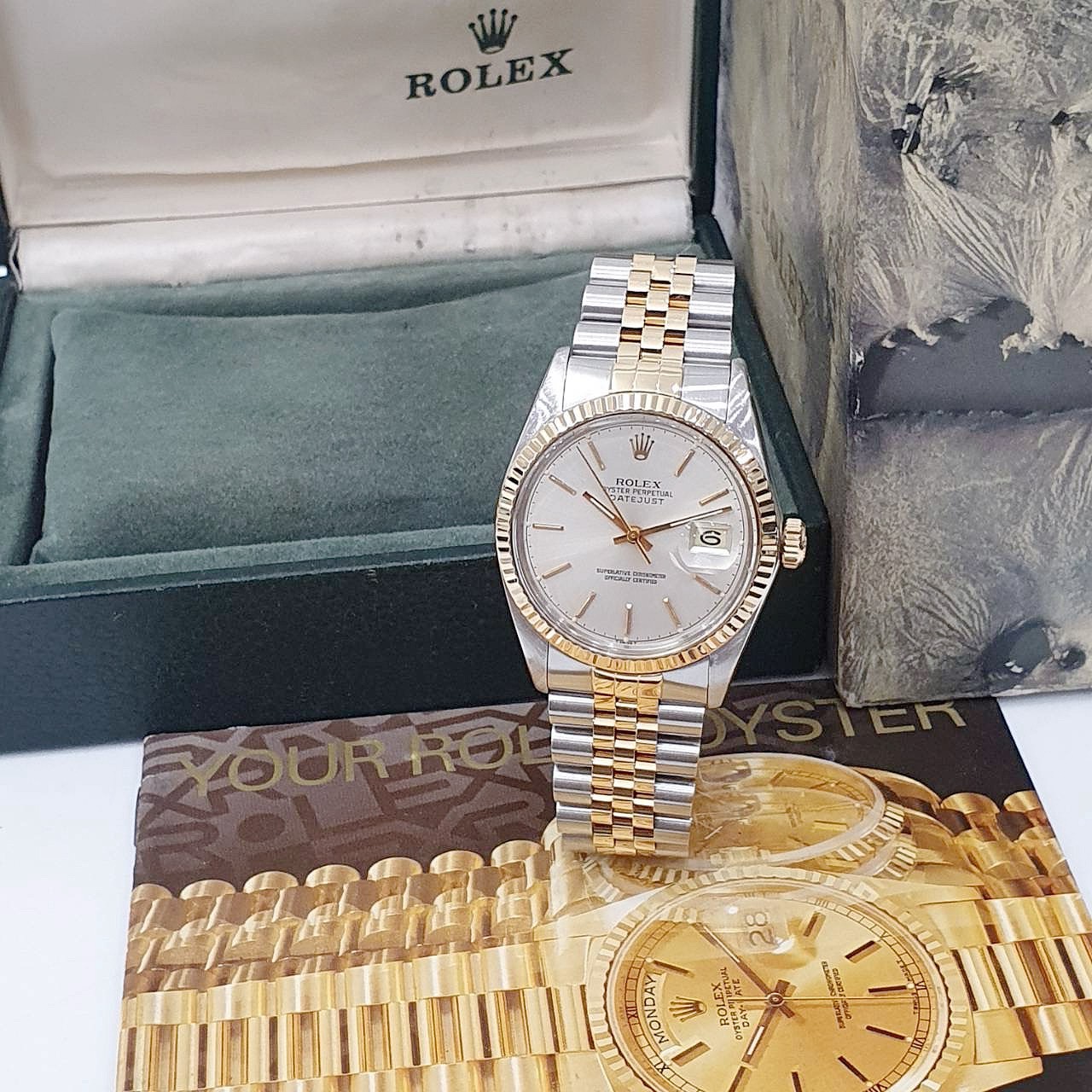ROLEX勞力士 16013 Datejust 蠔式日誌 銀面T柱 錶耳有孔 錶徑36mm 自動上鍊 18K金及不鏽鋼 防水100米 900萬字頭 缺證書 原廠盒裝 店保卡 保養完成