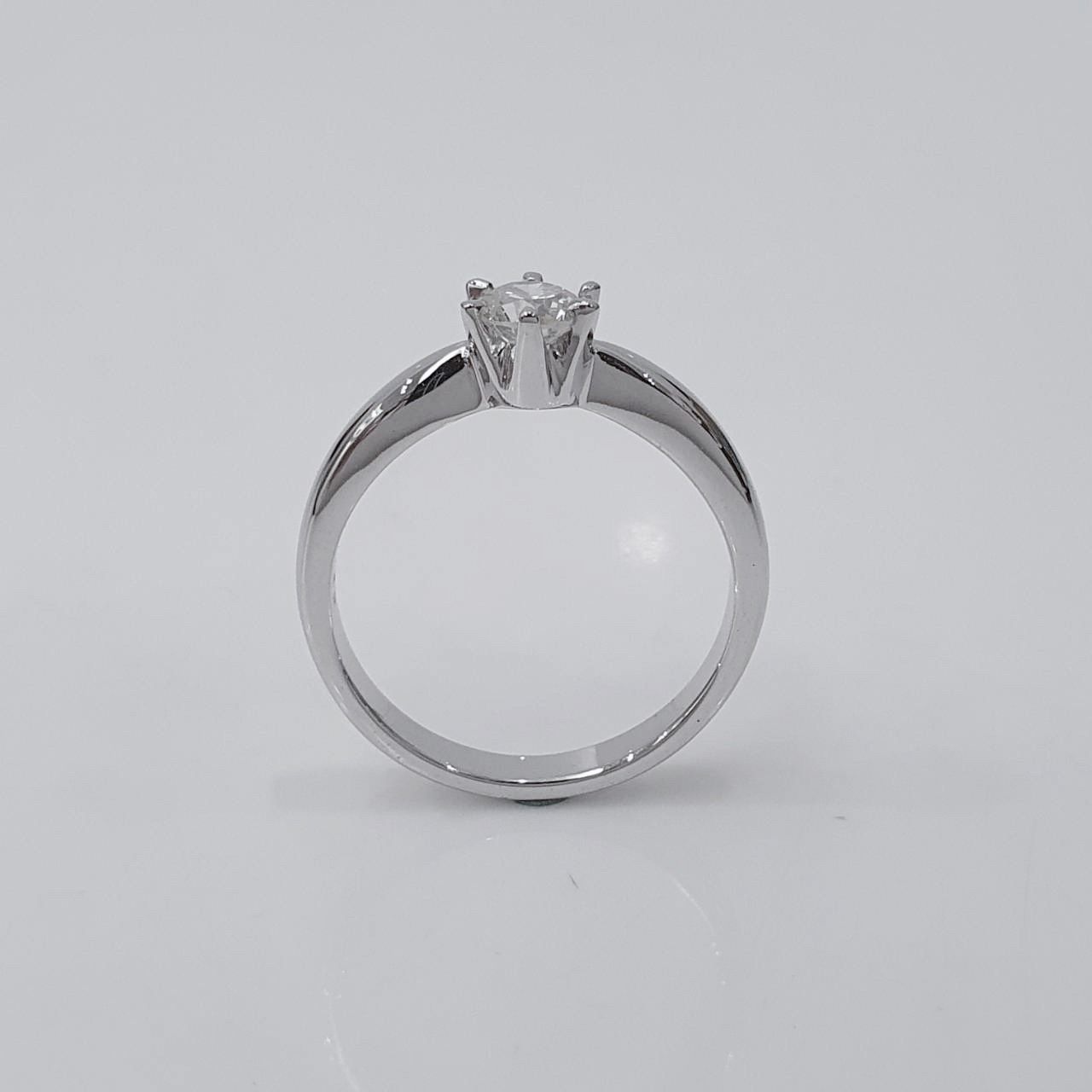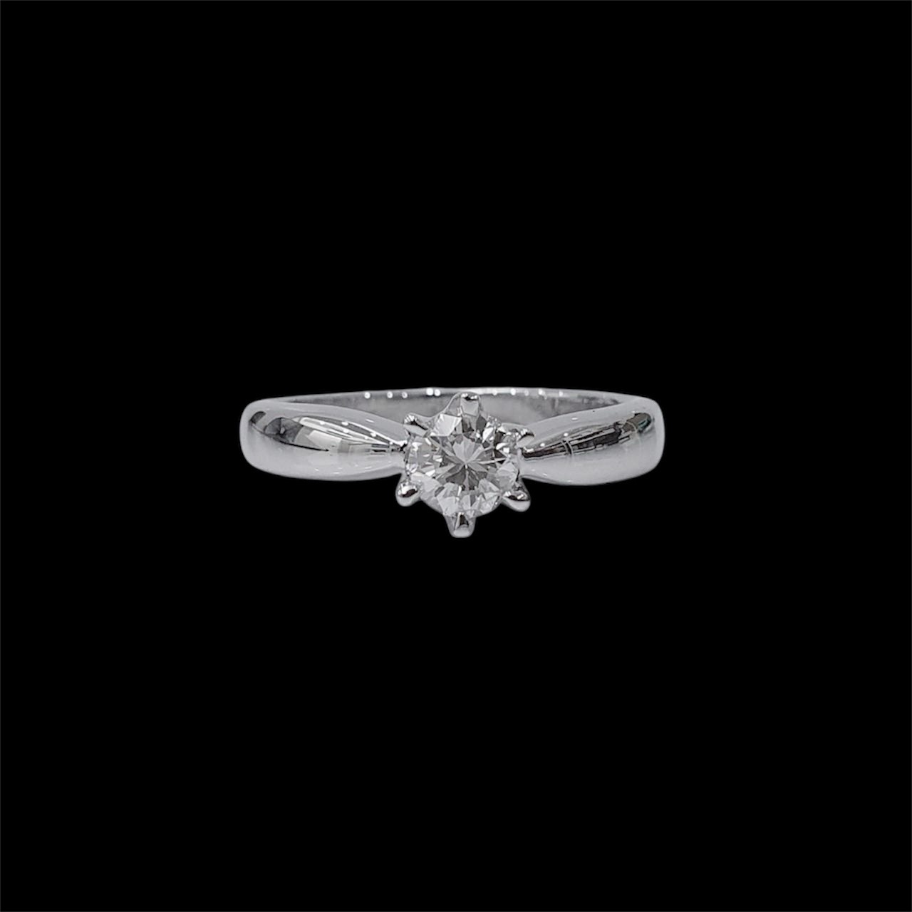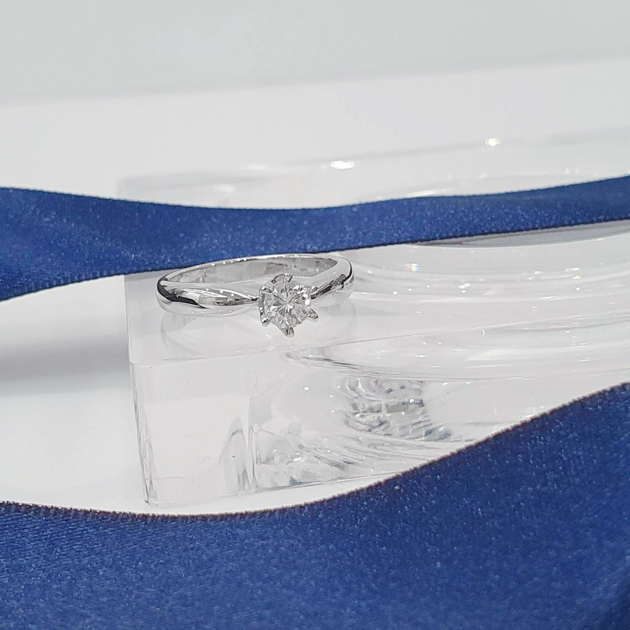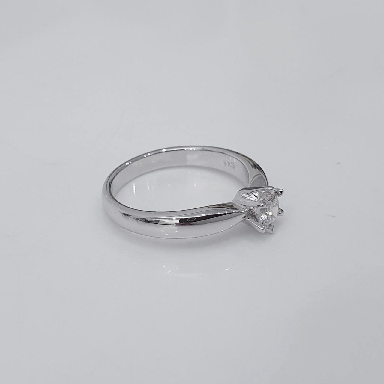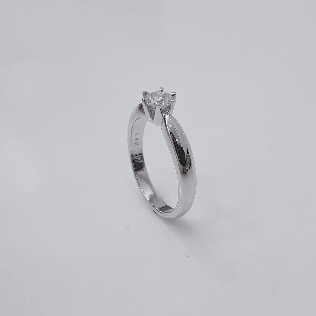 天然鑽石戒指 線條單鑽 主鑽0.42克拉 白K金戒台 國際圍12號 面寬0.6cm 總重0.99錢 附精美盒裝 店保卡