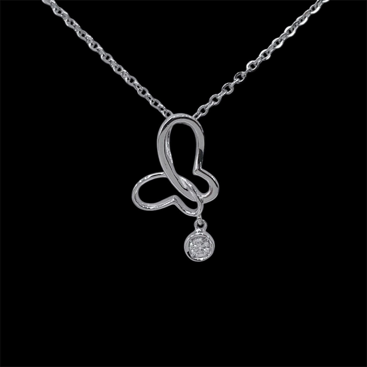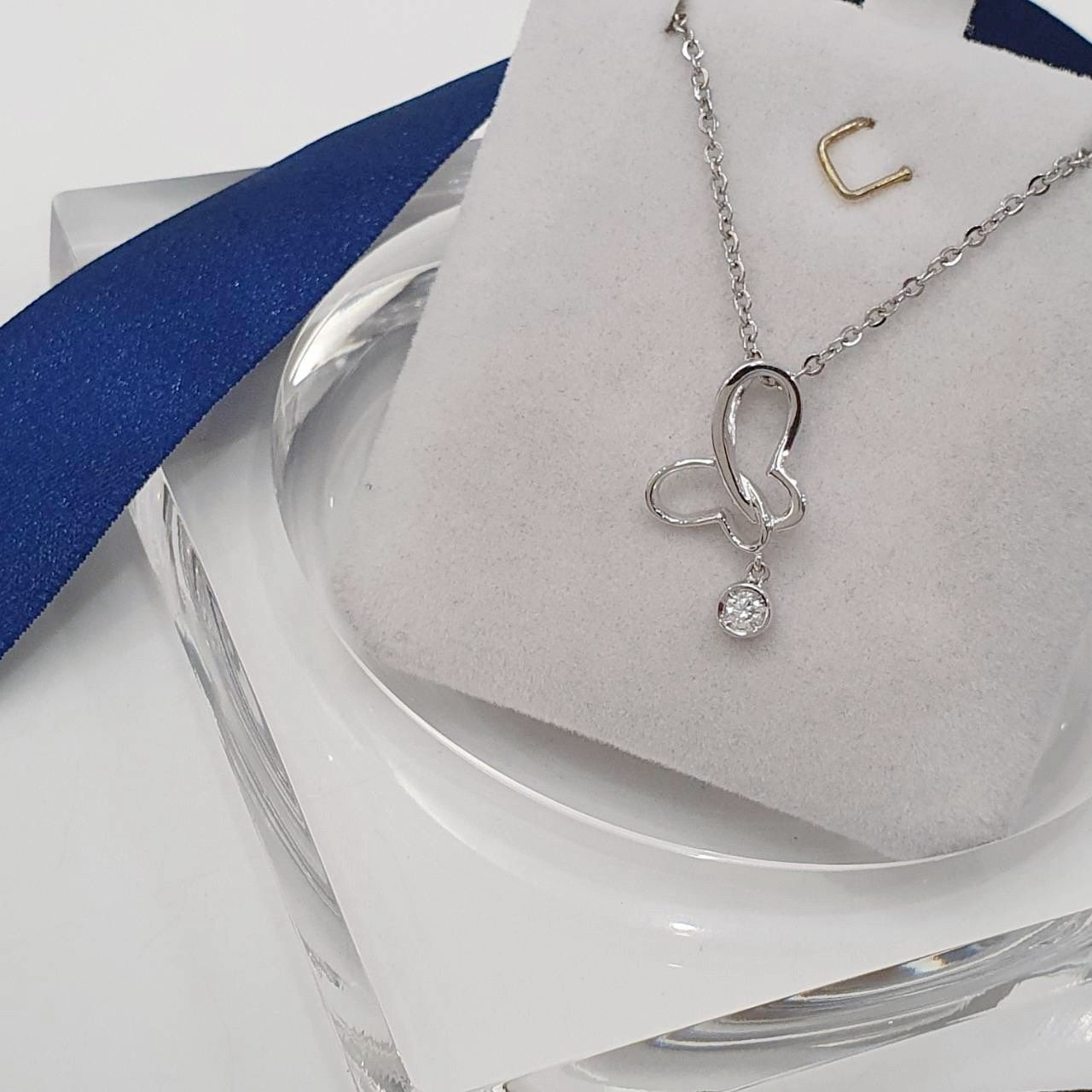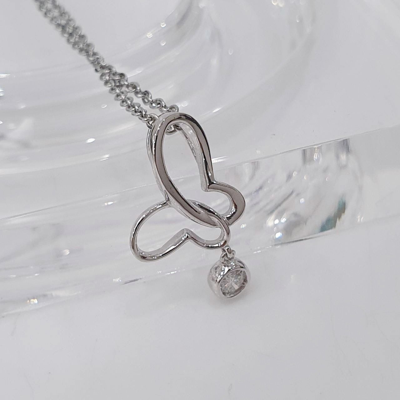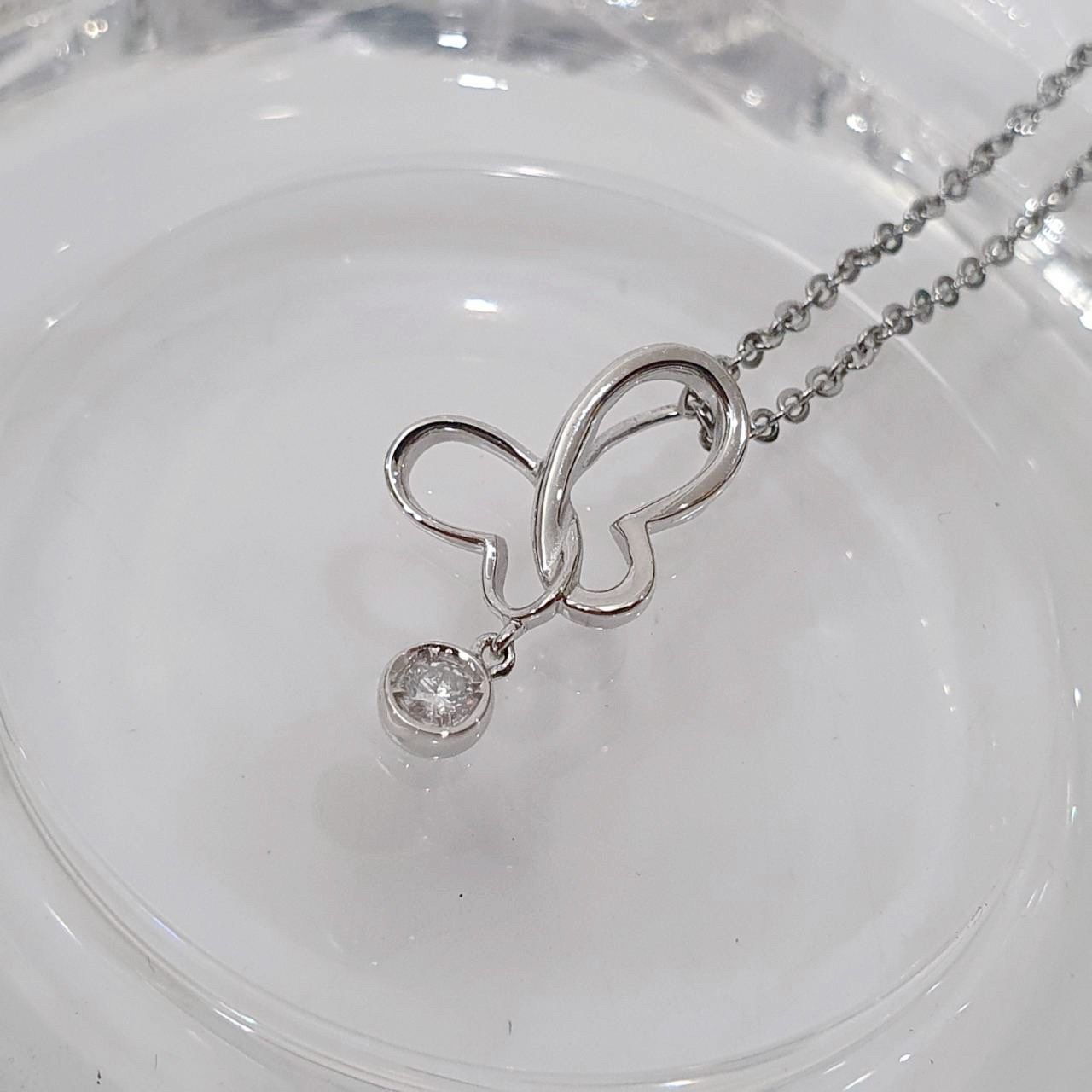 全新品 天然鑽石項鍊 蝶帶鑽 主鑽10分 白K金墜台 墜2.2x1.5cm 總重0.34錢 鋼鍊 附精美盒裝 店保卡
