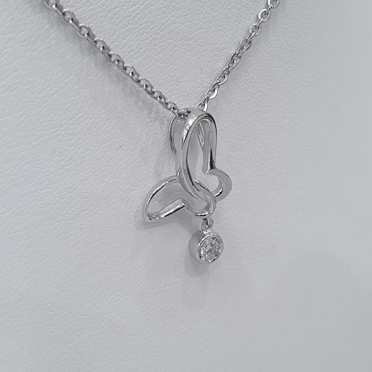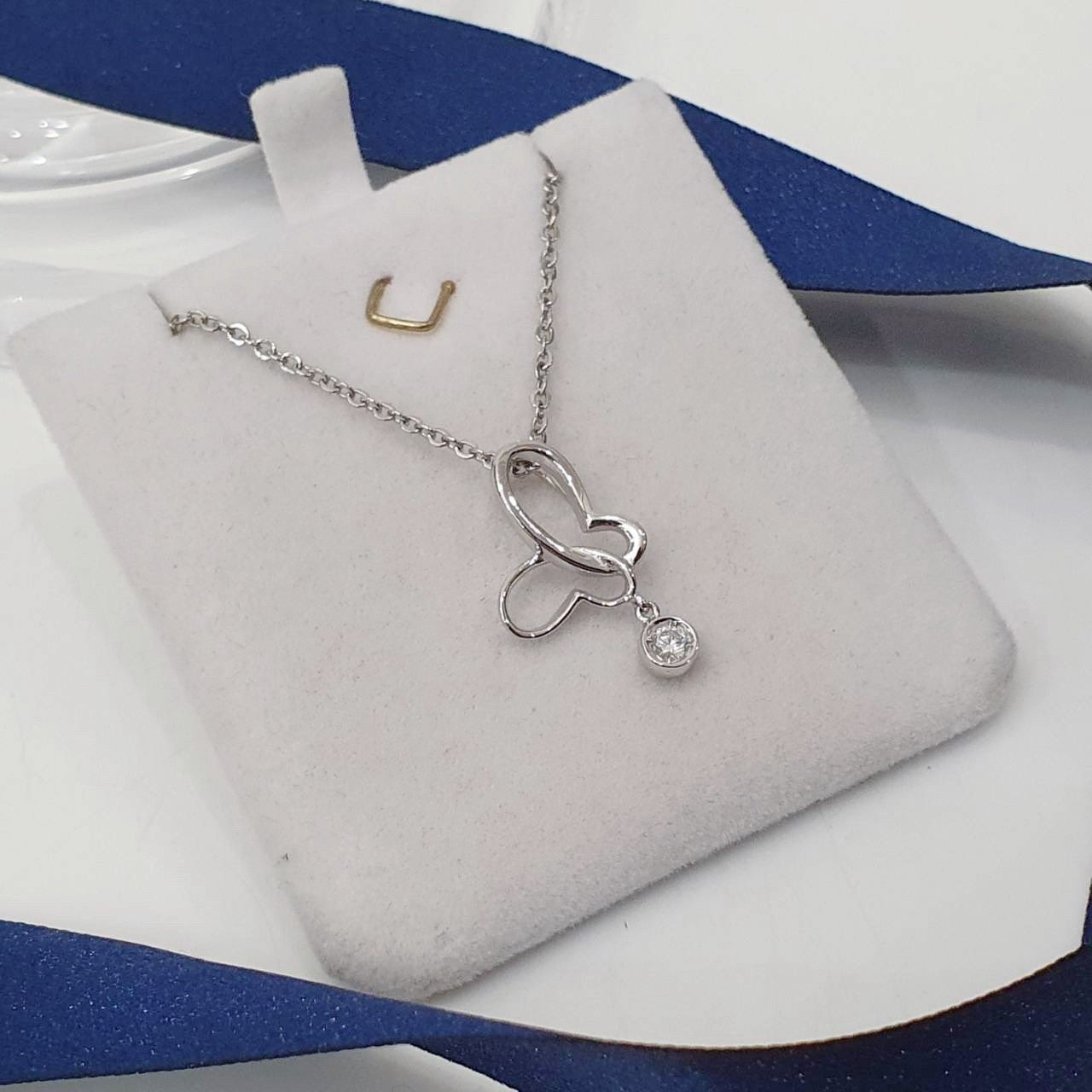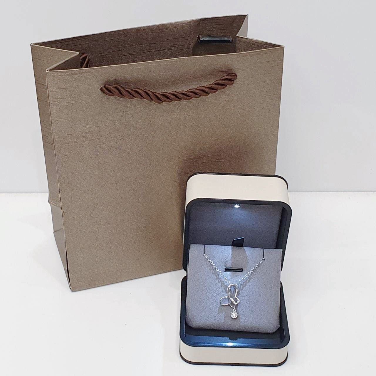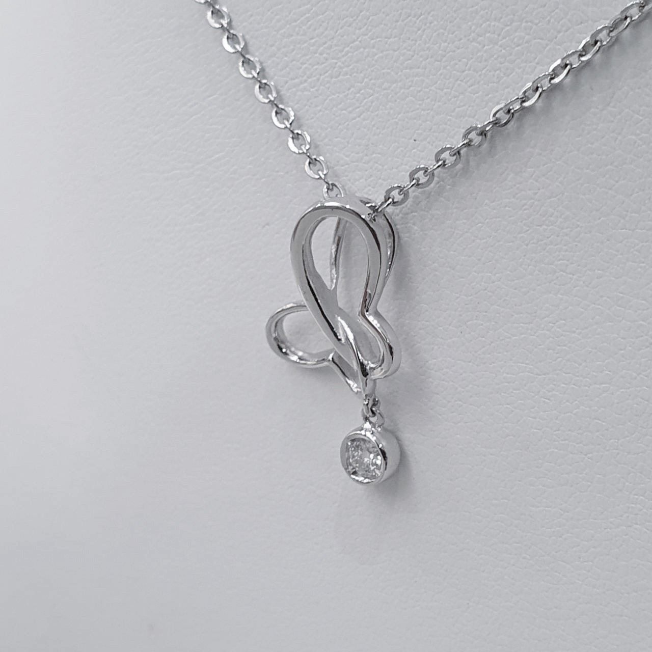全新品 天然鑽石項鍊 蝶帶鑽 主鑽10分 白K金墜台 墜2.2x1.5cm 總重0.34錢 鋼鍊 附精美盒裝 店保卡
