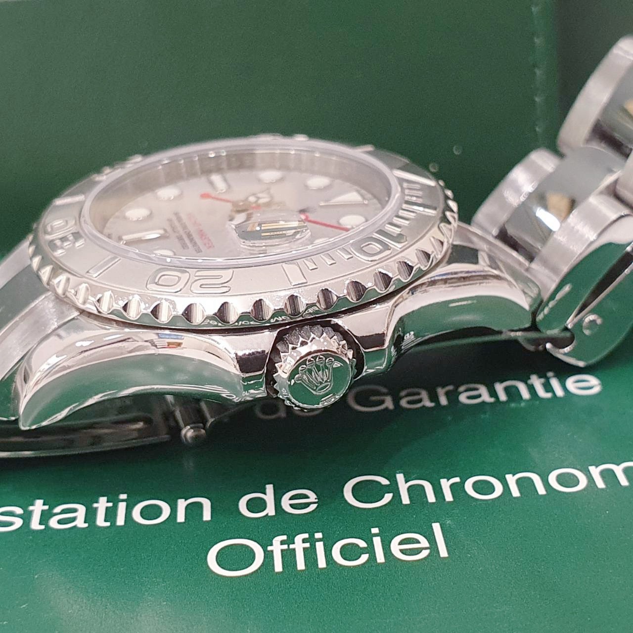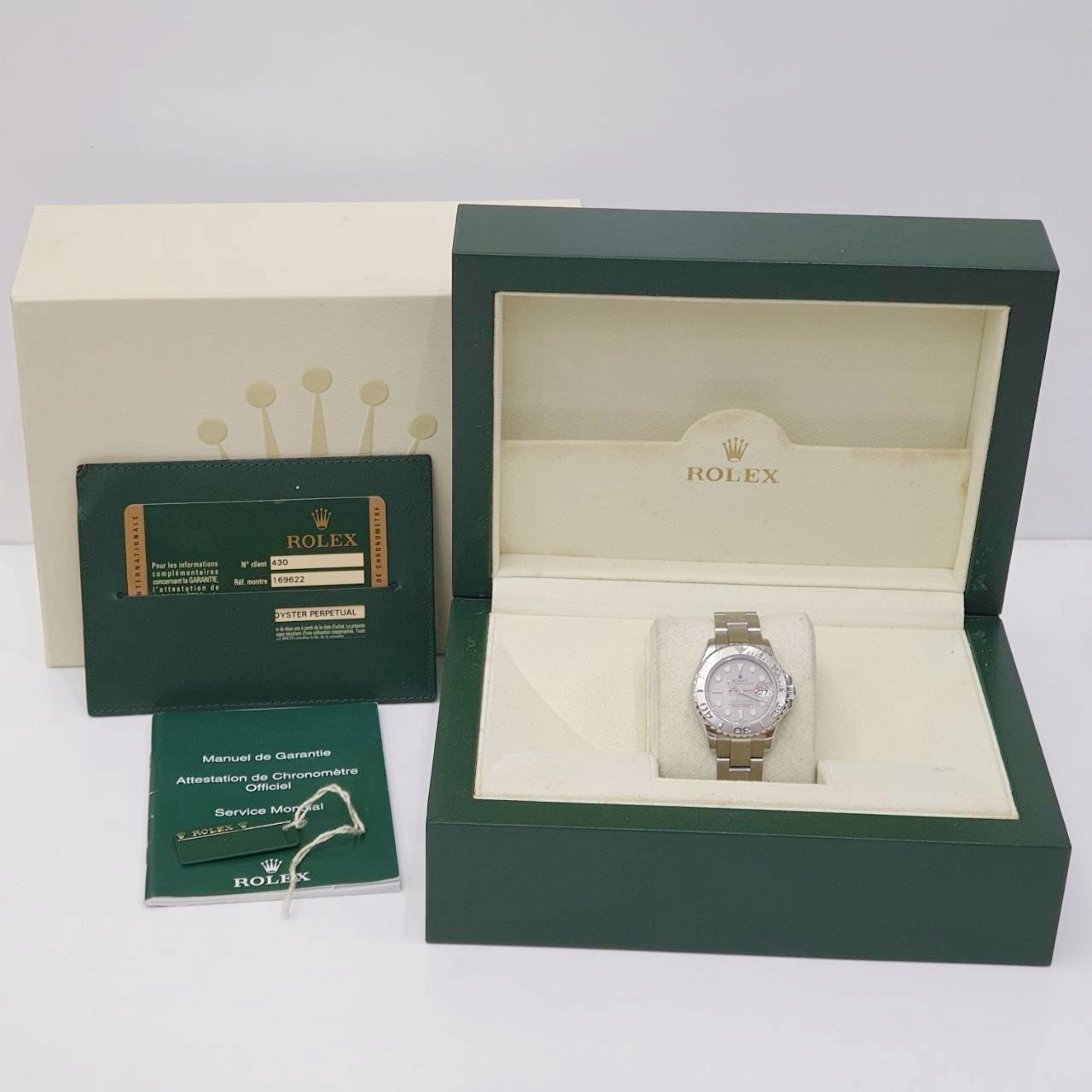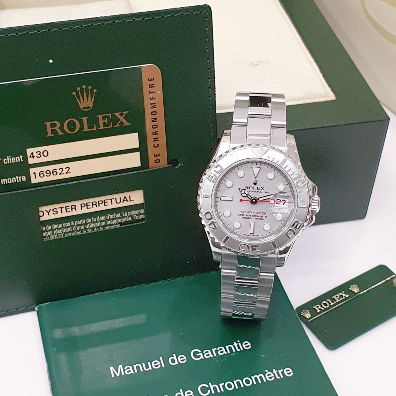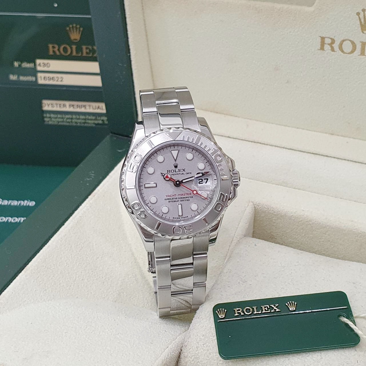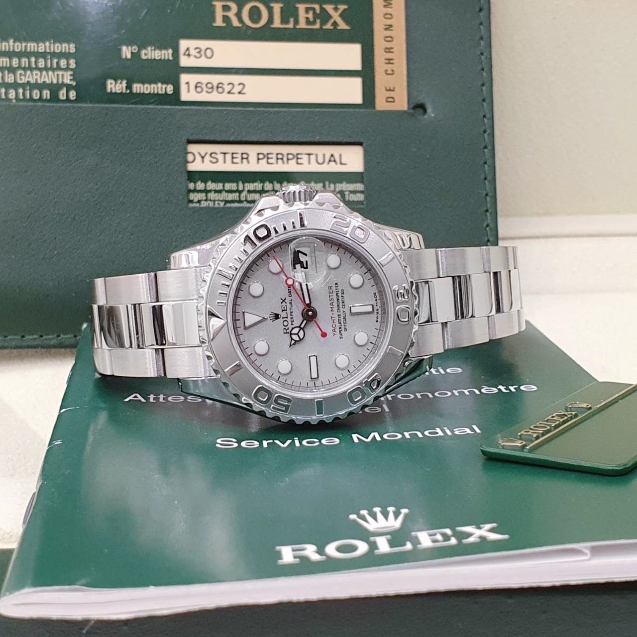 Rolex 勞力士169622 Yacht-Master 鉑金小遊艇 2019/12卡 灰面紅針 小錶徑 鉑金噴砂面 錶徑29mm 自動上鍊 PT950鉑金錶圈 不鏽鋼材質 防水100米 原廠盒單齊全