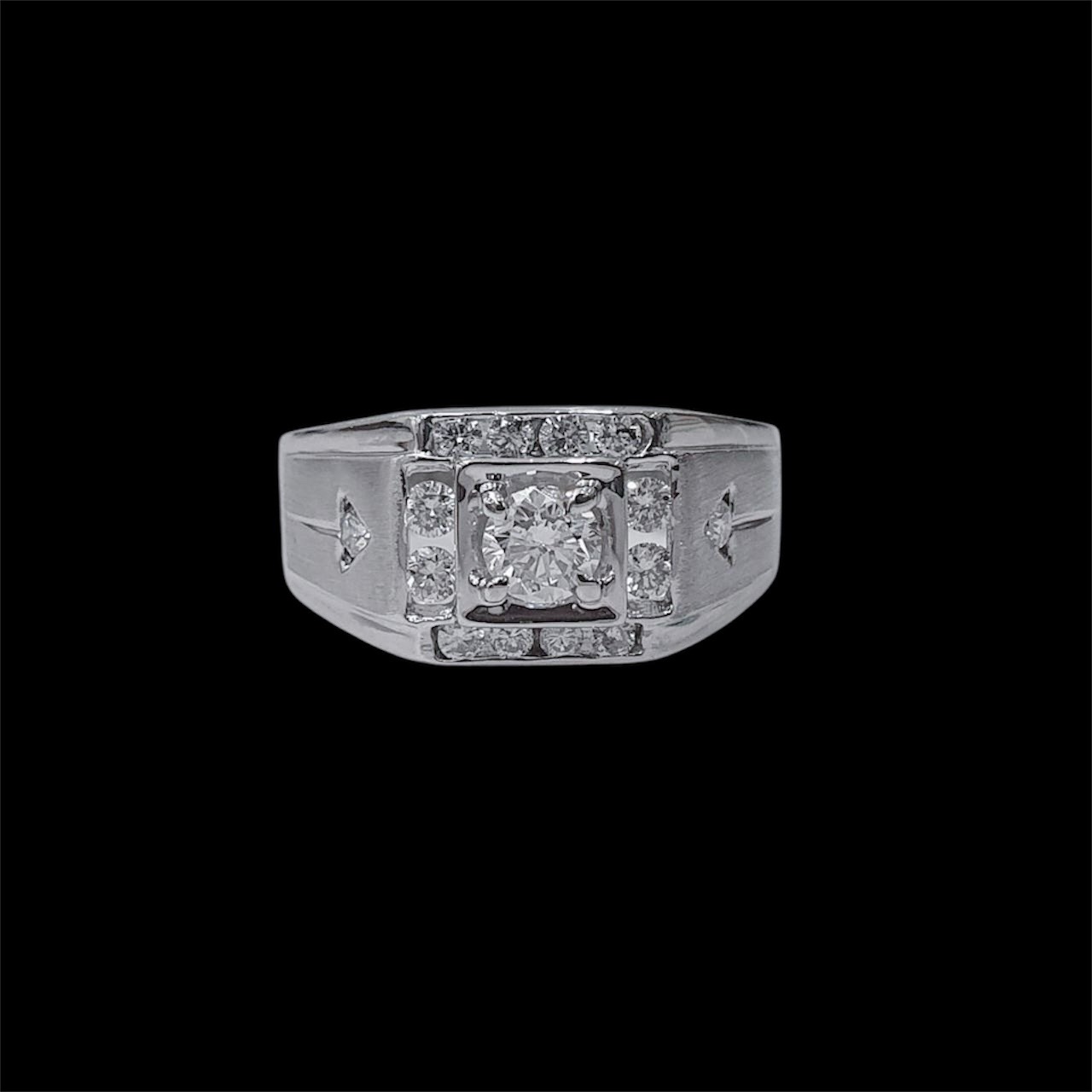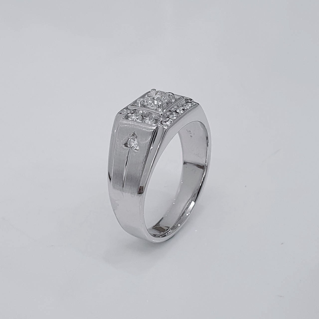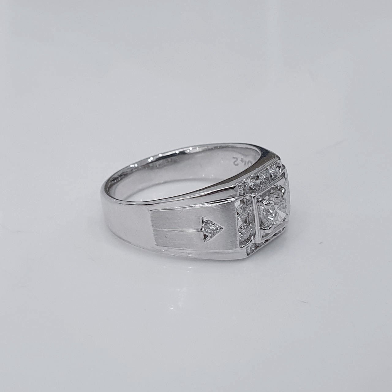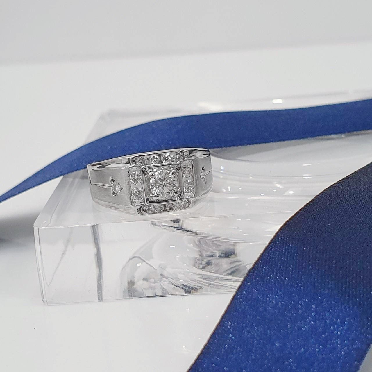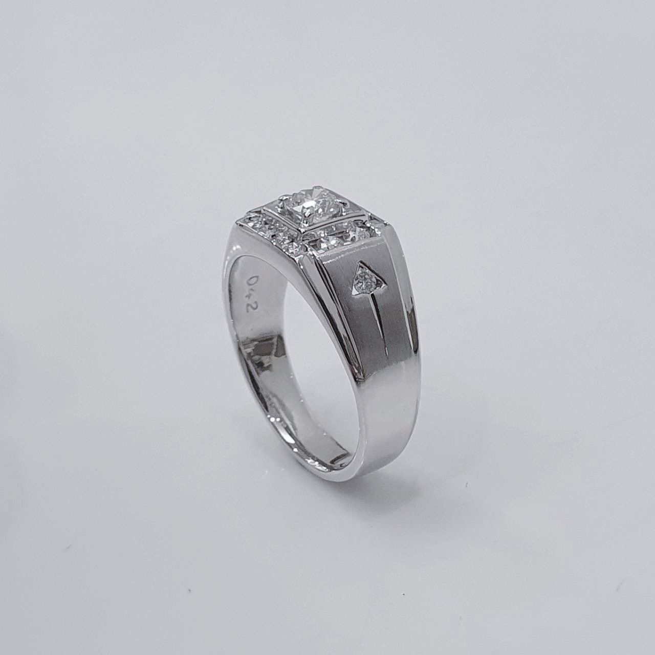 全新品天然鑽石男戒 主鑽0.42克拉 配鑽約0.32ct 白K金戒台 國際圍17號 面寬1cm 總重1.98錢 附精美盒裝 店保卡