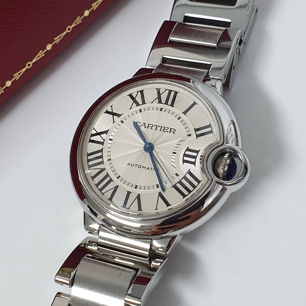 Cartier卡地亞 藍氣球系列 WSBB0048 白面羅馬時標 中型 折疊扣 錶徑36mm 自動上鍊 不鏽鋼材質 防水30米 缺證書 原廠盒裝 店保卡 保養完成