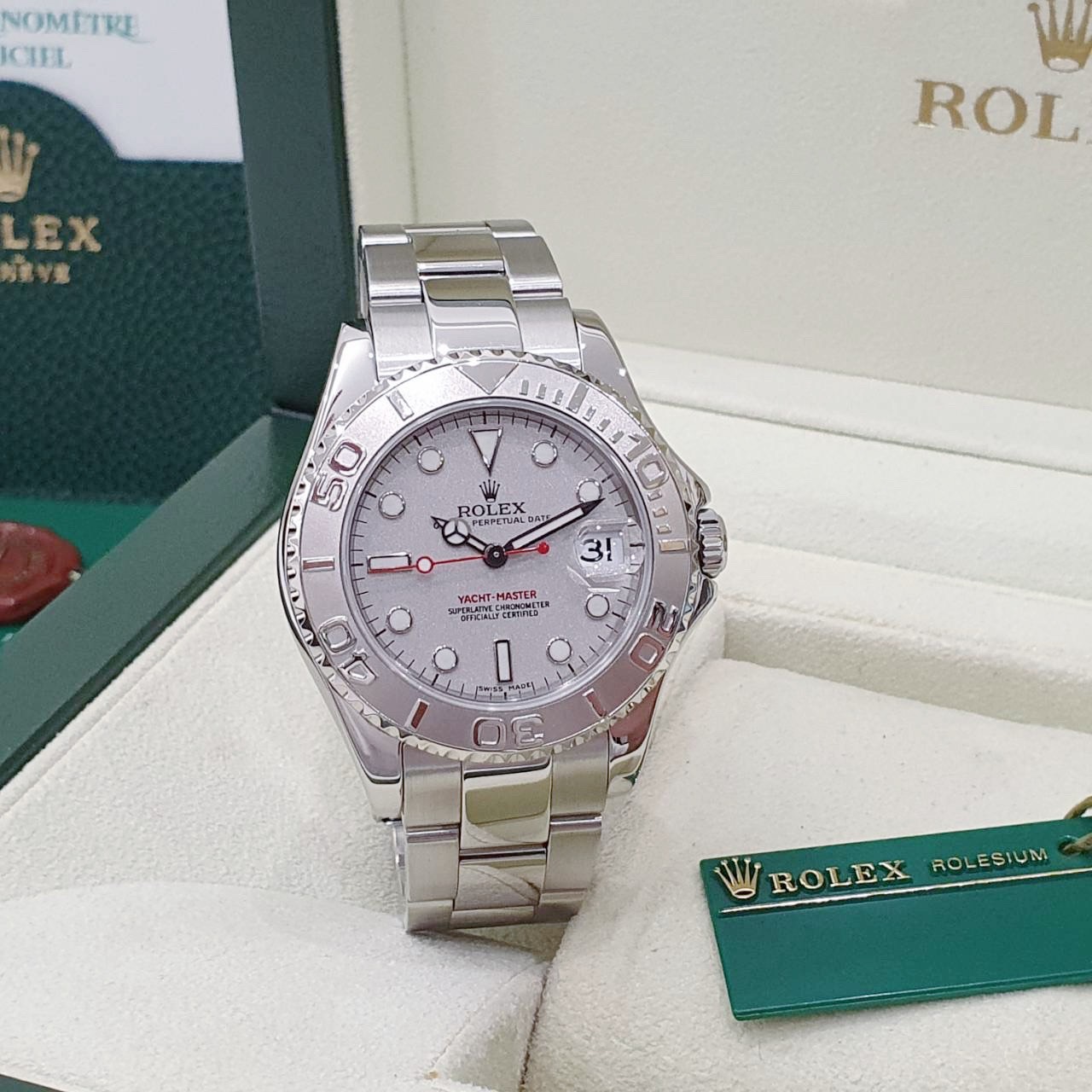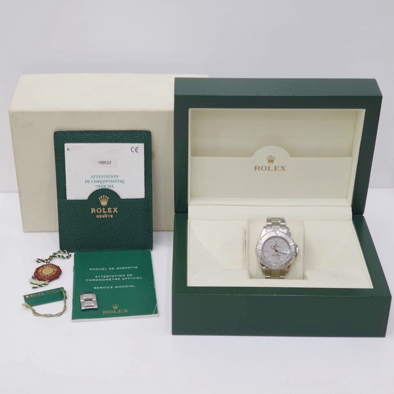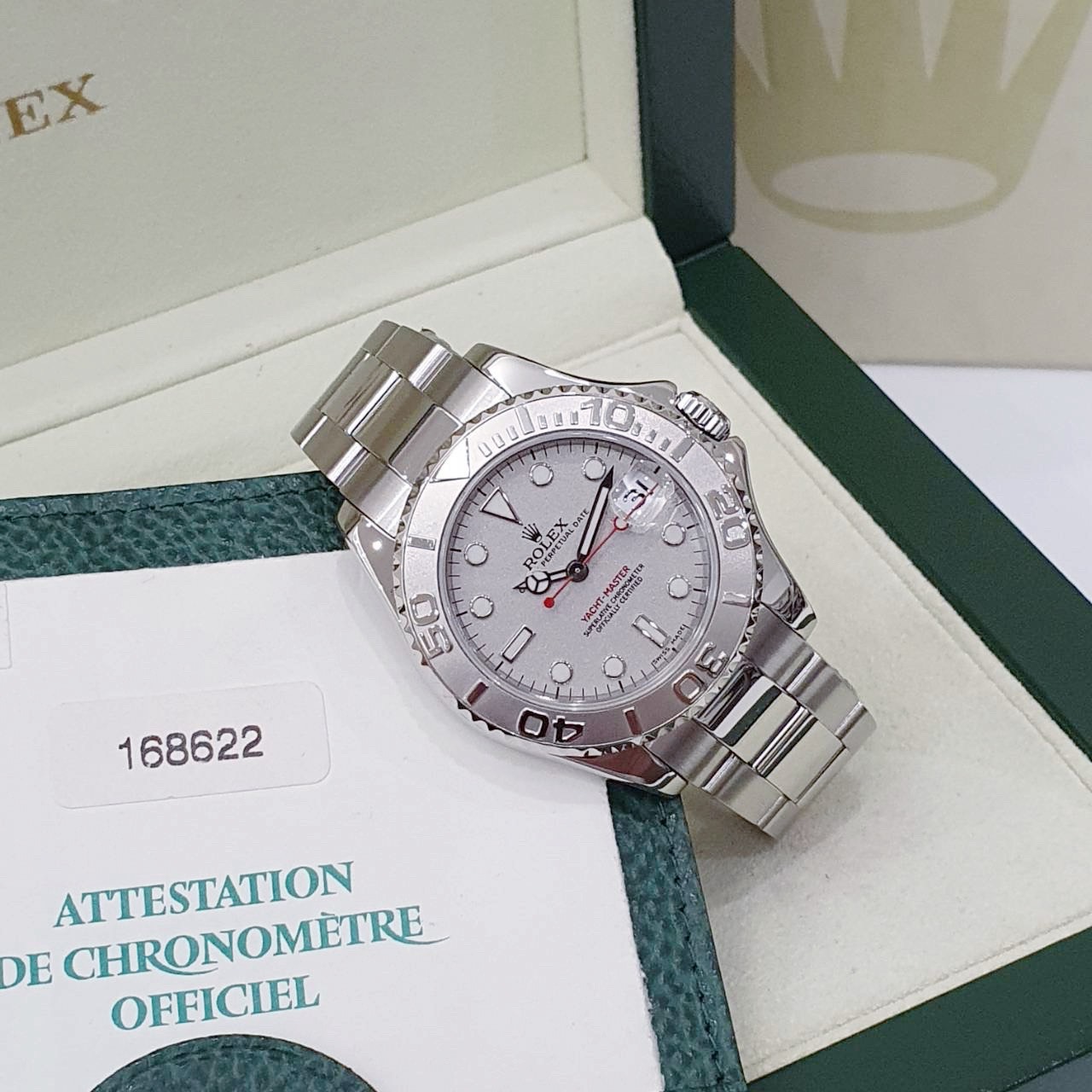 ROLEX 勞力士 Yacht-Master 168622 中型遊艇 2001/07 灰面紅針 鉑金錶圈 錶徑35mm 自動上錬 不銹鋼材質 防水100米 原廠盒單齊全 保養完成