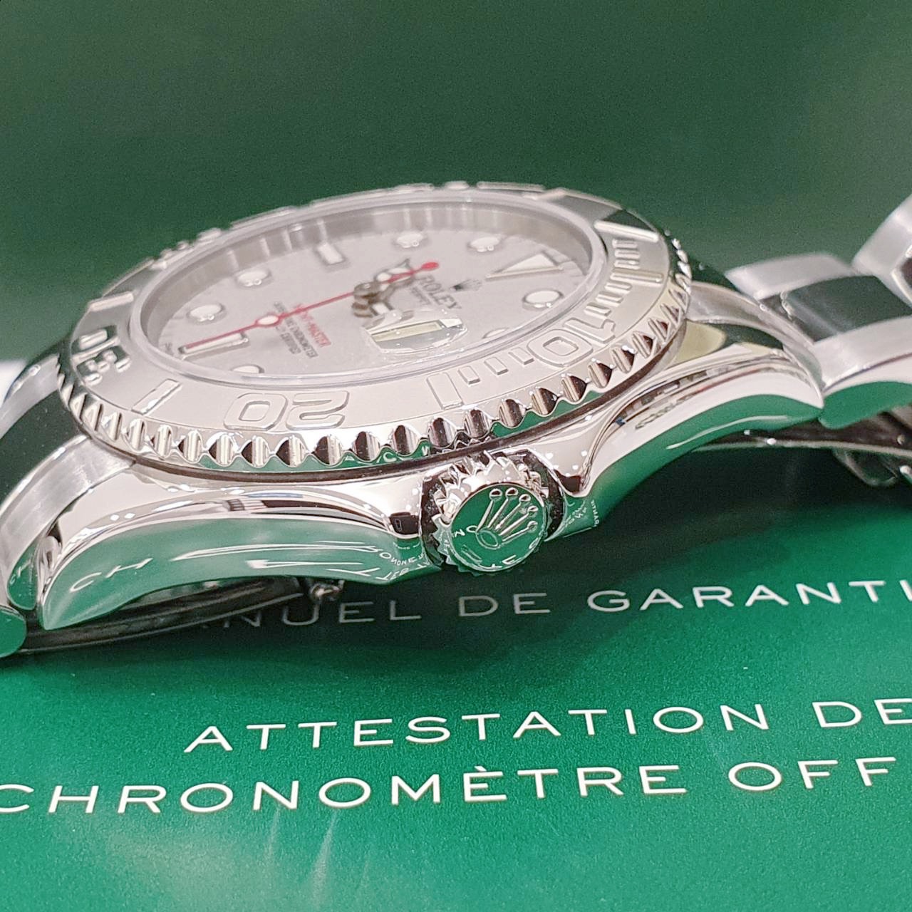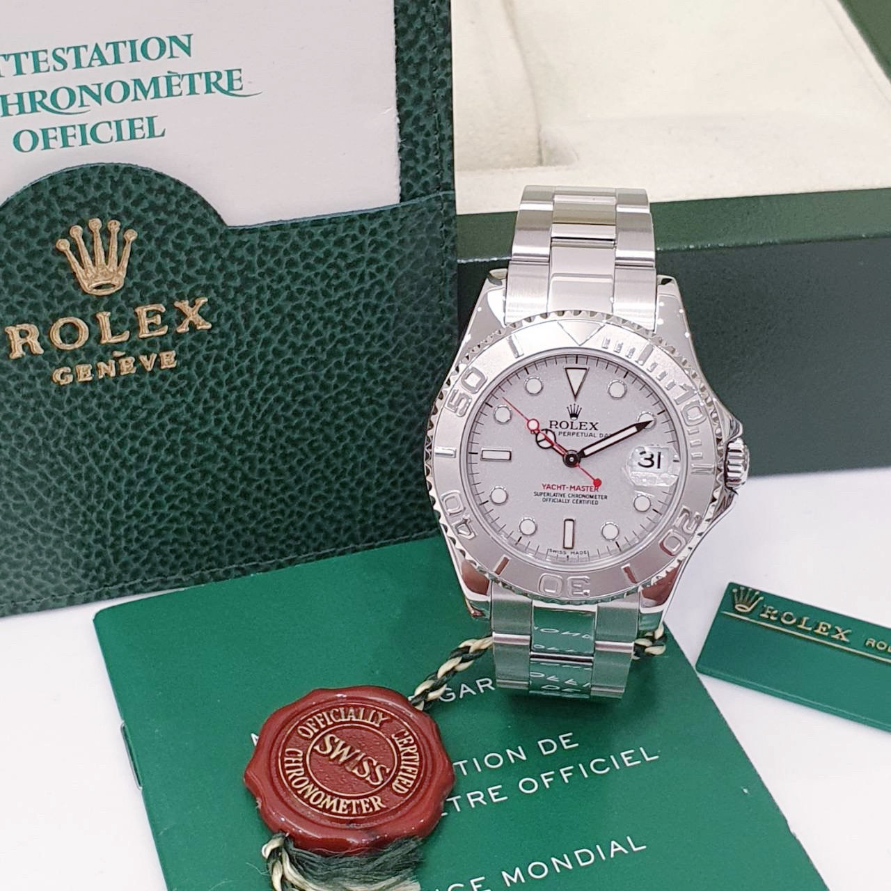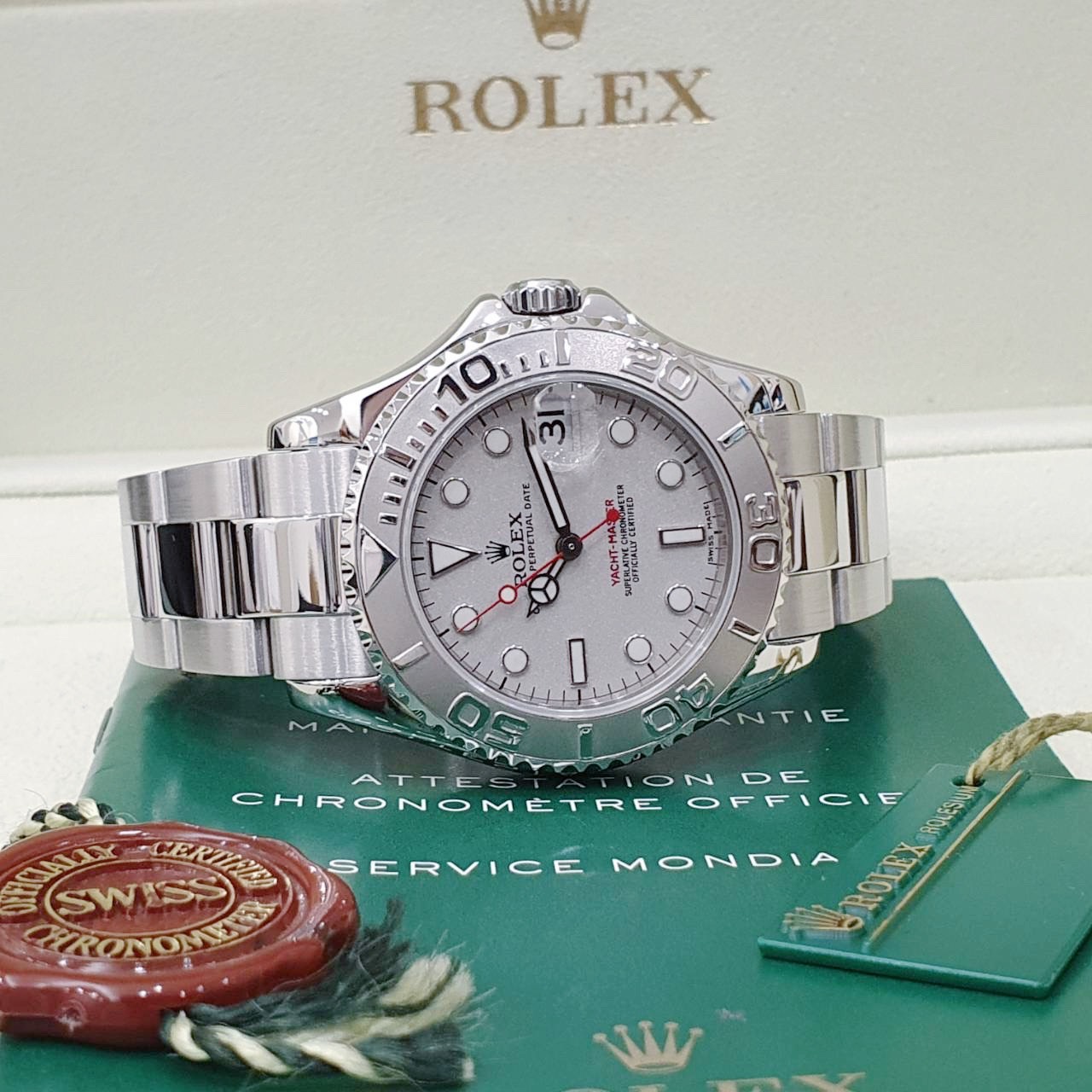 ROLEX 勞力士 Yacht-Master 168622 中型遊艇 2001/07 灰面紅針 鉑金錶圈 錶徑35mm 自動上錬 不銹鋼材質 防水100米 原廠盒單齊全 保養完成