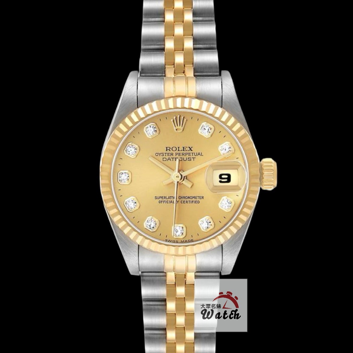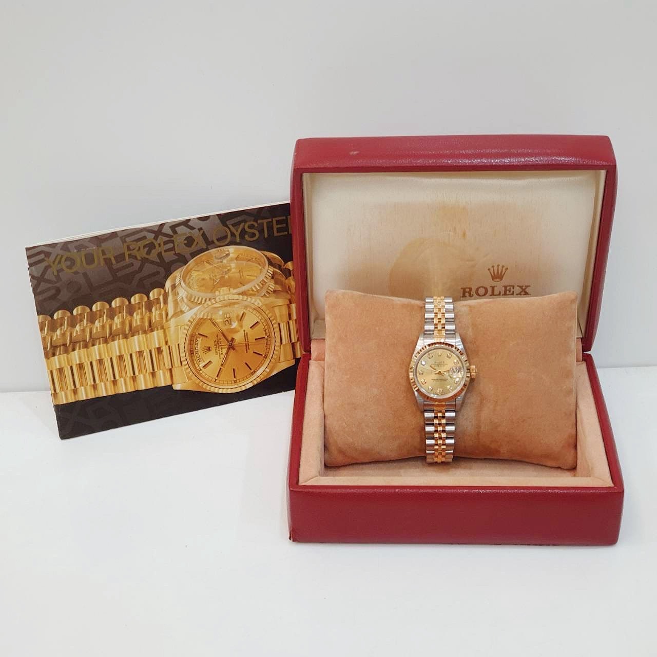 ROLEX 勞力士 69173 Datejust 蠔式女錶 金十鑽面盤 原帶未整理 原廠底蓋貼紙 錶徑26mm 自動上鍊 18K金及不銹鋼 防水100米 W字頭 缺證書 原廠盒裝 店保卡 保養完成