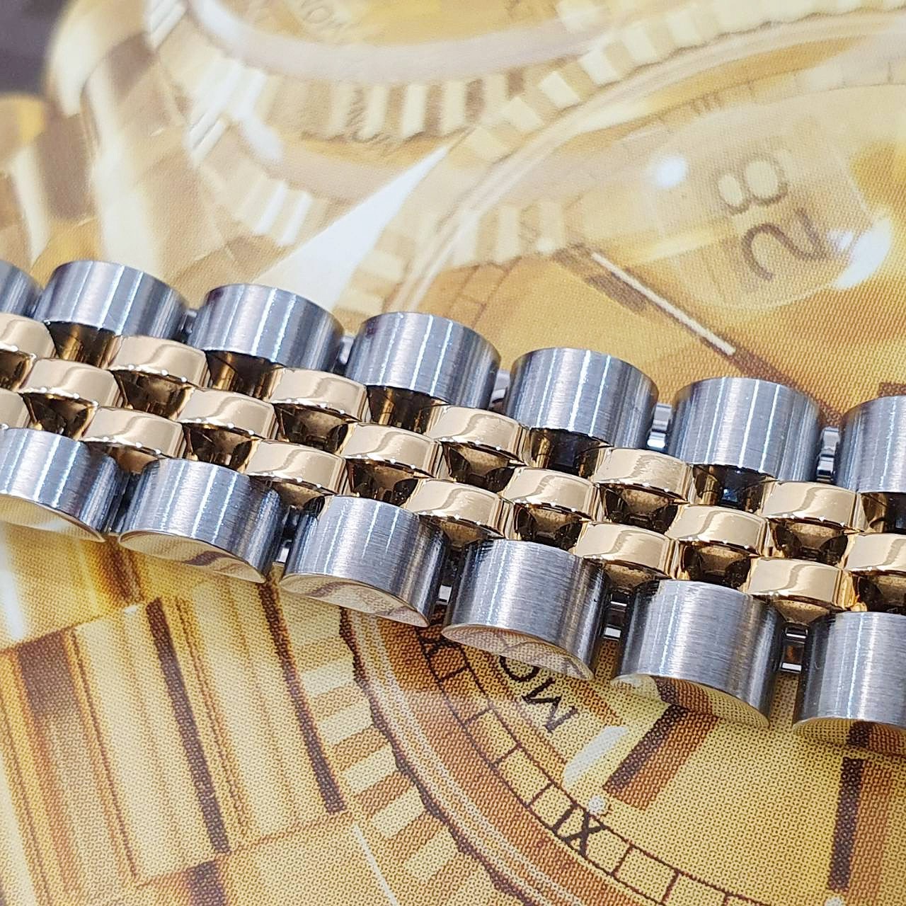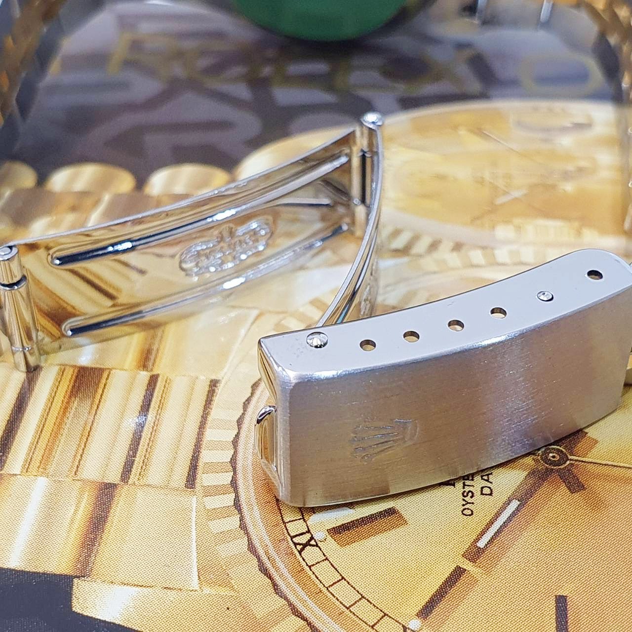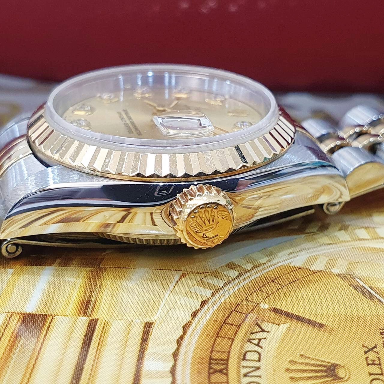 18K黃金搭配精鋼材質錶殼、錶帶及折疊帶扣 / 金十鑽面盤 / 原帶未整理 / 旋入式錶冠 / 抗磨損藍寶石水晶玻璃 / 原廠底蓋貼紙 |