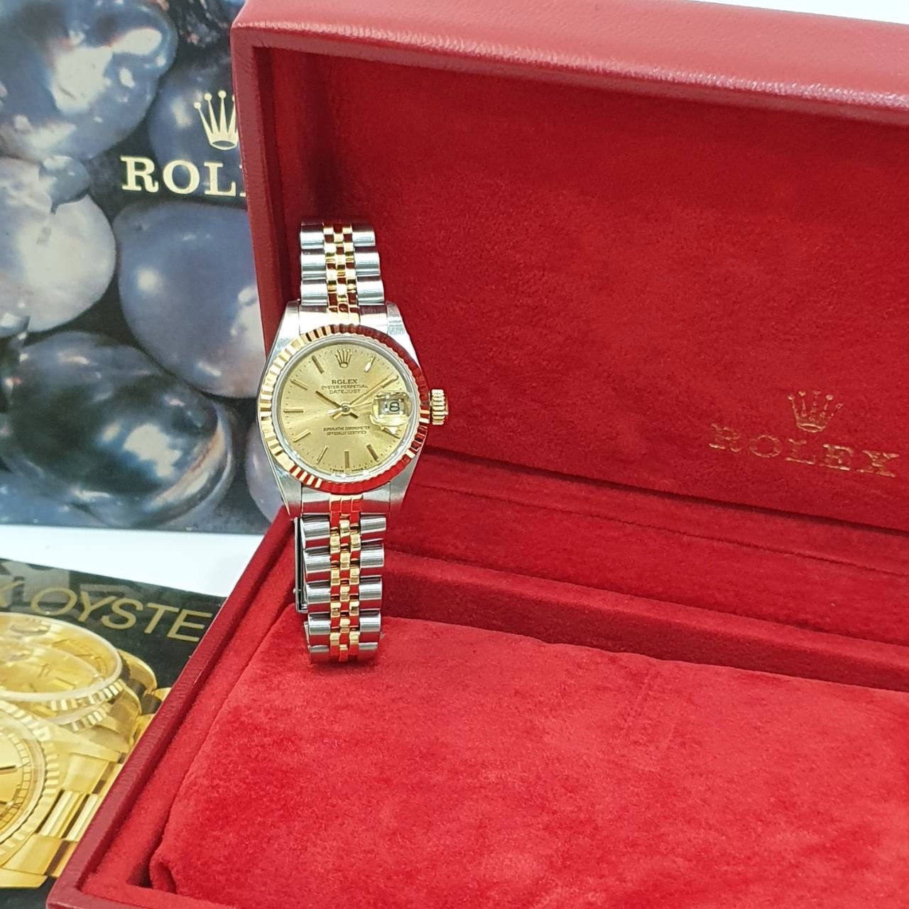 ROLEX 勞力士 69173 Datejust 蠔式女錶 金面T柱 錶徑26mm 自動上鍊 18K金及不銹鋼 防水100米 C字頭 缺證書 原廠盒裝 店保卡 保養完成