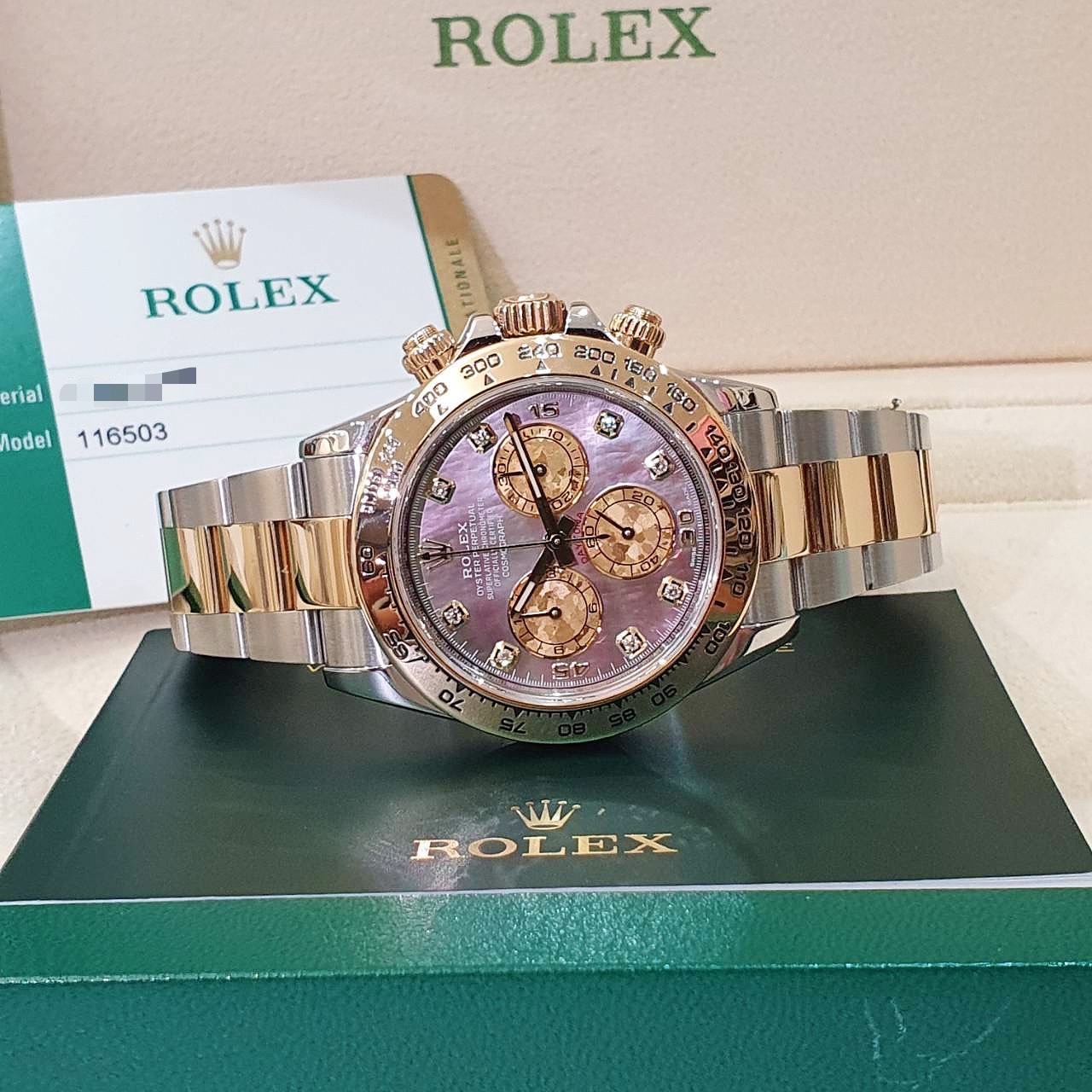 ROLEX 勞力士 116503 Daytona 半金款迪通拿 2019/11 黑貝殼八鑽面盤 錶徑40mm 自動上鍊 18K金及不鏽鋼 防水100米 原廠盒單齊全 保養完成