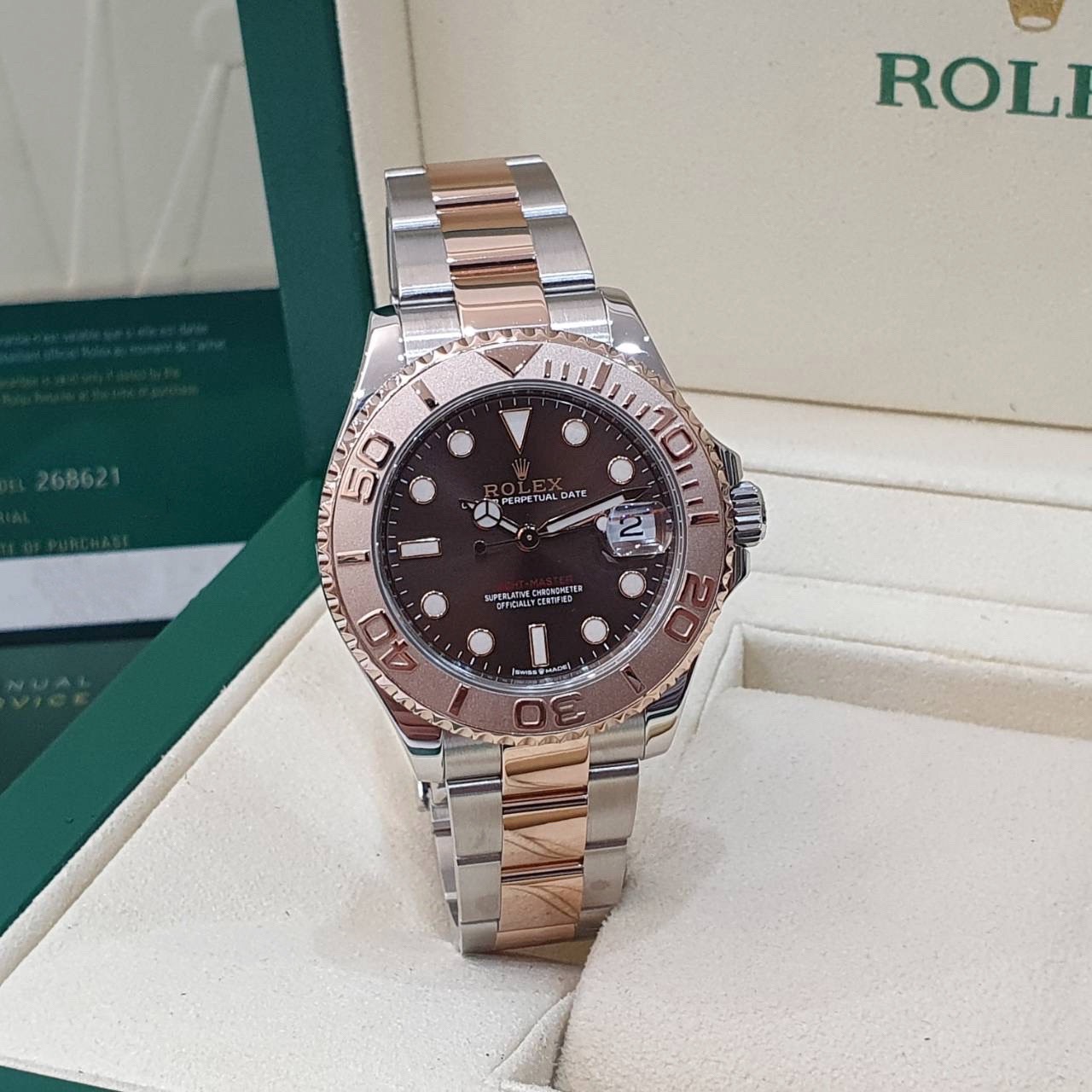 ROLEX 勞力士 268621 Yacht-Master 遊艇名仕 2020/06卡 中型遊艇 巧克力面盤 錶徑37mm 自動上鍊 18K玫瑰金及不鏽鋼 防水100米 原廠盒單齊全 保養完成