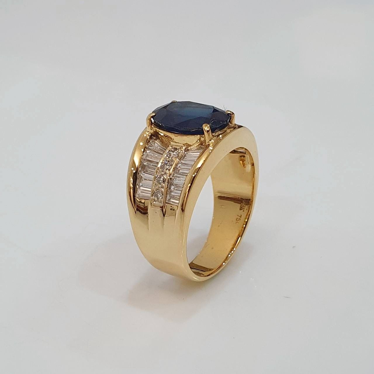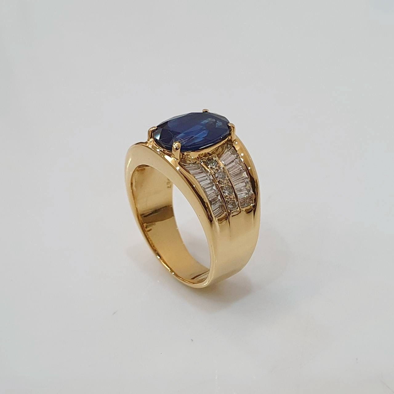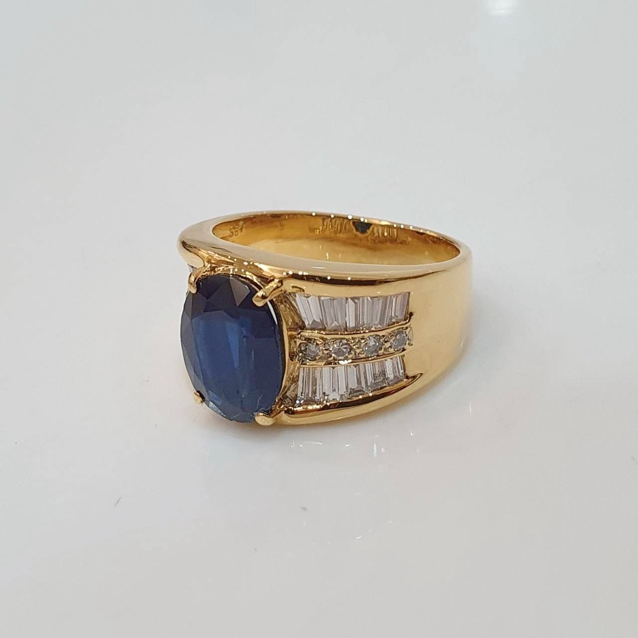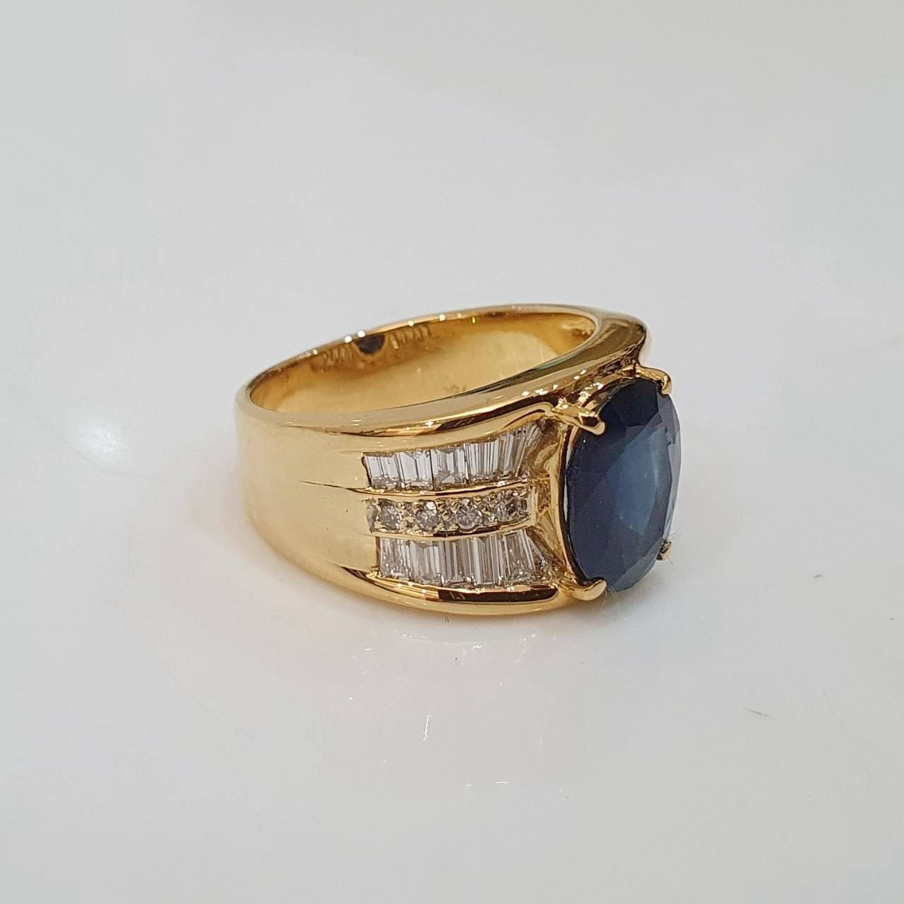 天然藍寶石戒指 藍寶石3.87克拉 18K金鑽石台 配鑽約0.56ct 國際圍15號 面寬1.3cm 總重2.96錢 附證書 精美盒裝 店保卡