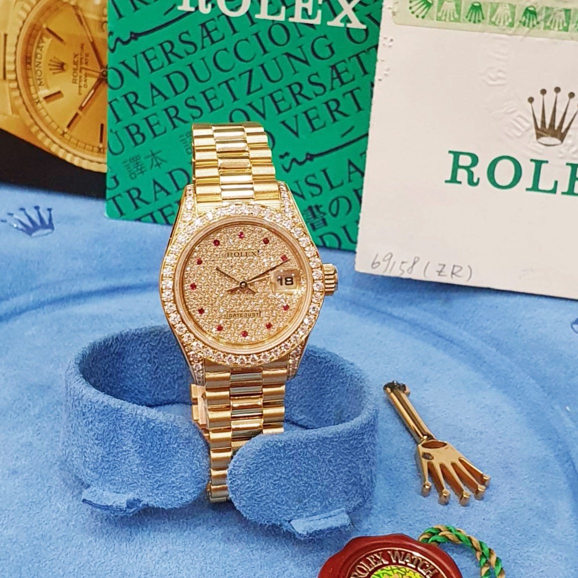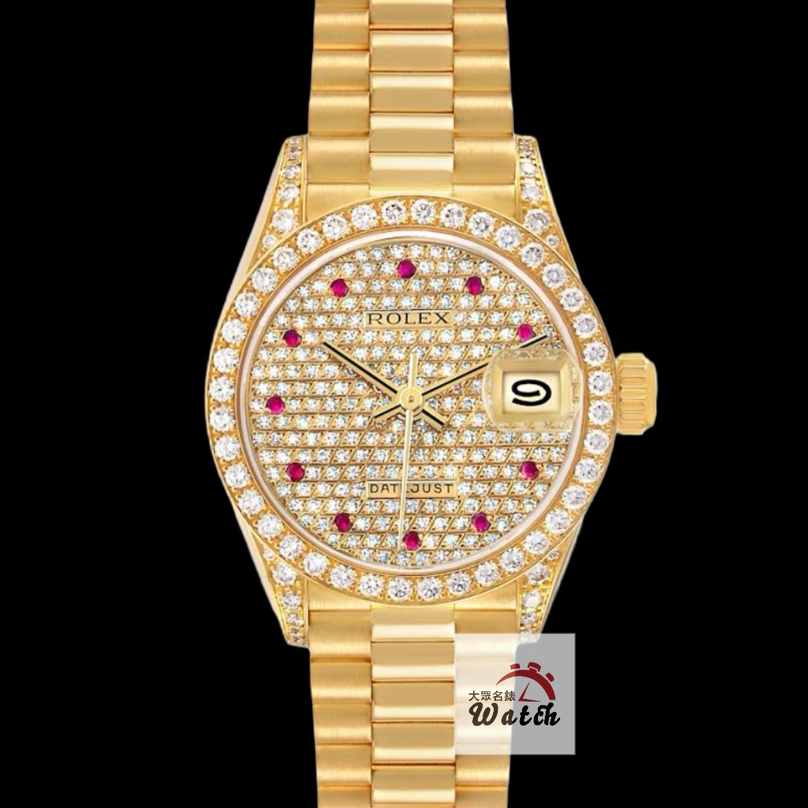 ROLEX 勞力士 69158 Datejust 18K女錶 原廠滿天星鑽面盤 原廠鑽圈/鑽腳 原帶未整理 台灣AD 錶徑26mm 自動上鍊 18K金材質 防水100米 W字頭 原廠盒單齊全 保養完成
