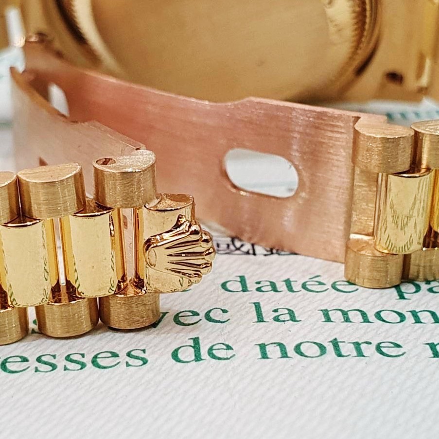 18K黃金材質錶殼、錶鍊帶及單邊折疊帶扣 / 原廠滿天星面盤 / 原廠鑽石錶圈、鑽腳 / 旋入式錶冠 / 藍寶石水晶玻璃鏡面 |