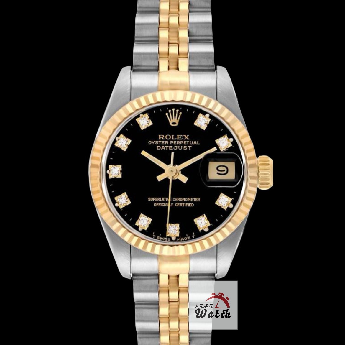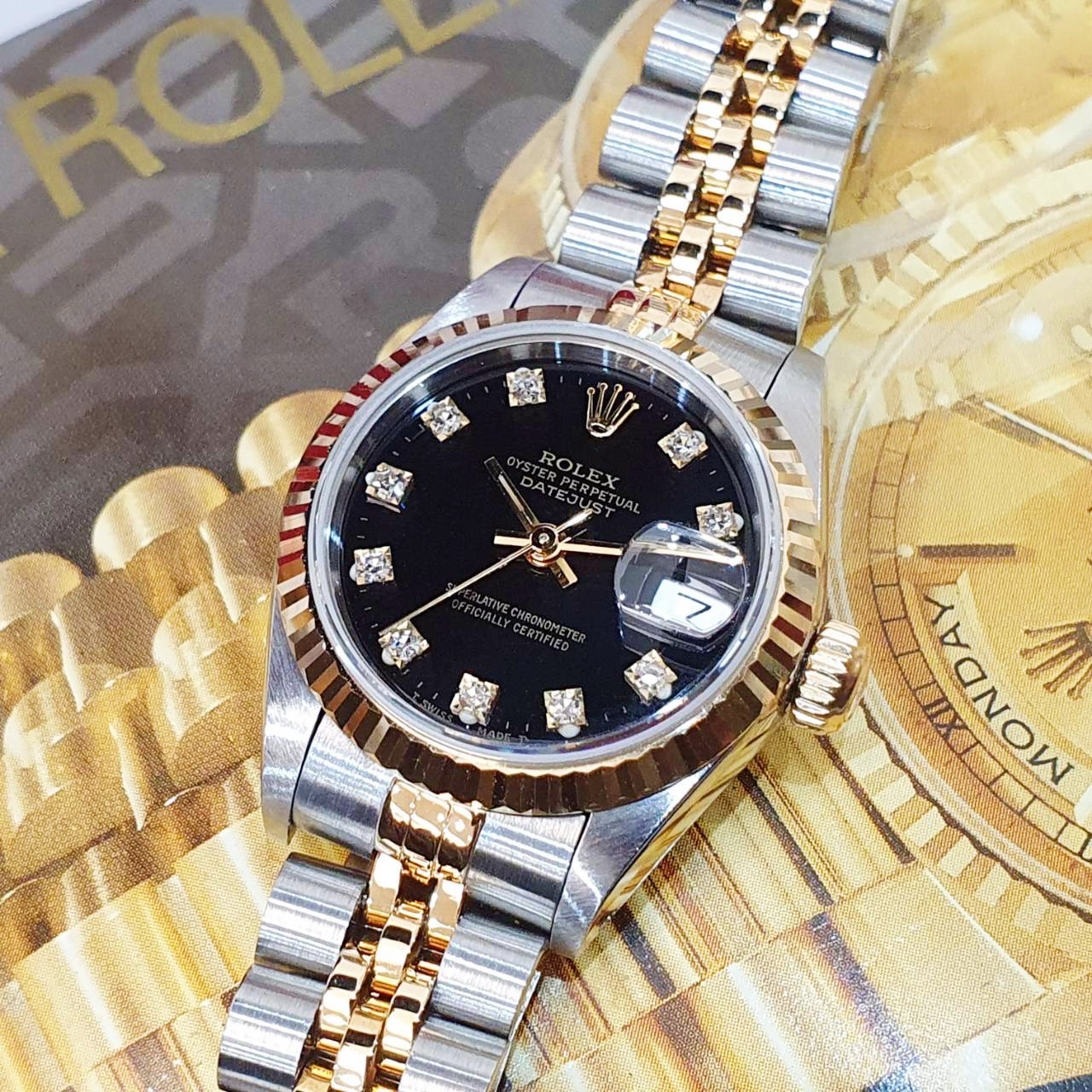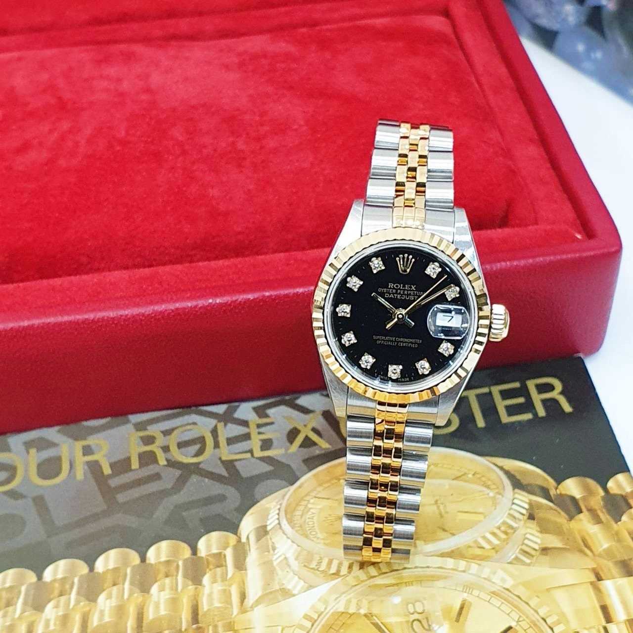 ROLEX 勞力士 69173 Datejust 蠔式女錶 18K半金 黑十鑽面盤 錶徑26mm 自動上鍊 18K金及不銹鋼 防水100米 R字頭 缺證書 原廠盒裝 店保卡 保養完成