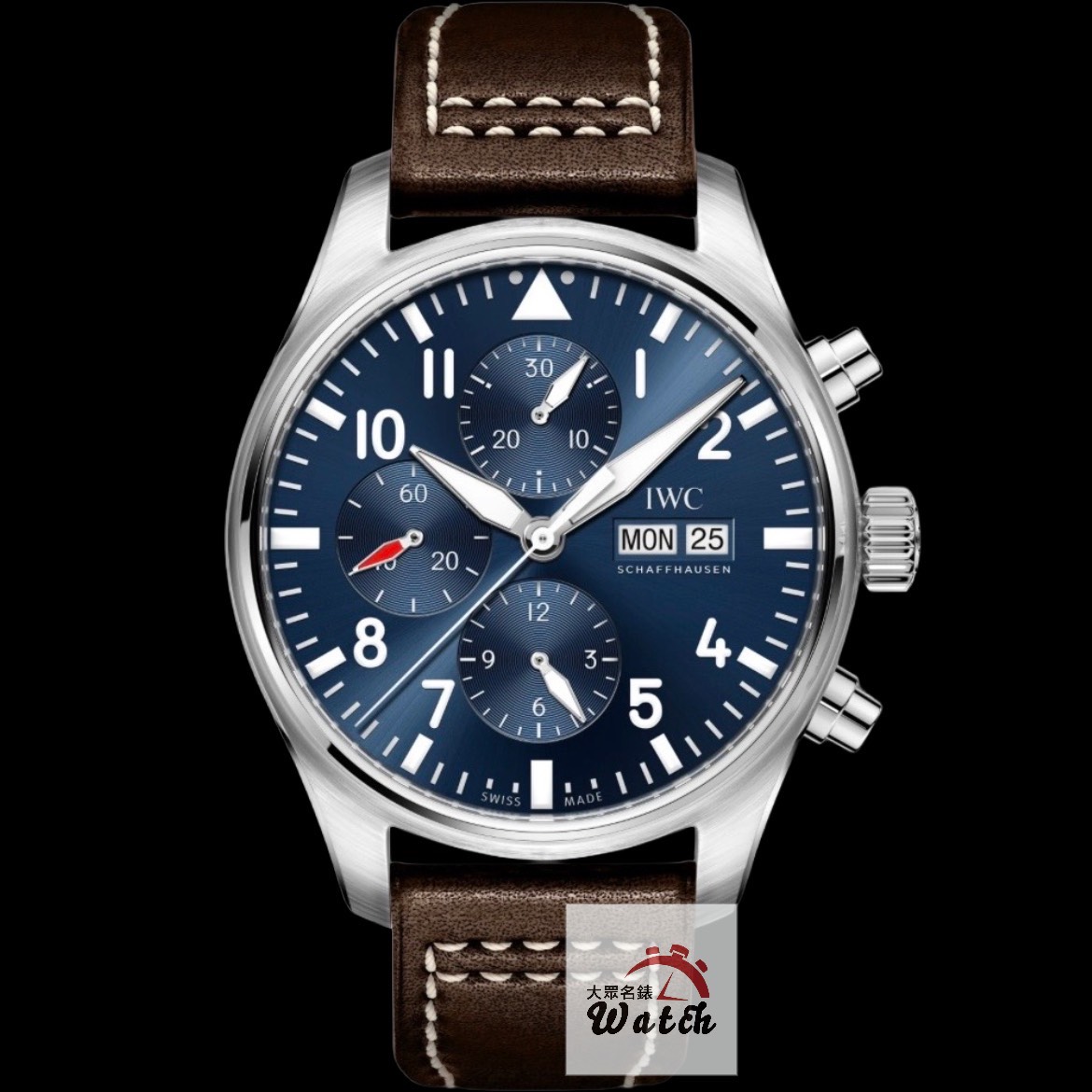 IWC Cal.79320機芯 / 時、分、小秒針時間指示 / 日期、星期顯示 / 60秒、30分鐘、12小時計時碼表 |