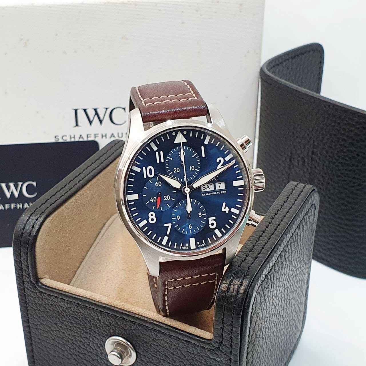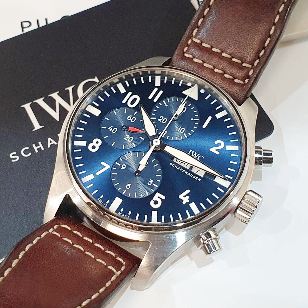 IWC萬國 飛行員系列 IW377714 藍面 小王子特別版 2019/11 原廠皮帶/錶扣 原廠保固至2027/11 日期/星期/計時 錶徑43mm 自動上鍊 不鏽鋼材質 防水60米 原廠盒單齊全