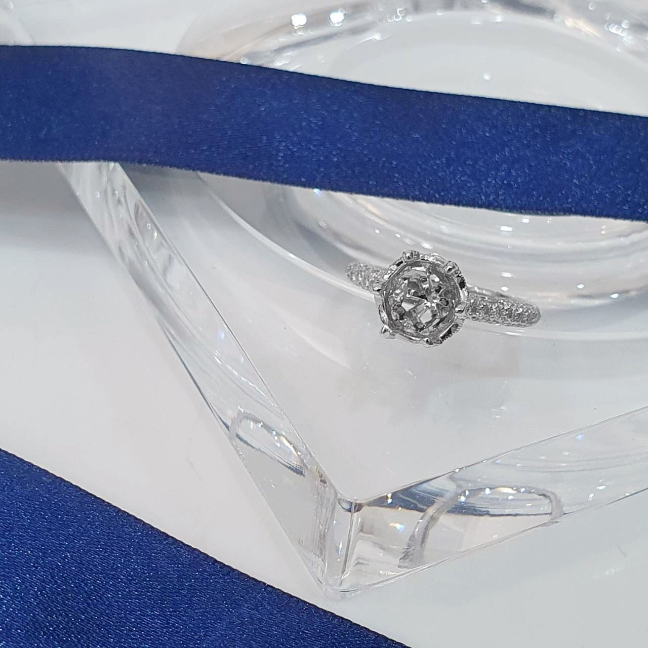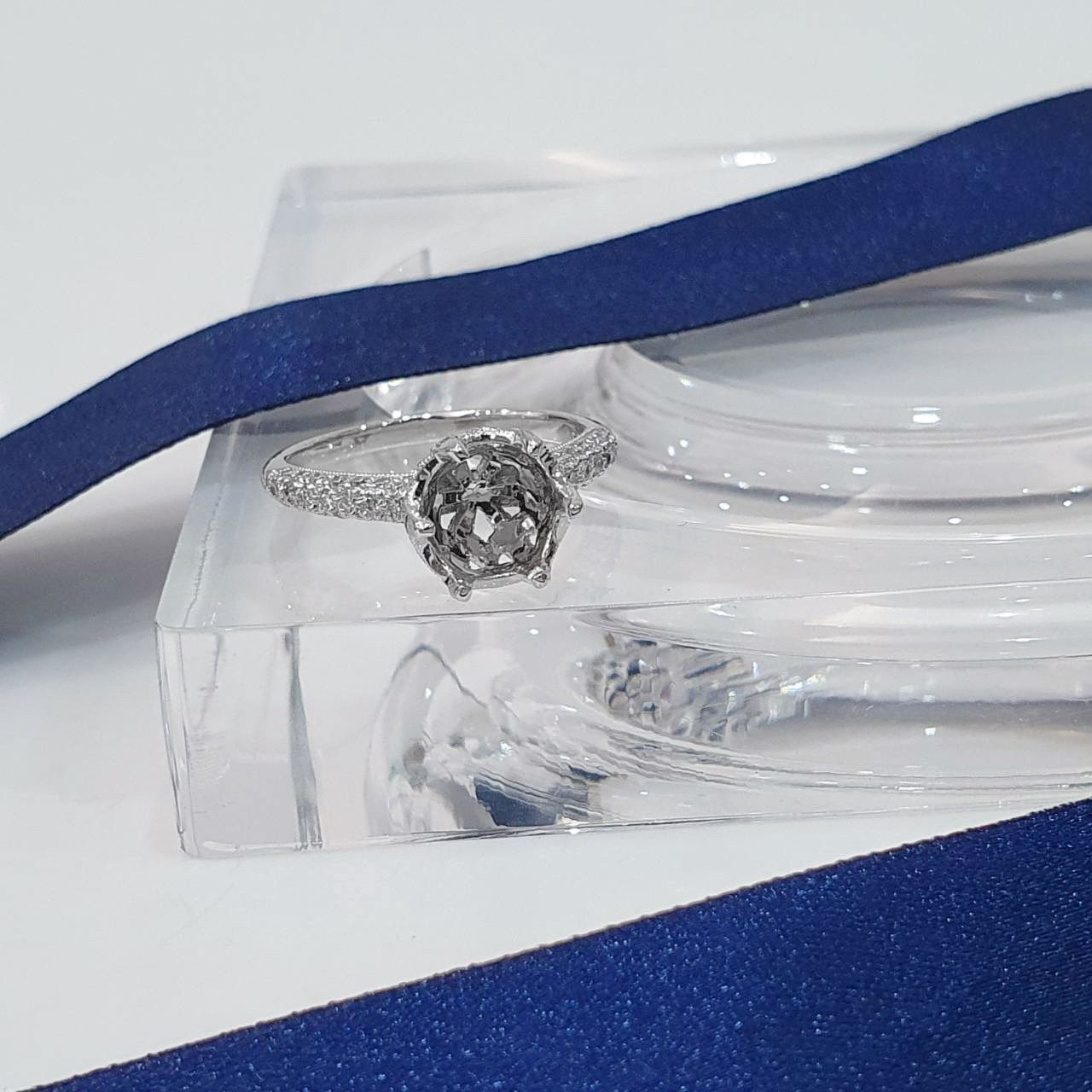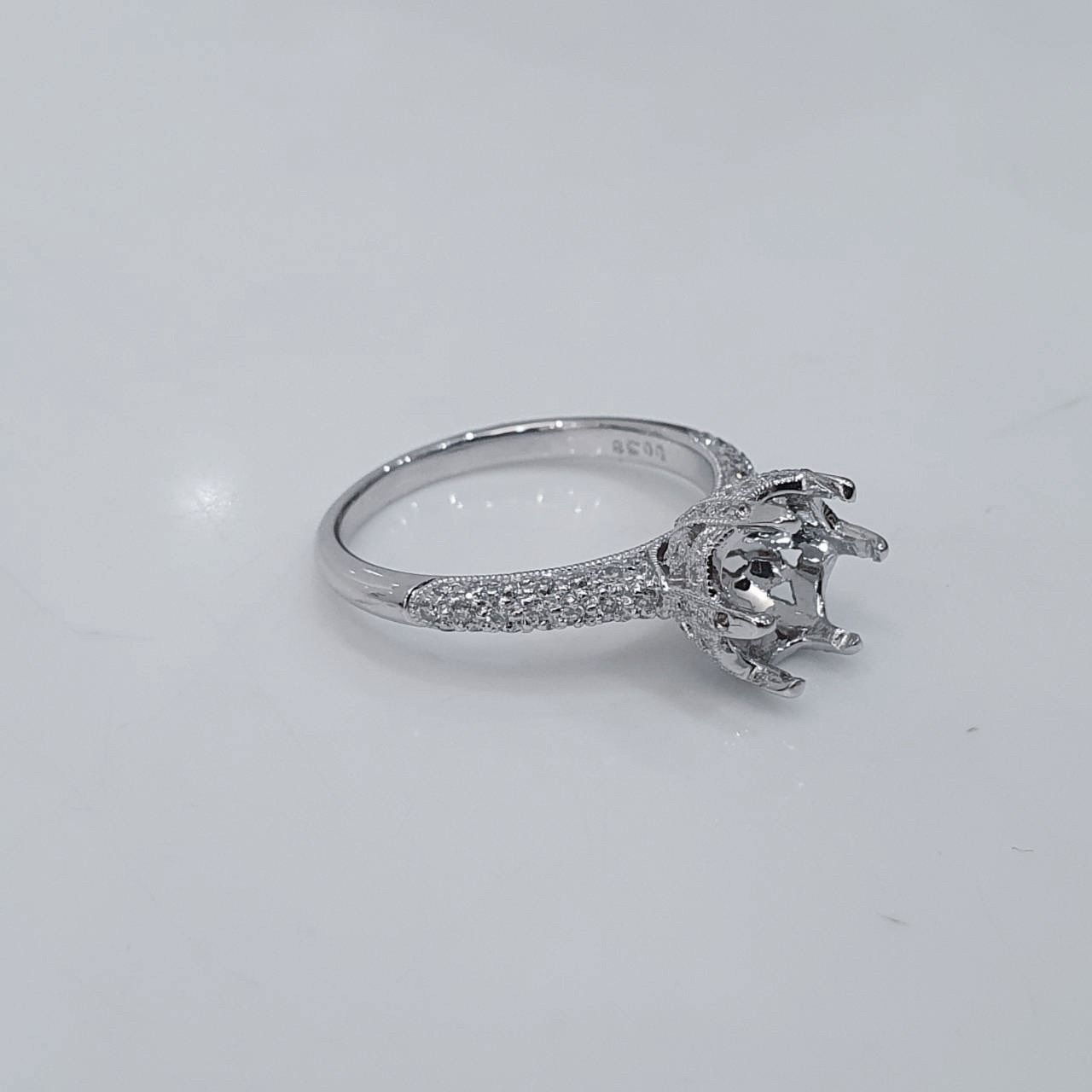 全新品 天然鑽石女戒空台 六爪排鑽造型 |
