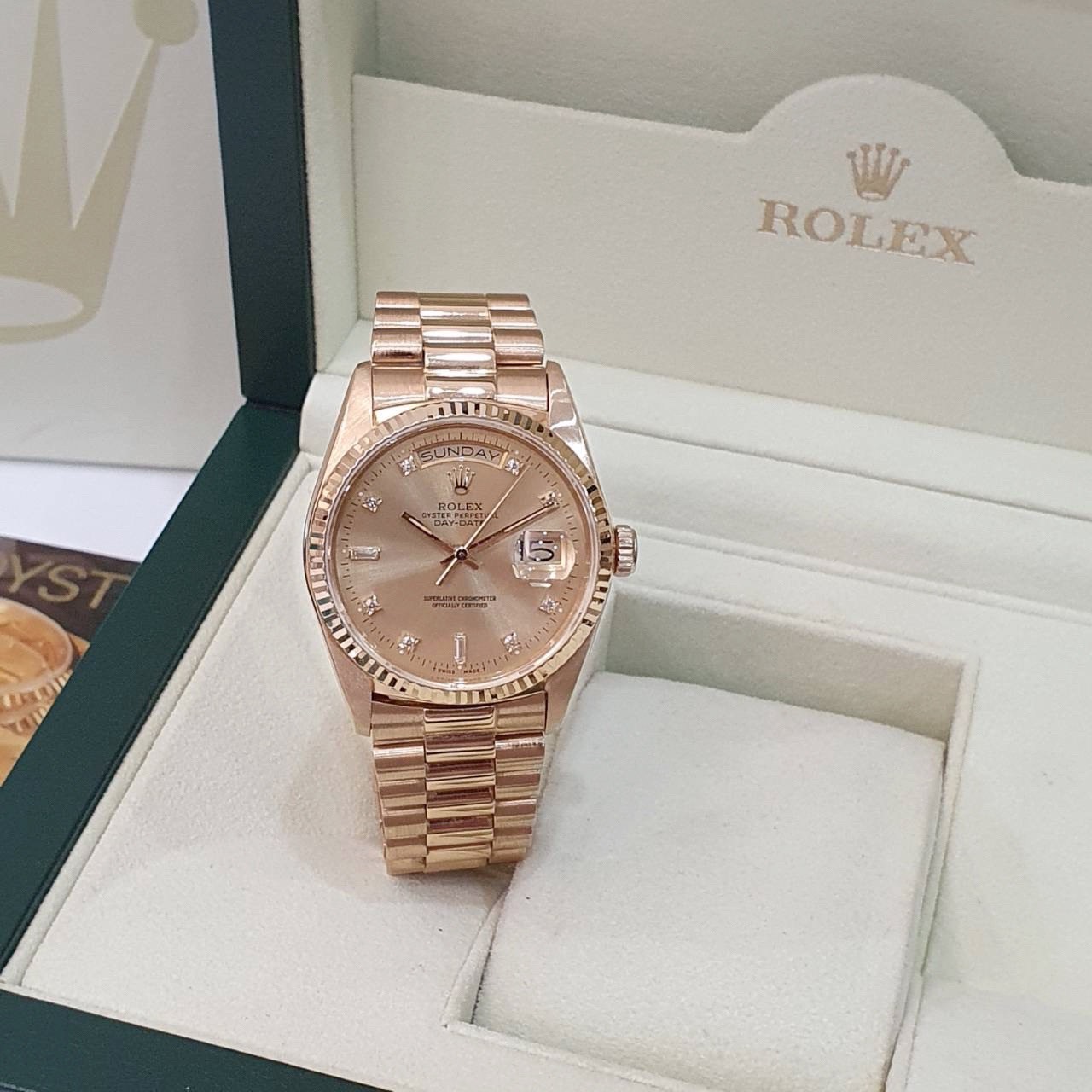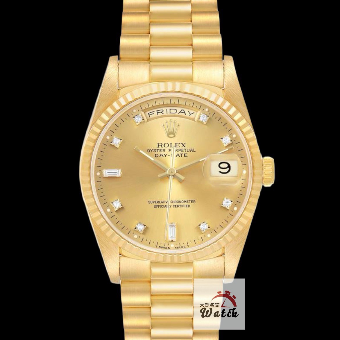 ROLEX 勞力士 18038 Day-Date 蠔式日誌 18K金 金十鑽面 錶徑36mm 自動上鍊 18K金材質 防水100米 900萬字頭 缺證書 原廠盒裝 店保卡 保養完成