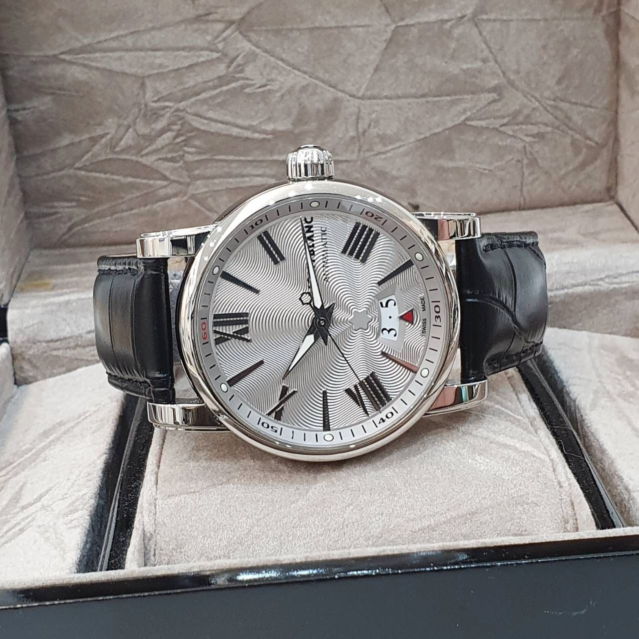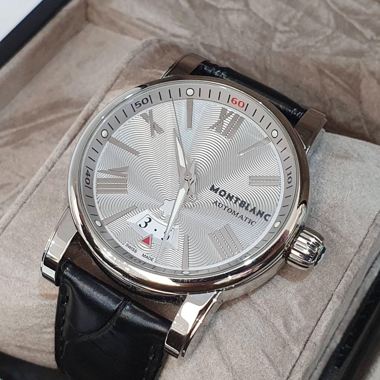 MONTBLANC萬寶龍 4810系列 102342 銀面 日期窗 原廠錶扣 代用皮帶 底蓋裸空 錶徑41.5mm 自動上鍊 不鏽鋼材質 防水30米 缺證書 精美盒裝 店保卡 保養完成