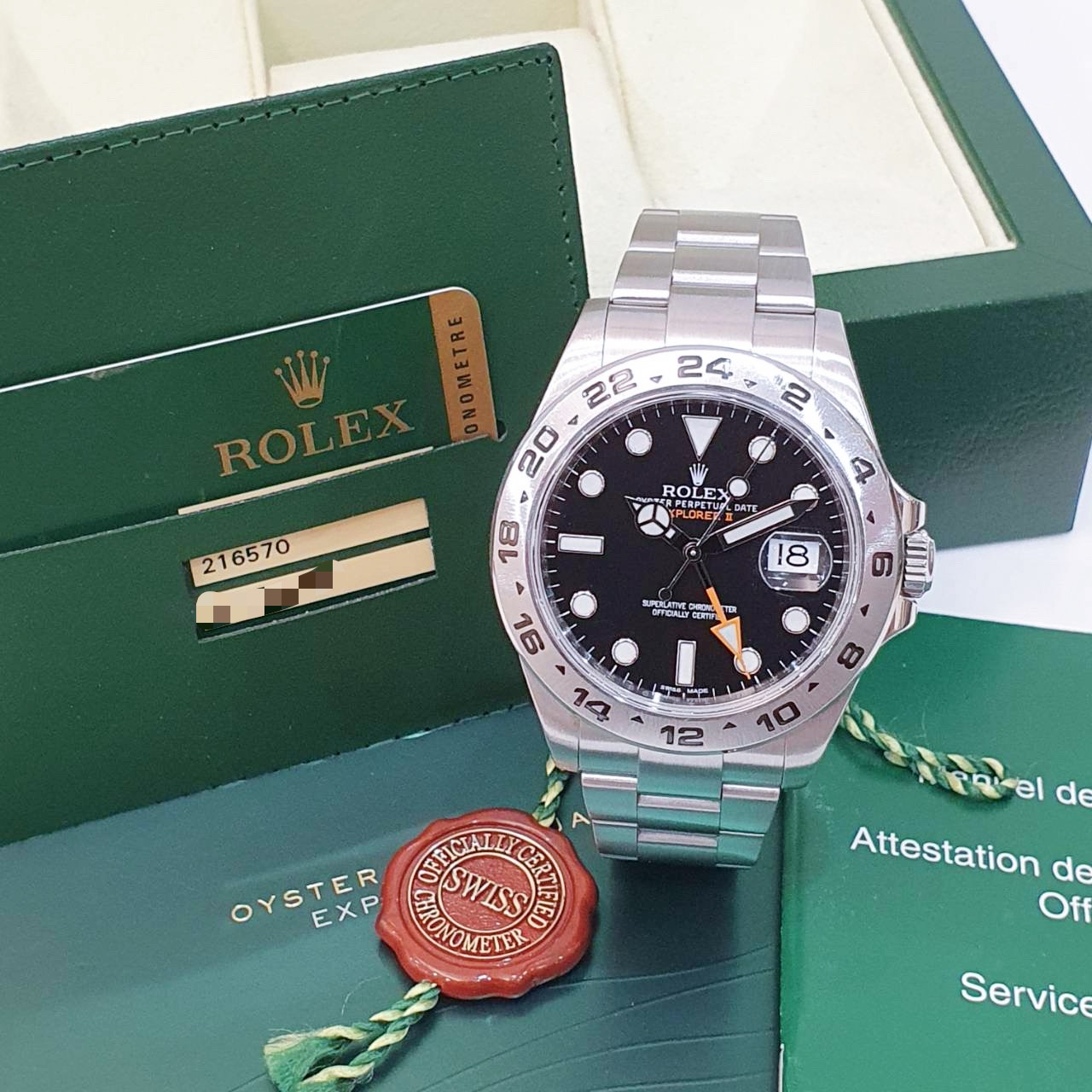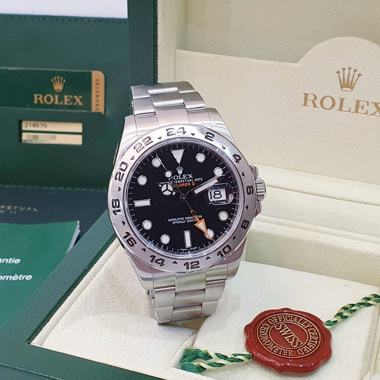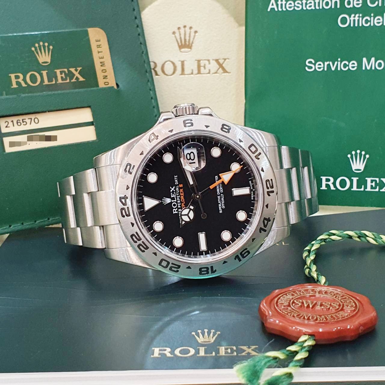 ROLEX勞力士 216570 Explorer ll 探二 2013/11 黑探二 黑面橘針 GMT兩地時區 錶徑42mm 自動上鍊 不鏽鋼材質 防水100米 原廠盒單齊全 保養完成
