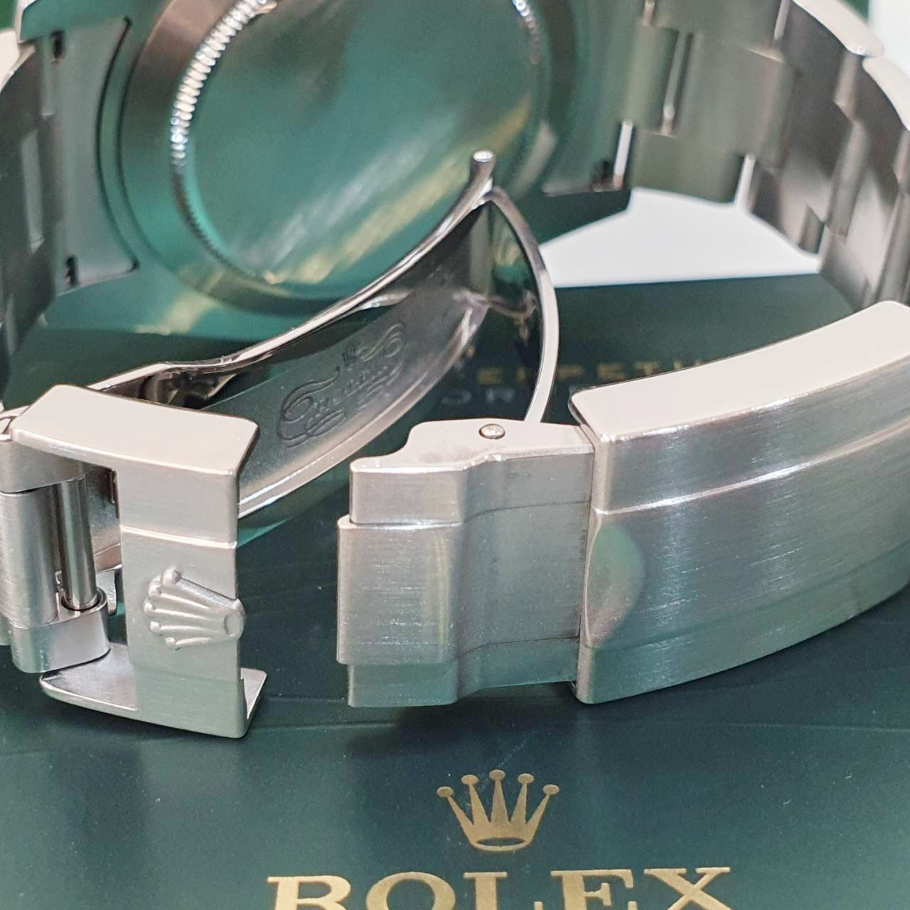 ROLEX原廠Cal.3187自動上鍊機芯 / 時、分、秒大三針指示 / 3點鐘位置放大日期窗顯示 / 可獨立校調12小時指針 / GMT兩地時間功能 / 防水100米 |