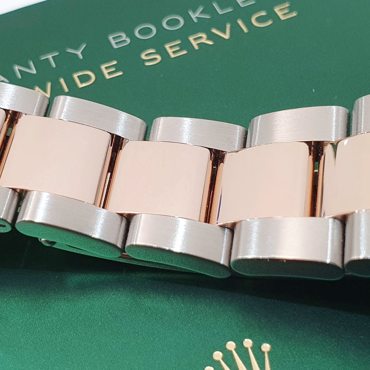 不鏽鋼材質錶殼 / 玫瑰金材質雙向旋轉錶圈、旋入式錶冠 / 玫瑰金半金錶鍊帶及蠔式折疊帶扣 / 巧克力色放射紋面盤 / 夜光時標及賓士指針 / 藍寶石水晶玻璃鏡面 |