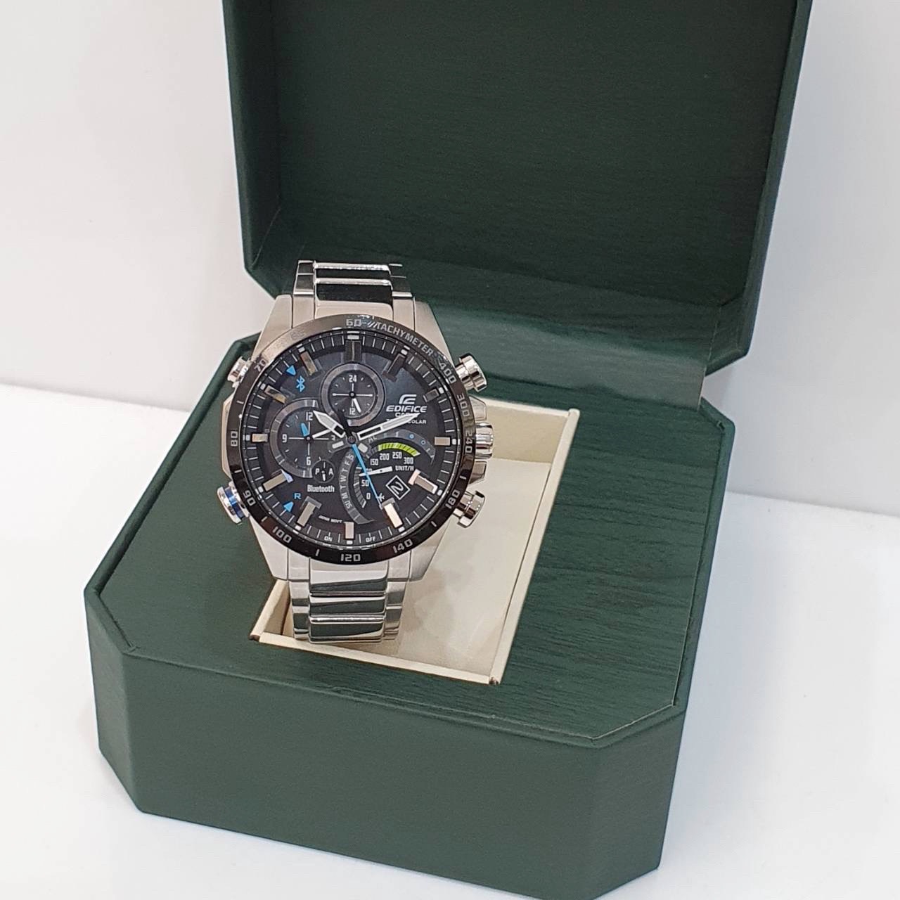 Casio卡西歐 EQB-501 智慧型藍芽連線 太陽能動力 兩地時區 錶徑52x48.1x14.2mm 不鏽鋼材質 防水100米 太陽能充電 缺證書 精美盒裝 店保卡