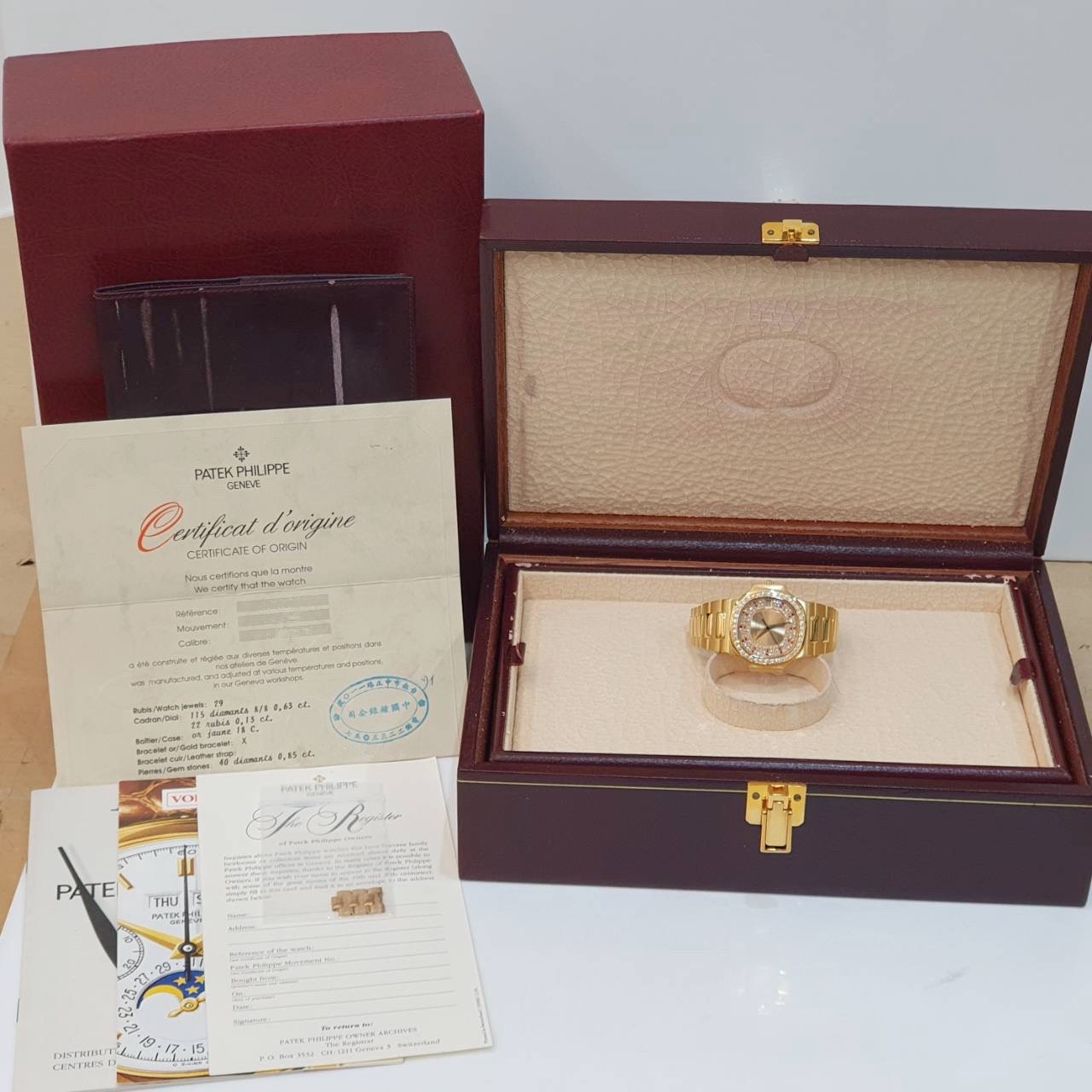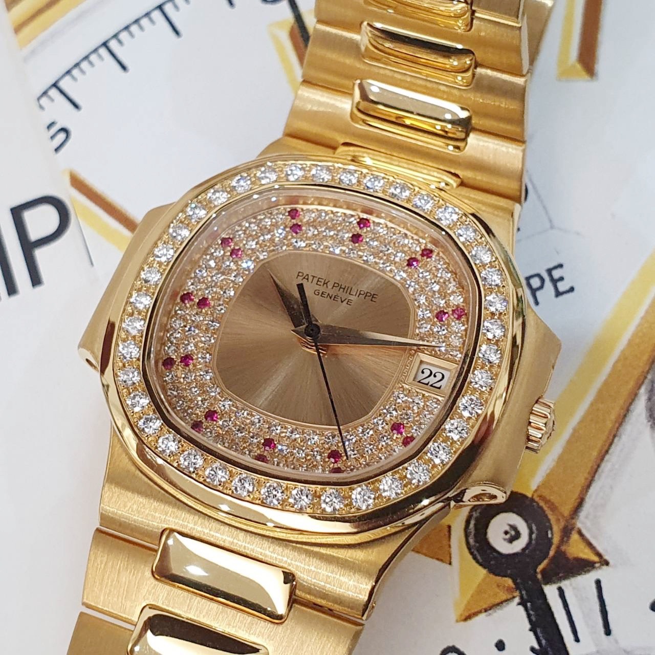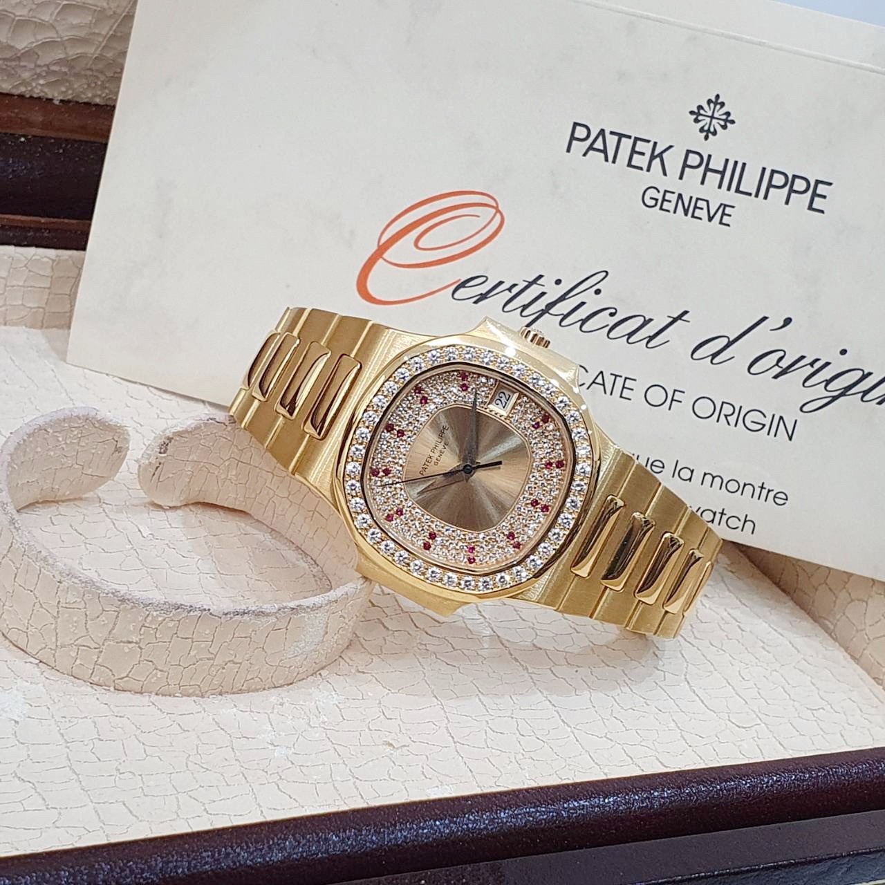 PATEK PHILIPPE百達翡麗 3800/103 鸚鵡螺 原廠錶況 大全套 3800系列中最稀有 原廠鑽圈 紅寶石多層鑽面盤 錶徑37.5mm 335SC自動機芯 18K金材質 防水100米 原廠大全套 保養完成