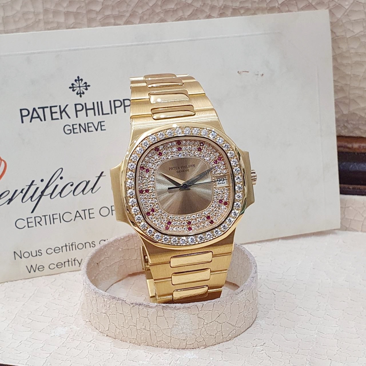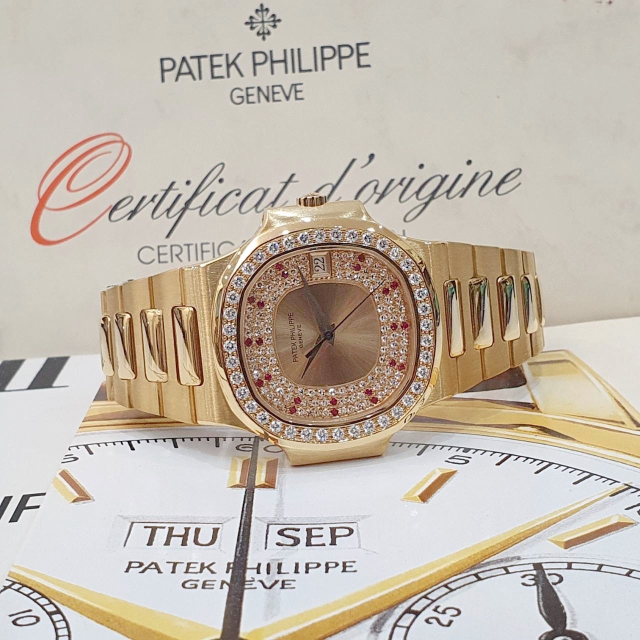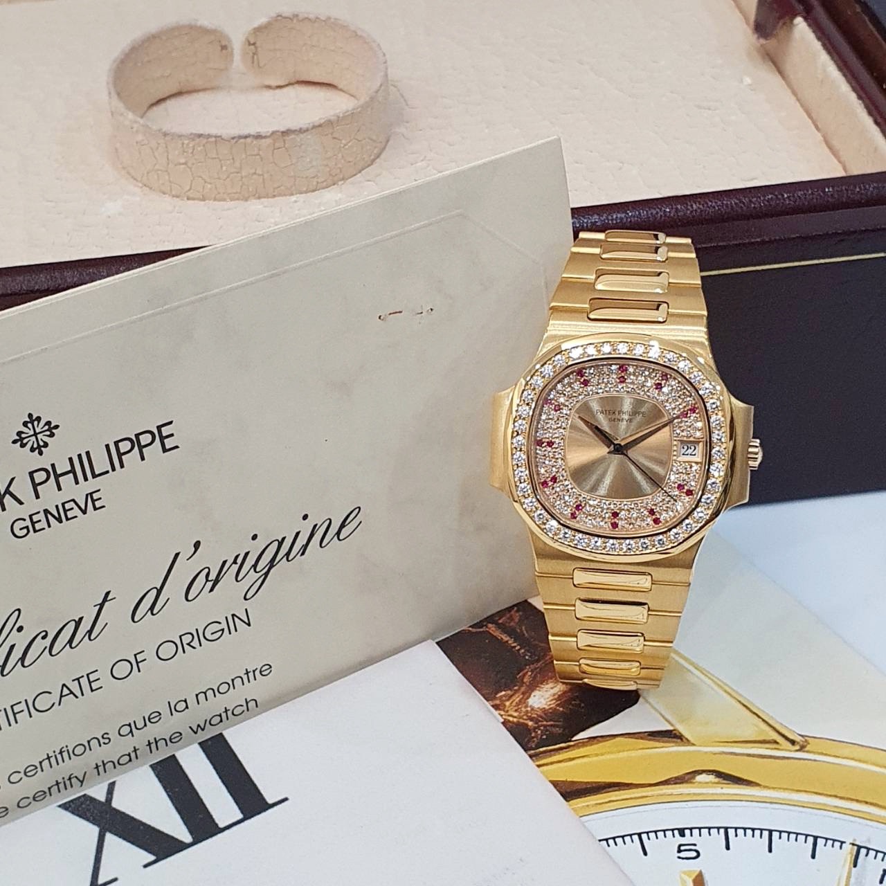 PATEK PHILIPPE百達翡麗 3800/103 鸚鵡螺 原廠錶況 大全套 3800系列中最稀有 原廠鑽圈 紅寶石多層鑽面盤 錶徑37.5mm 335SC自動機芯 18K金材質 防水100米 原廠大全套 保養完成