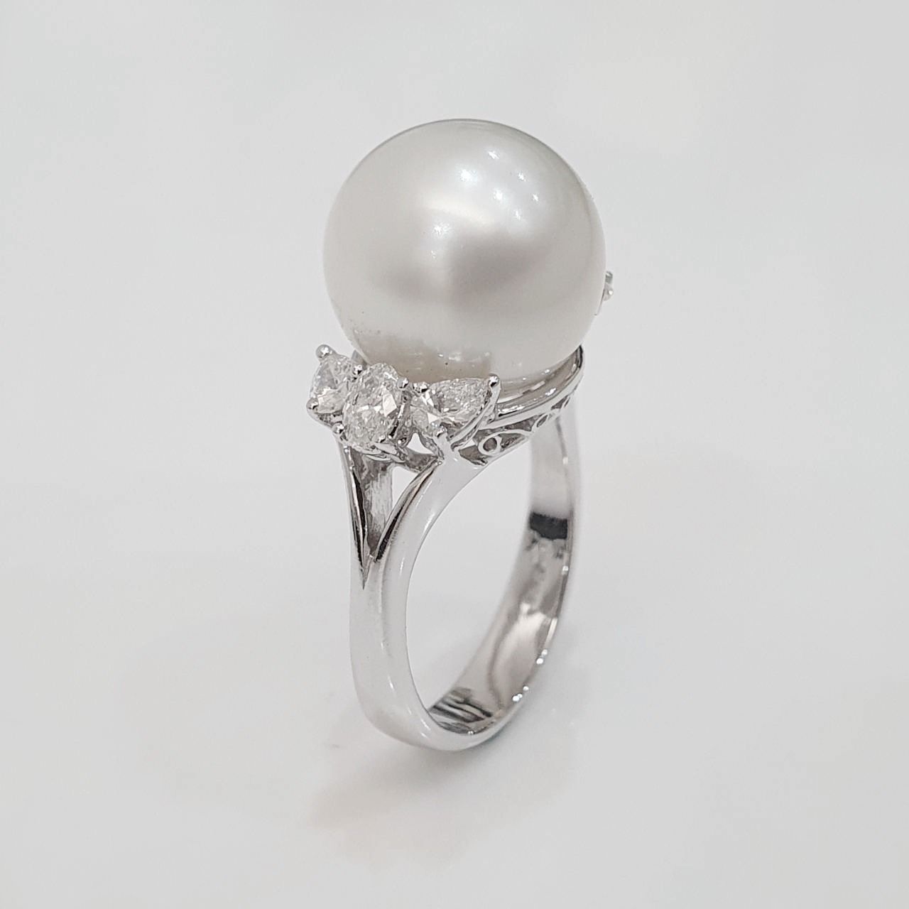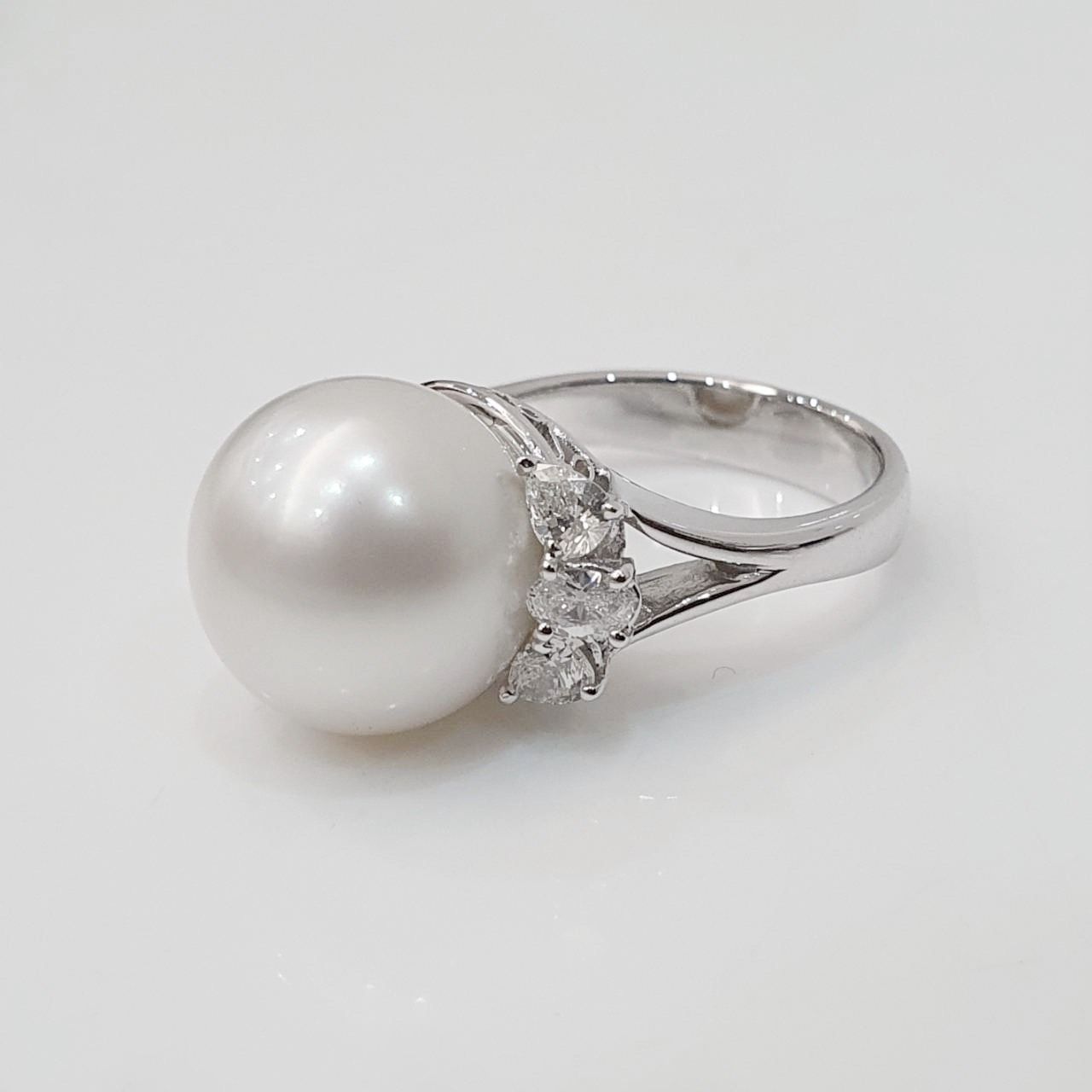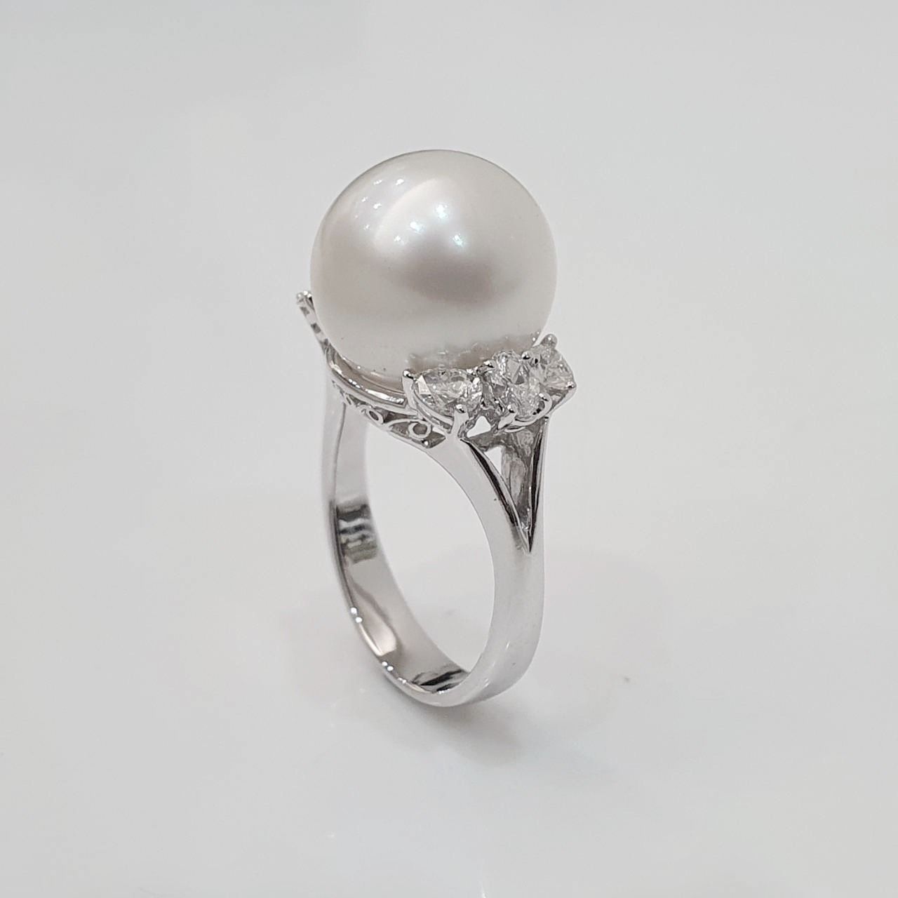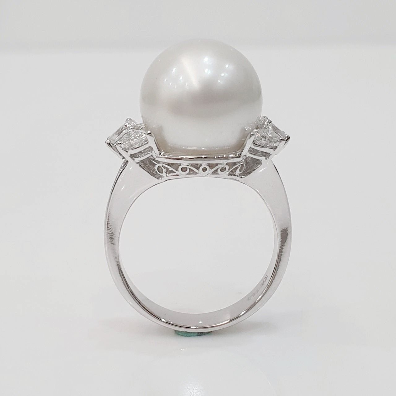 天然南洋珍珠戒指 光澤亮眼 珍珠13mm 配鑽約0.60ct 國際圍13號 750K金材質 重2.43錢 面寬1.3cm 精美盒裝 店保卡