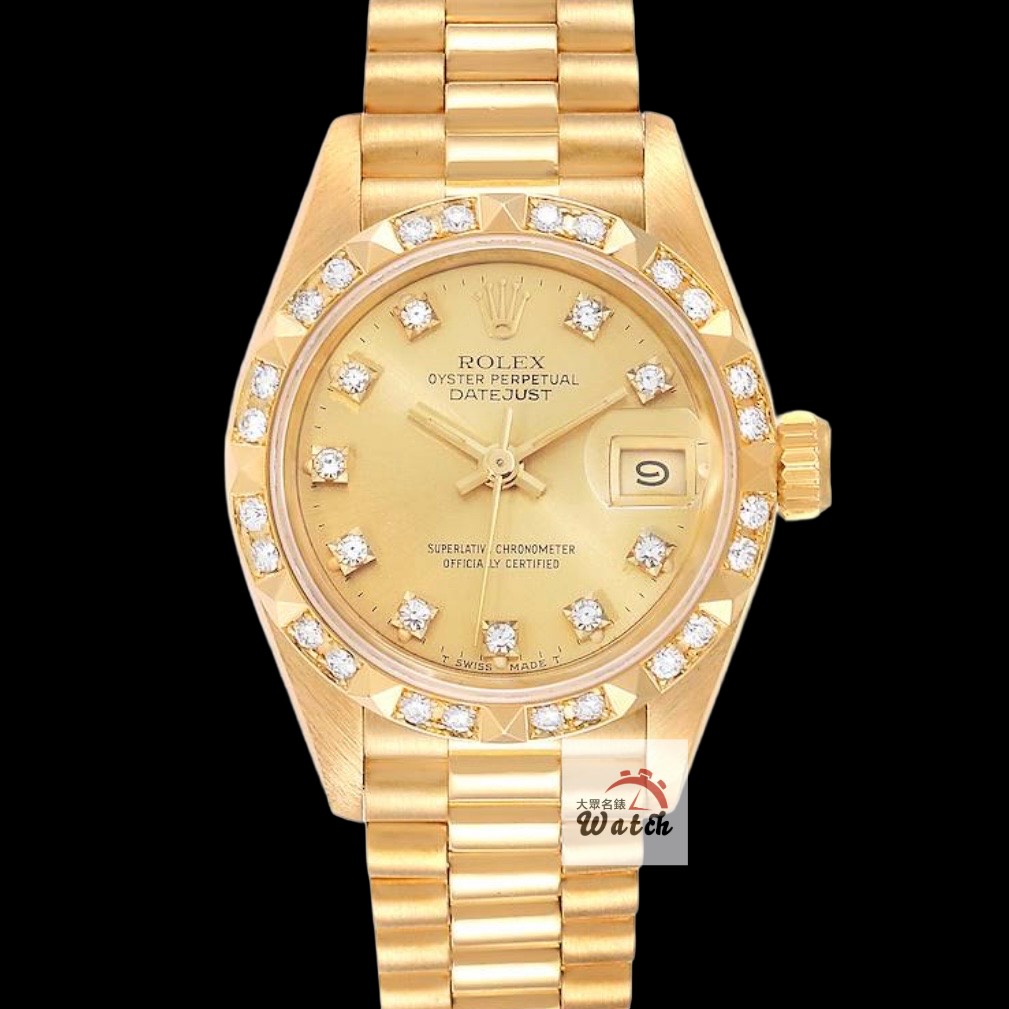 ROLEX 勞力士 69178 Datejust 18K金女錶 金十鑽 舊包台 後加金字塔鑽圈 原廠底蓋貼紙 錶徑26mm 自動上鍊 防水100米 X字頭 缺證書 原廠盒裝 店保卡 保養完成
