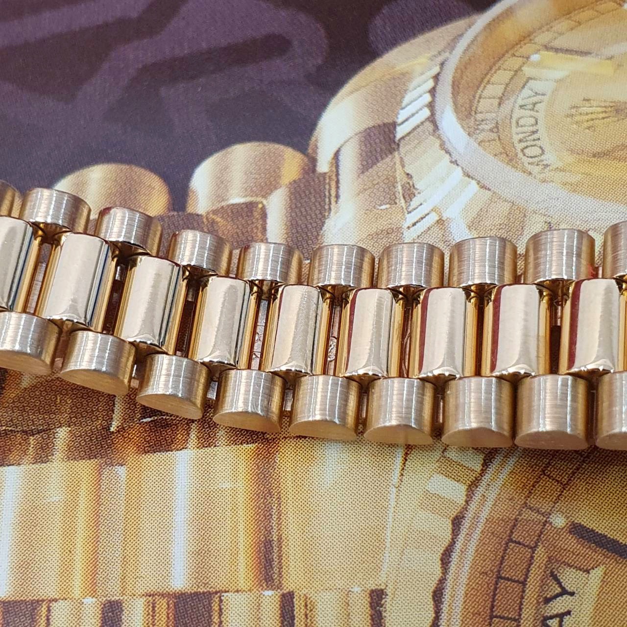18K黃金材質錶殼、錶鍊帶及單邊折疊帶扣 / 金十鑽 / 旋入式錶冠 / 藍寶石水晶玻璃鏡面 |
