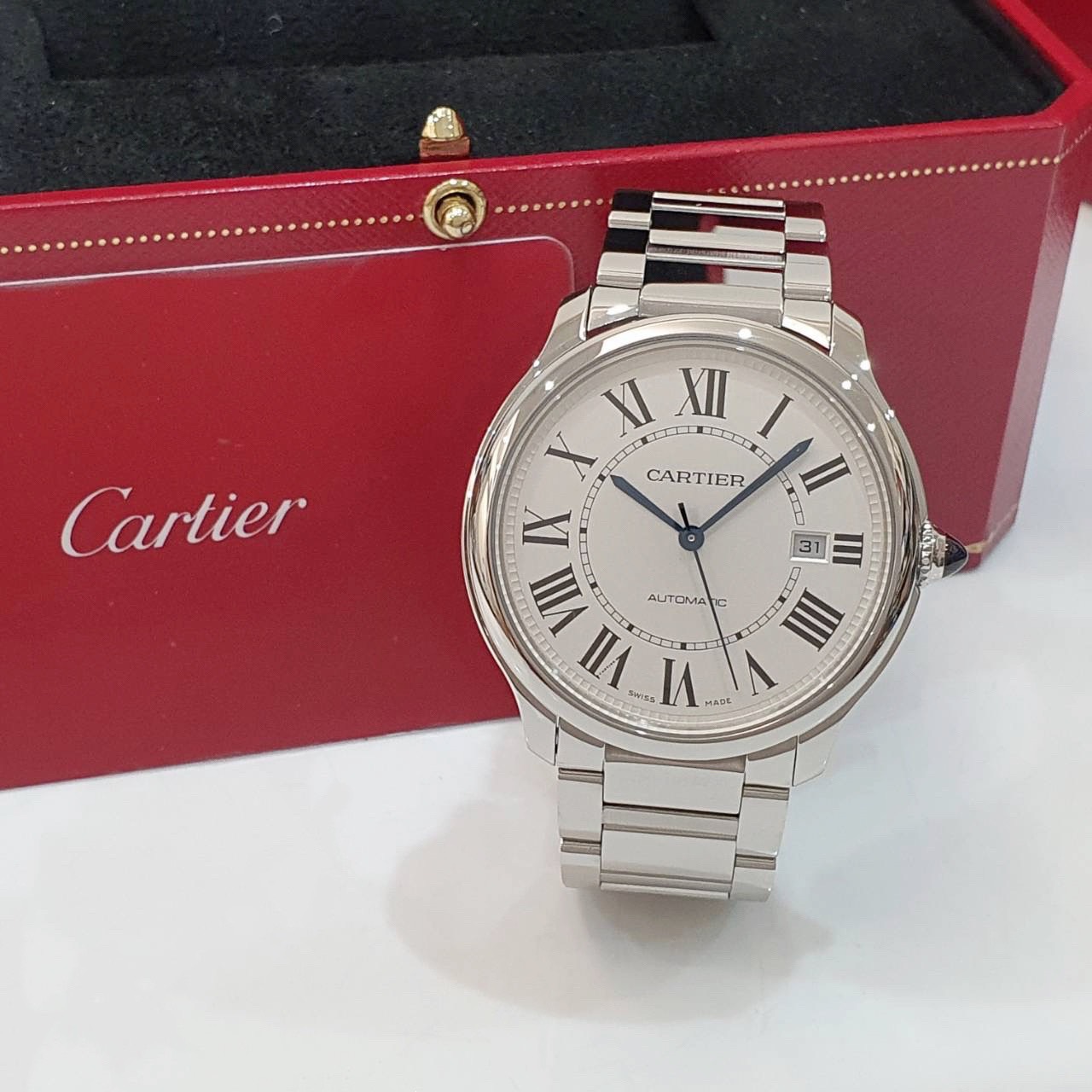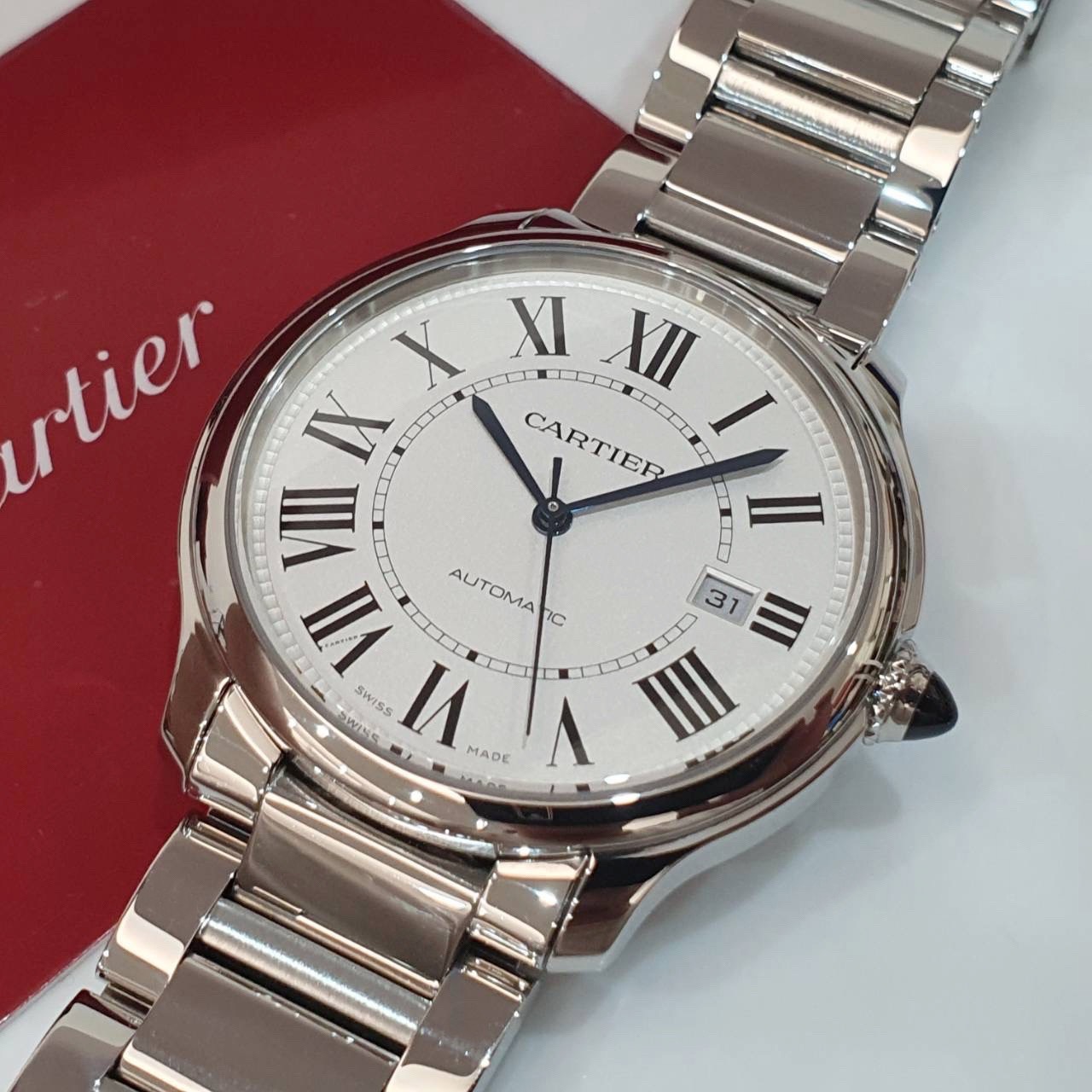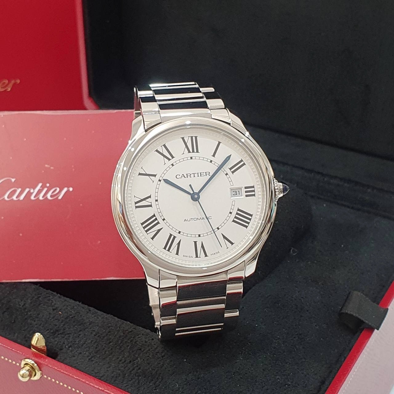 Cartier卡地亞 WSRN0035 Ronde Must de Cartier系列 銀白面 羅馬時標 原廠延長保固至2030/11 錶徑40mm 自動上鍊 不鏽鋼材質 防水30米 原廠盒單齊全