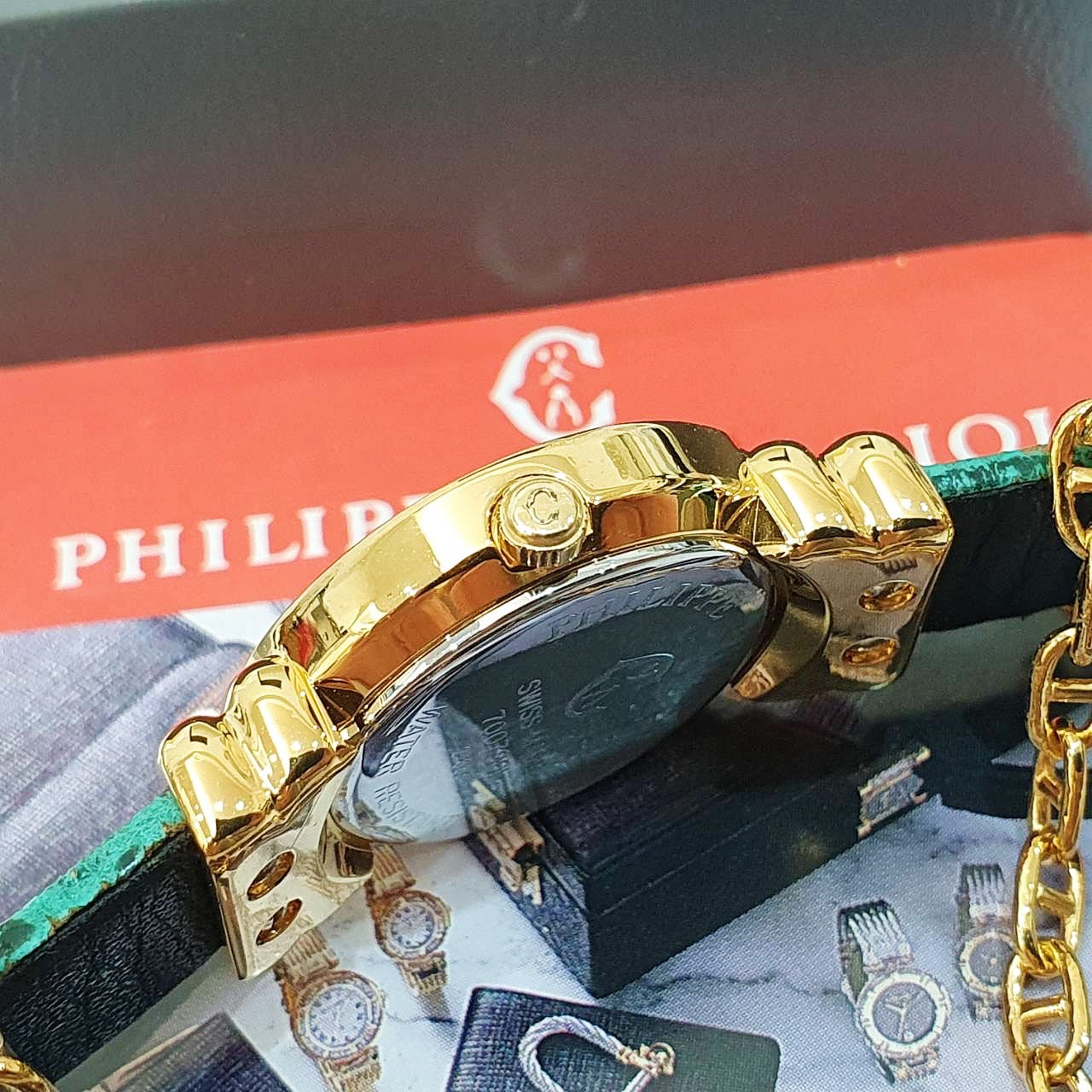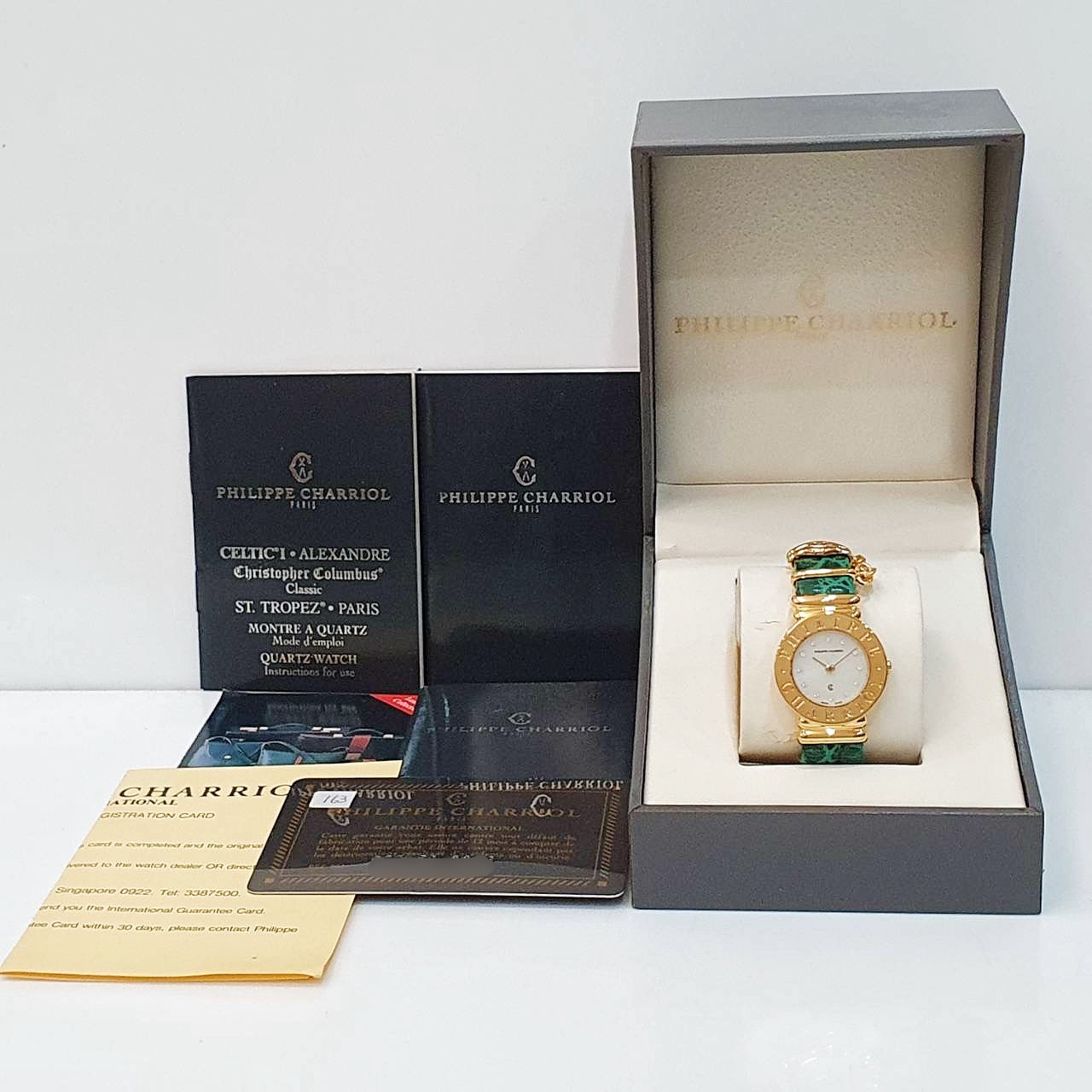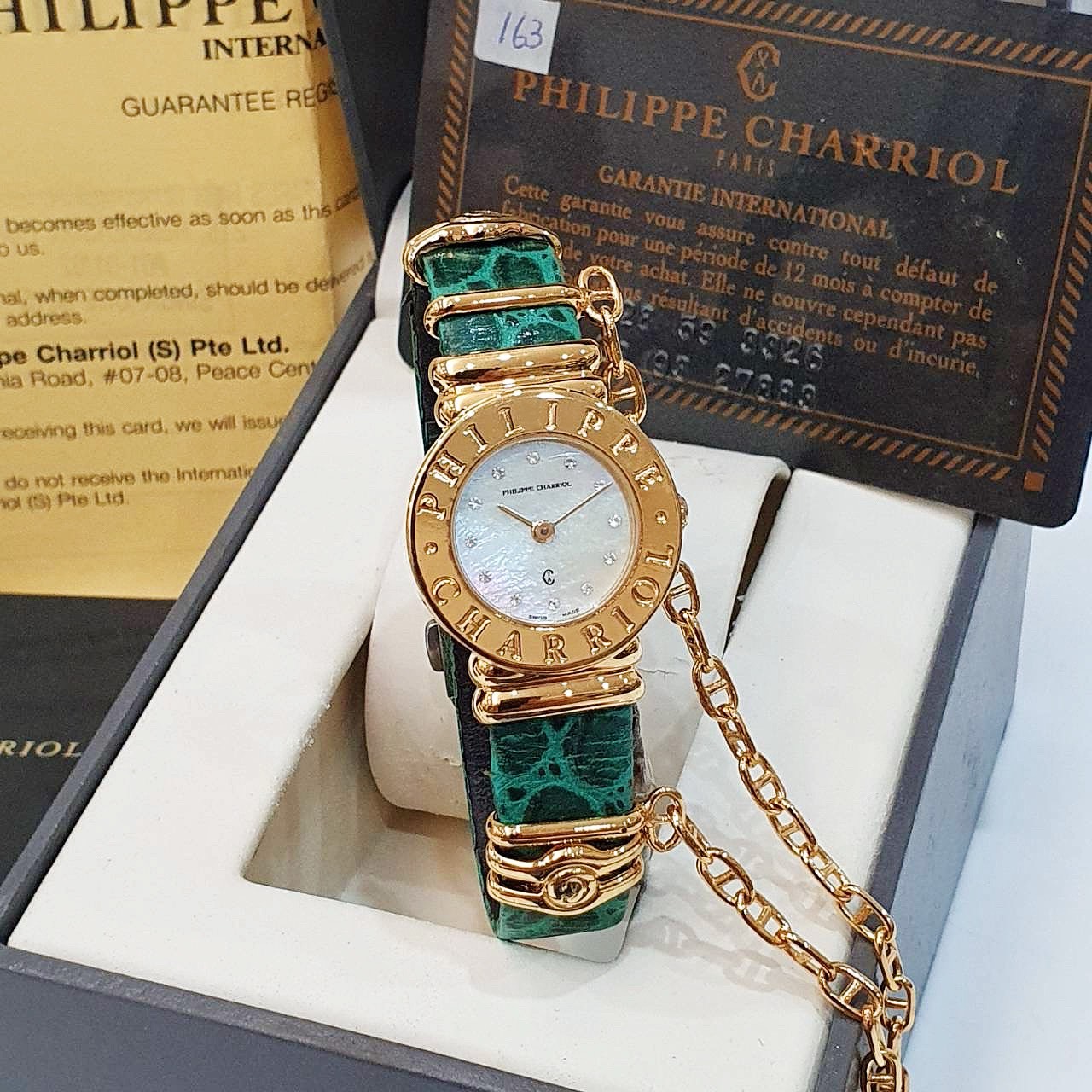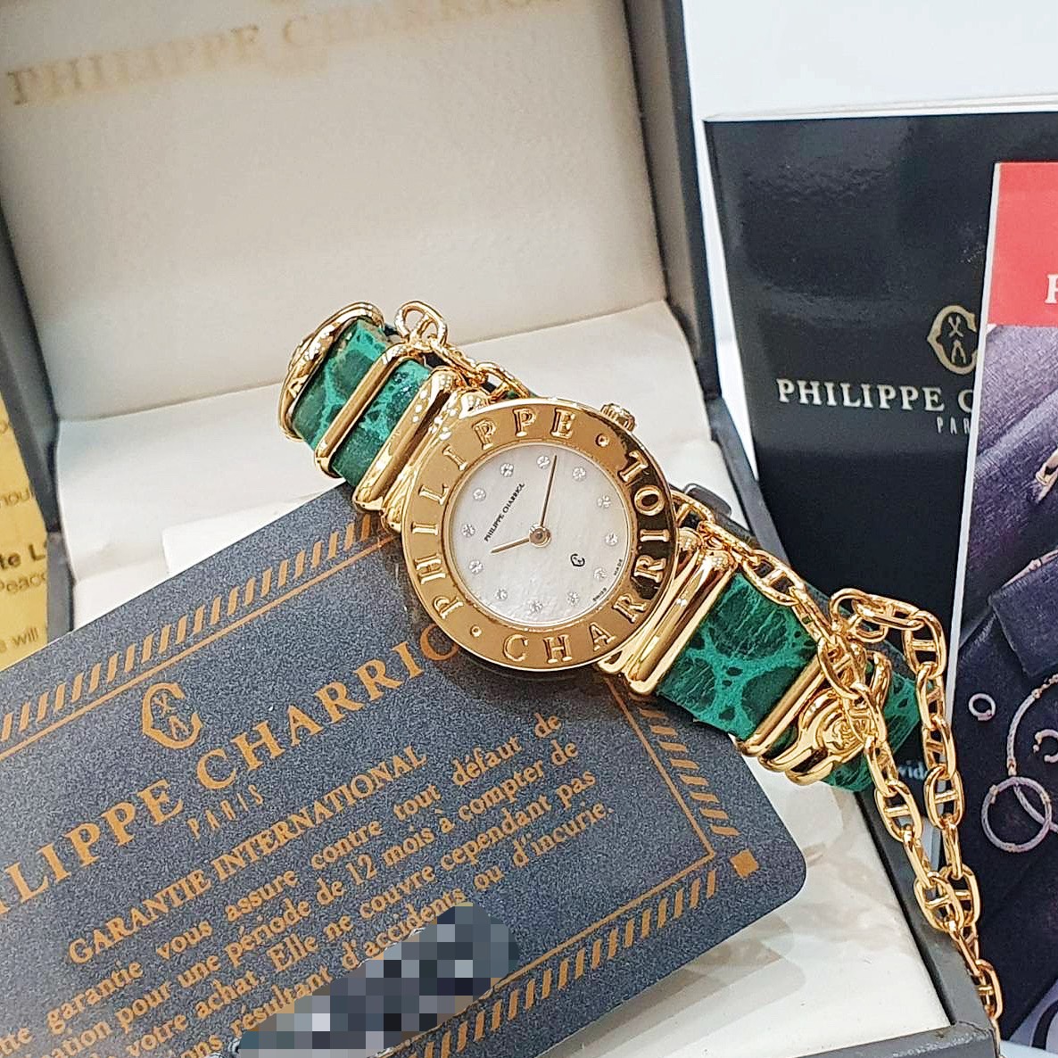 PHILIPPE CHARRIOL 夏利豪 7007901 珍珠貝殼面 鑽石時標 鍍金款 原廠皮帶/錶扣 錶徑24mm 石英機芯 不鏽鋼材質 生活防水 原廠盒單齊全 保養完成
