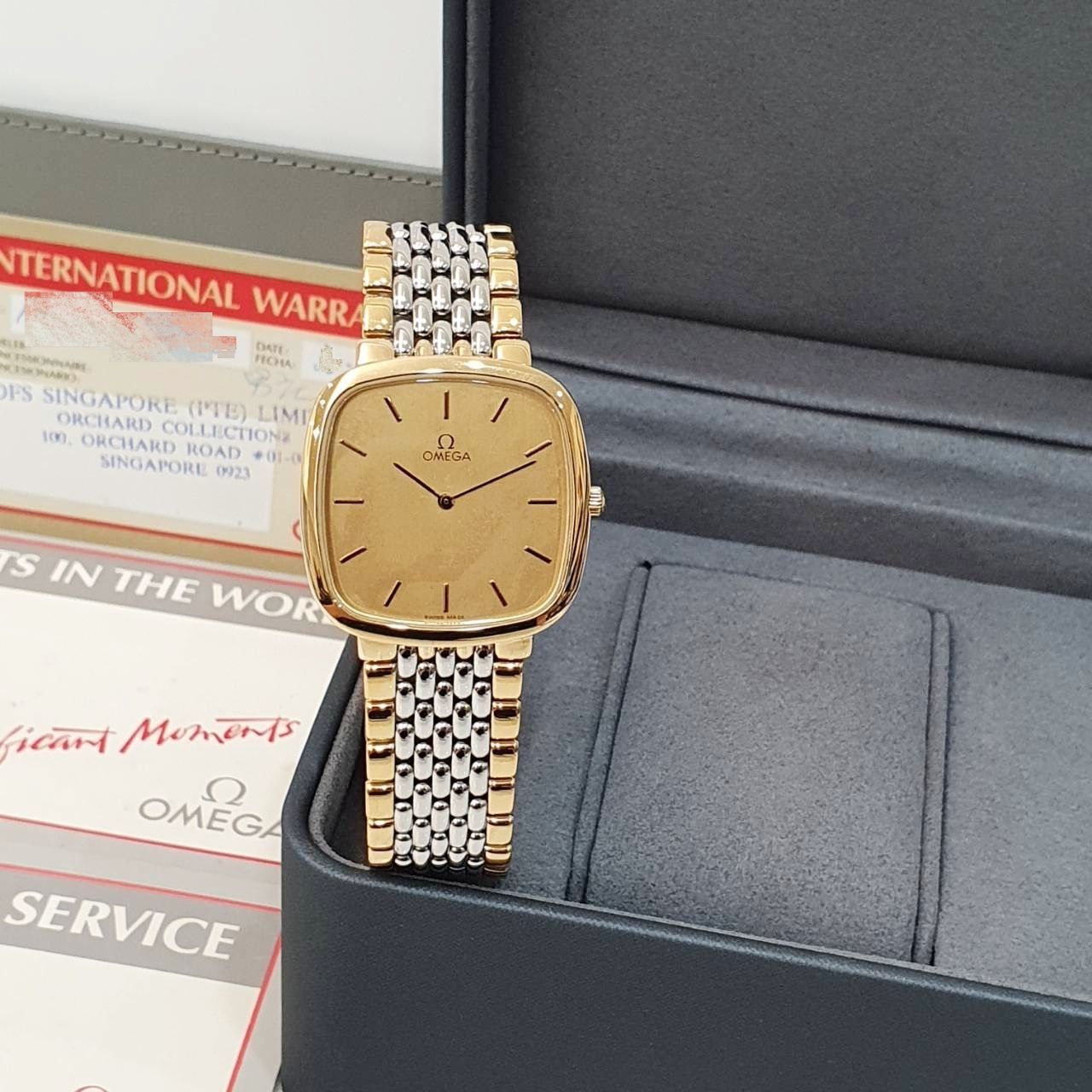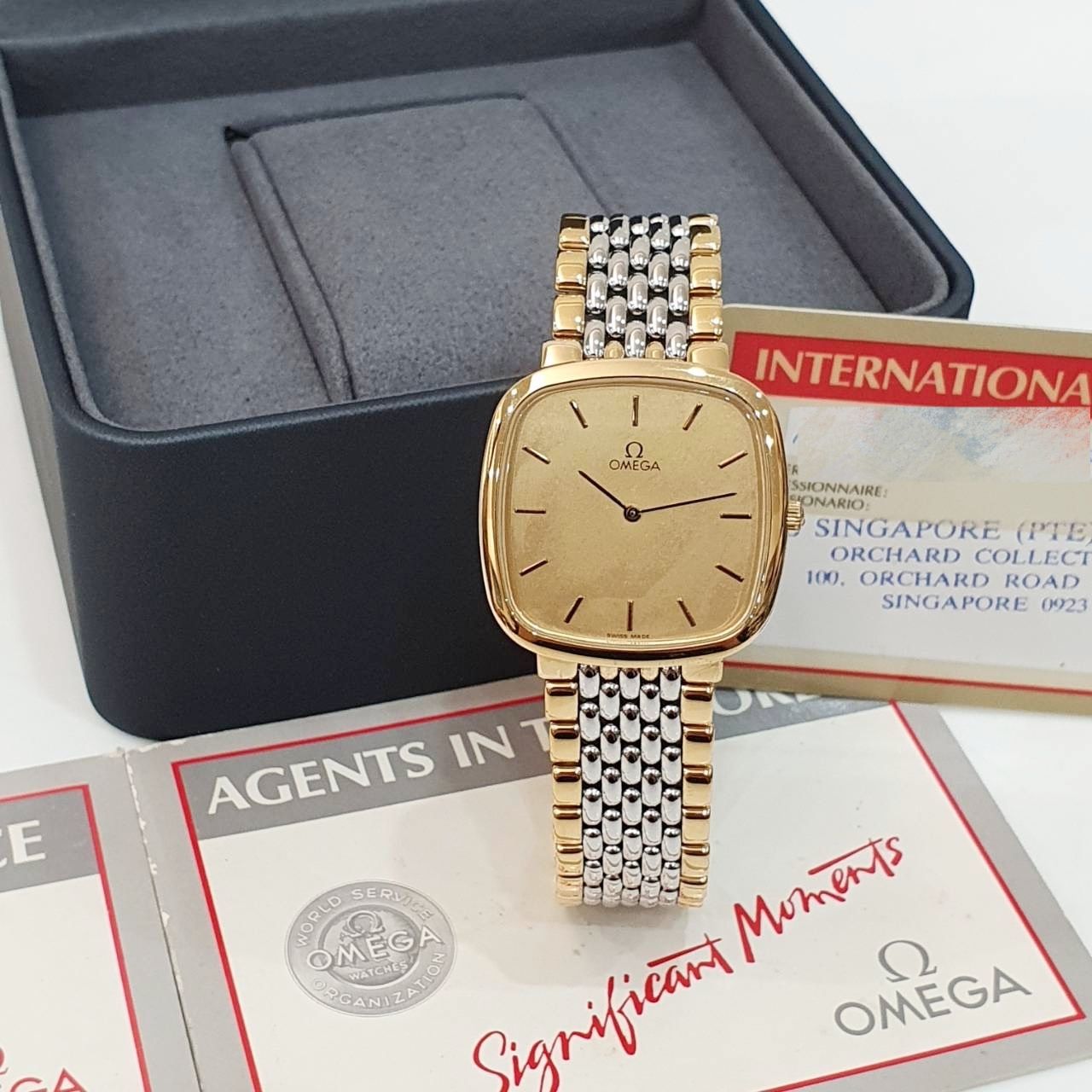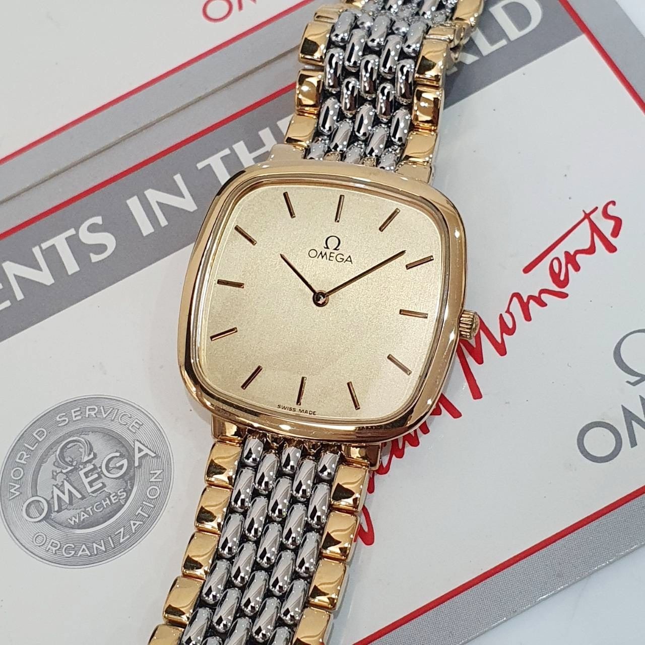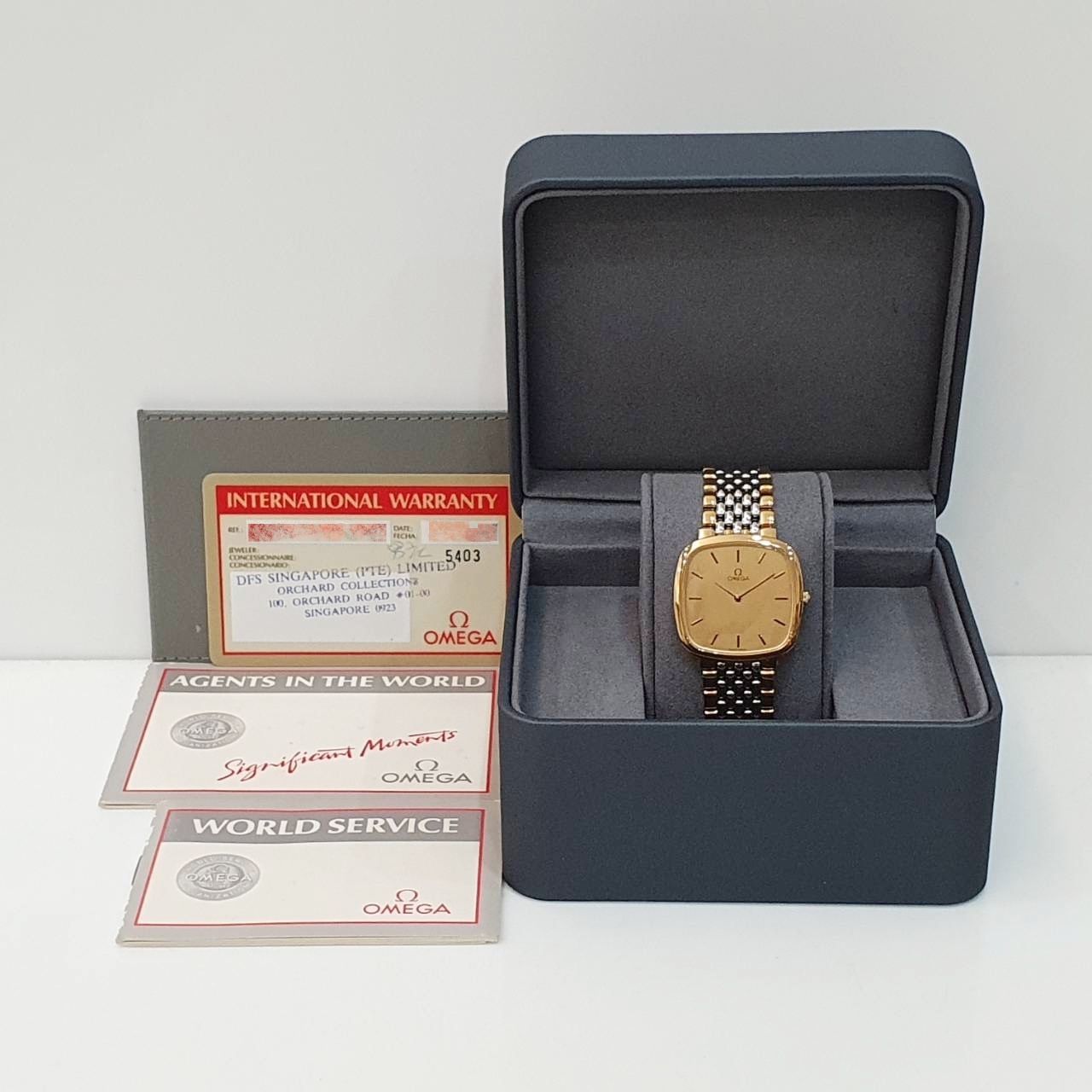 OMEGA歐米茄 395.0877 De Ville碟飛系列 金色T柱面盤 經典收藏 錶徑30mm 石英機芯 不鏽鋼材質 生活防水 原廠保卡 精美盒裝 保養完成
