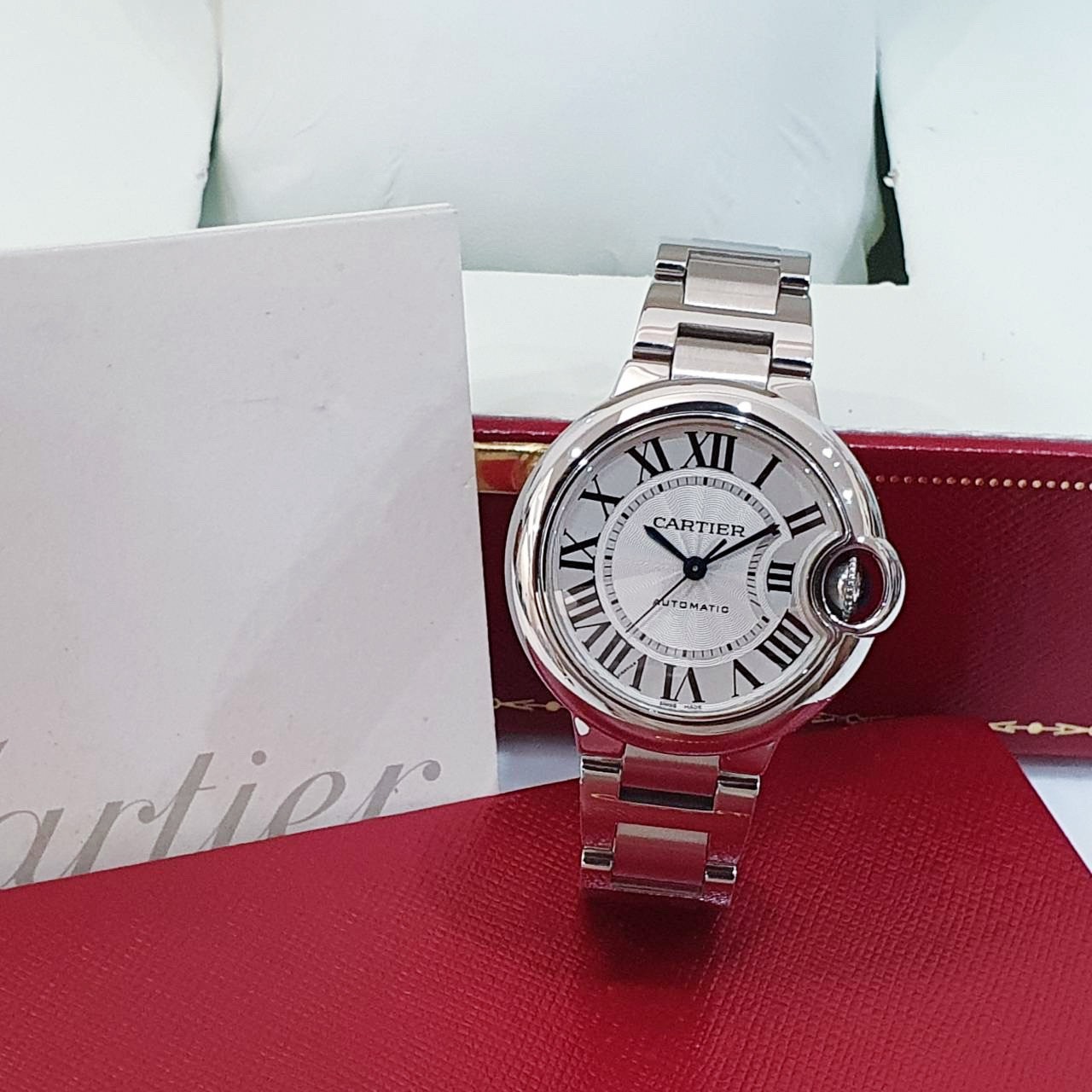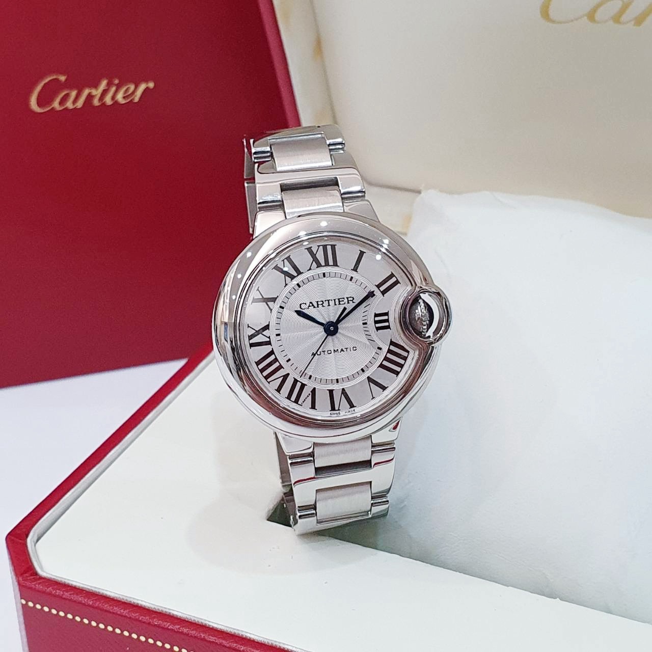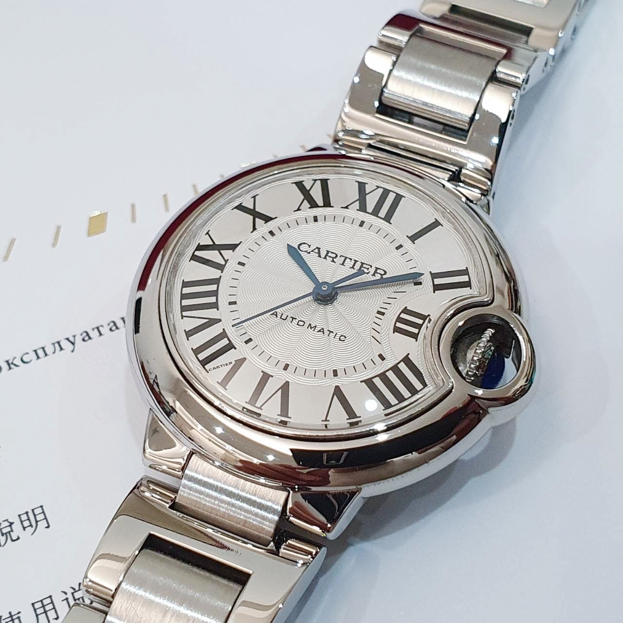 Cartier卡地亞 W6920071 經典Ballon Blue系列 2013/10 中型款 藍氣球 羅馬時標面盤 錶徑33mm 自動上鍊 不鏽鋼材質 防水30米 原廠盒單齊全 保養完成