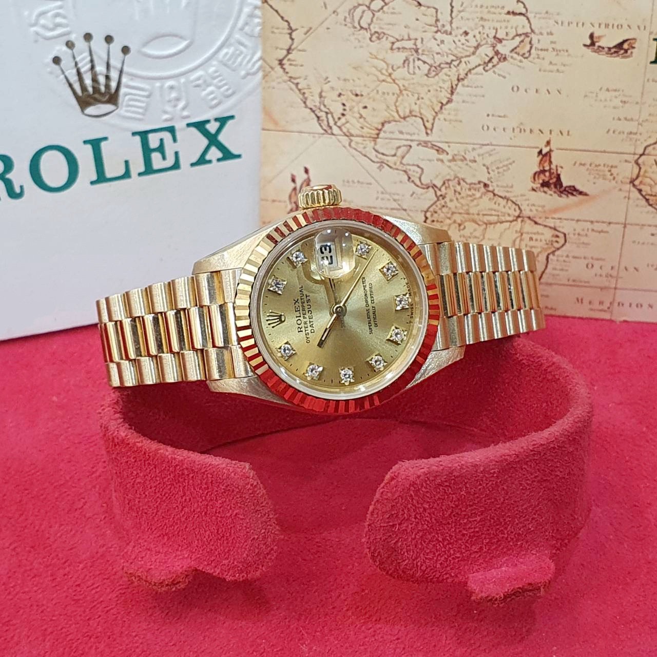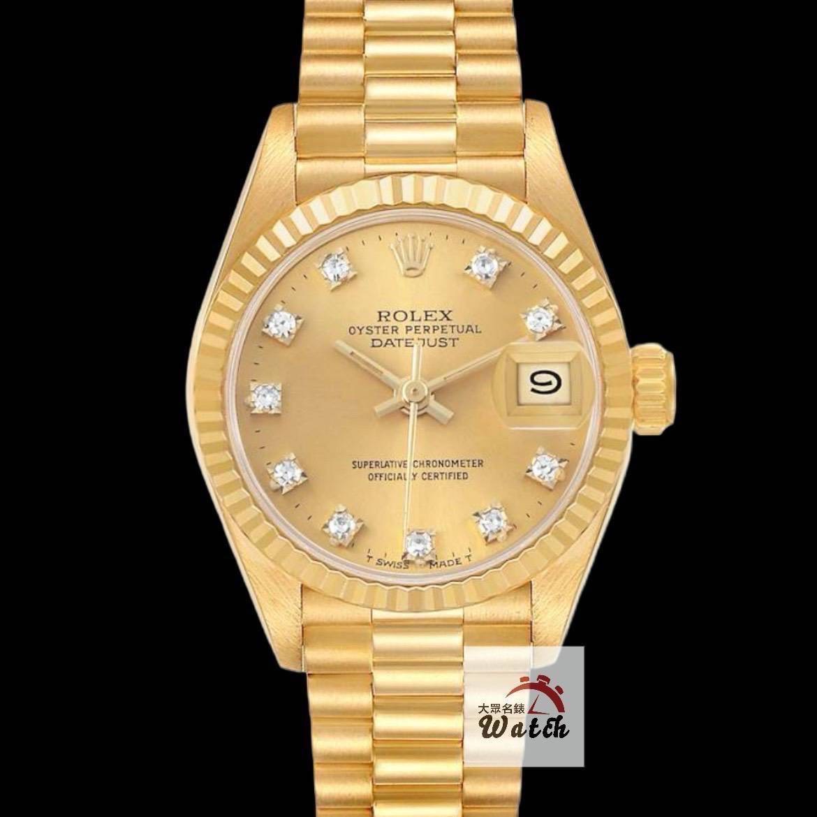 ROLEX 勞力士69178 Datejust 18K金 蠔式女錶 台灣公司貨 金色十鑽面盤 錶徑26mm 自動上鍊 18K金材質 防水100米 S字頭 原廠盒單齊全 保養完成