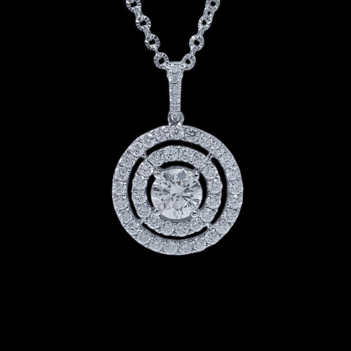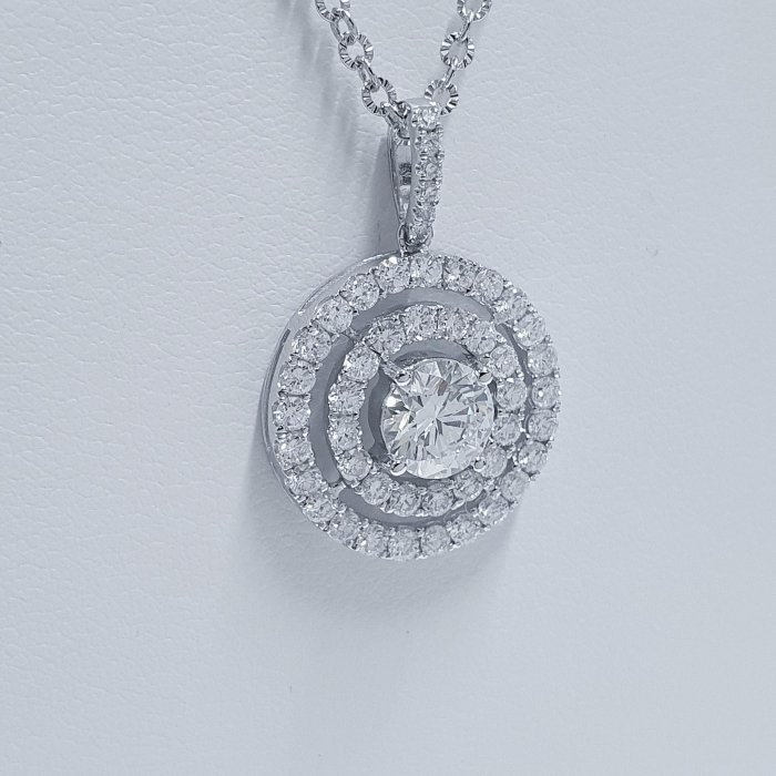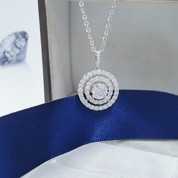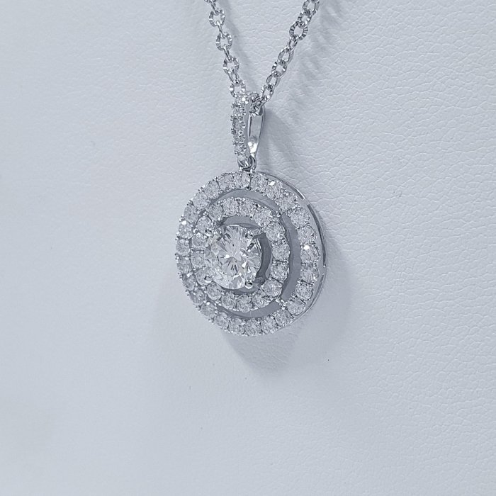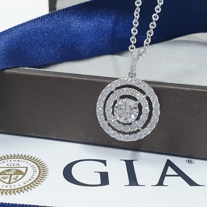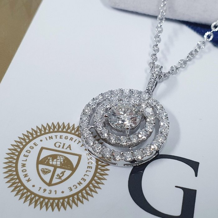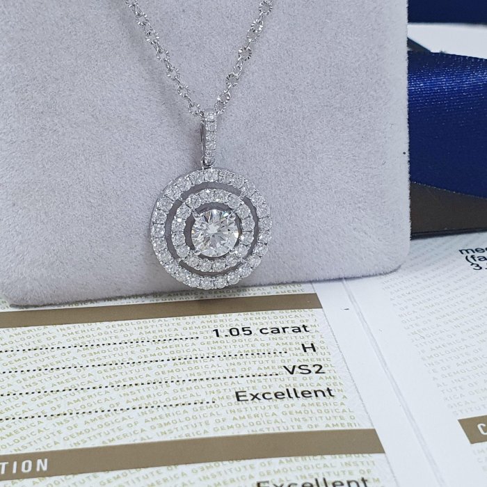 全新品 GIA鑽石項鍊 雙排鑽圈 主鑽1.05克拉 H色VS2 8心8箭3EX完美車工 750K金墜台 配鑽約1.01ct 墜2.5x1.7cm 白金項鍊 附GIA證書 精美盒裝
