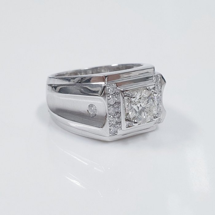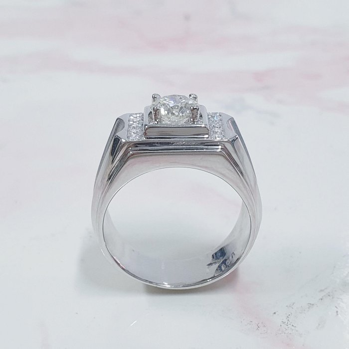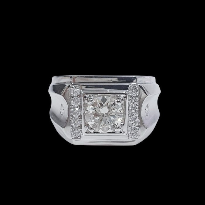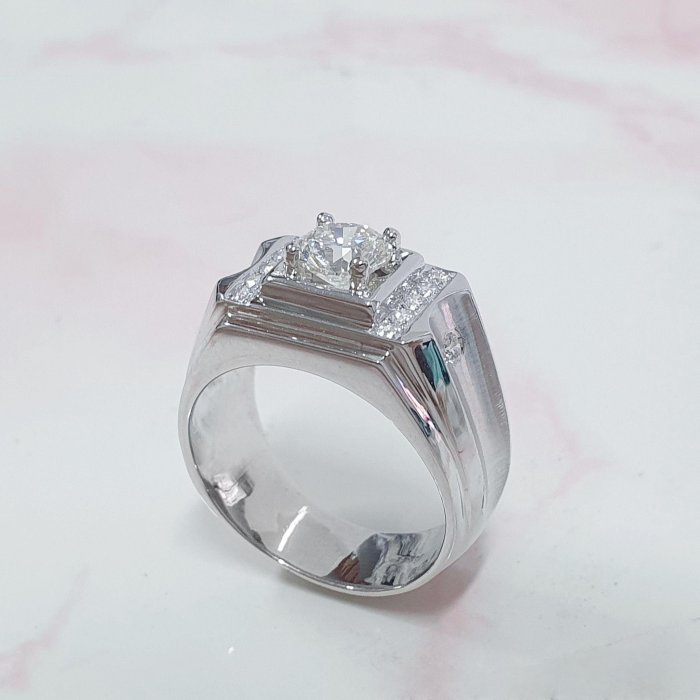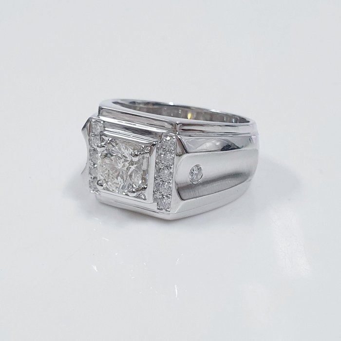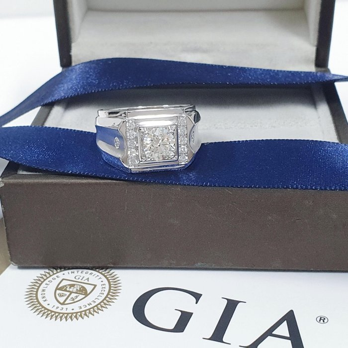 GIA鑽石男戒 大方俐落 主鑽1.01克拉 K色 VVS1 8心8箭 白K金鑽石台 配鑽約0.24ct 國際圍15.5號 面寬1.3cm 總重2.55錢 附GIA證書 精美盒裝