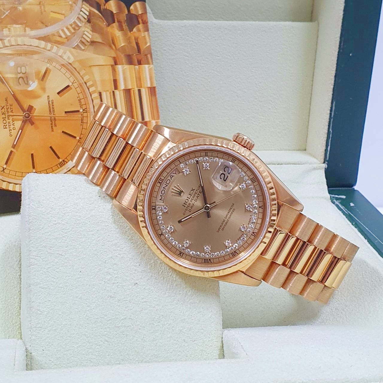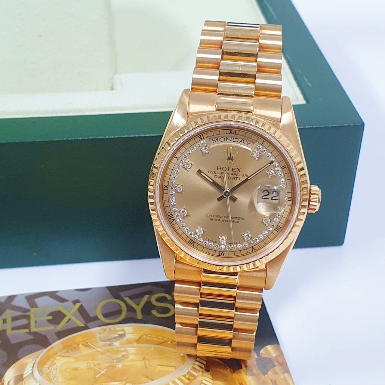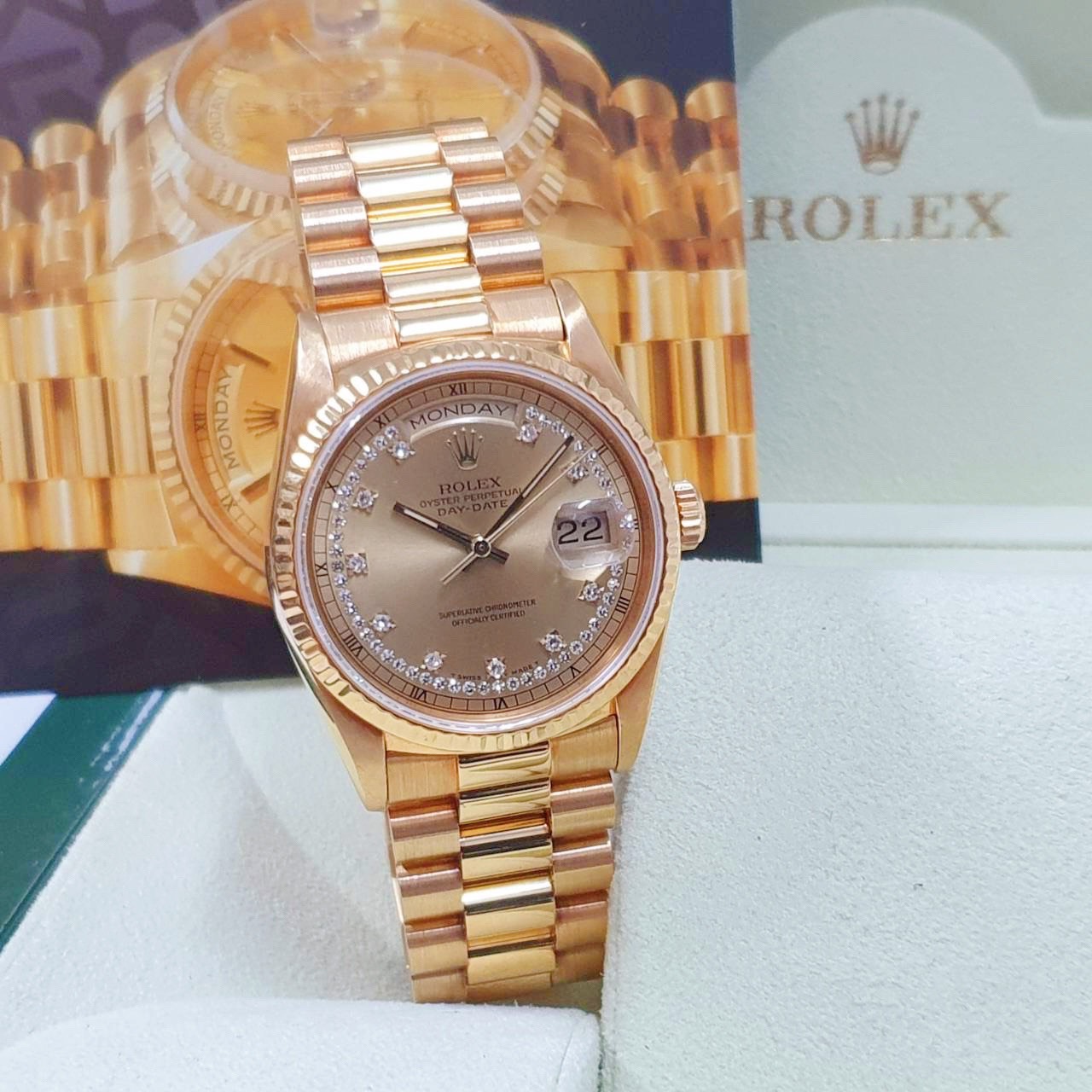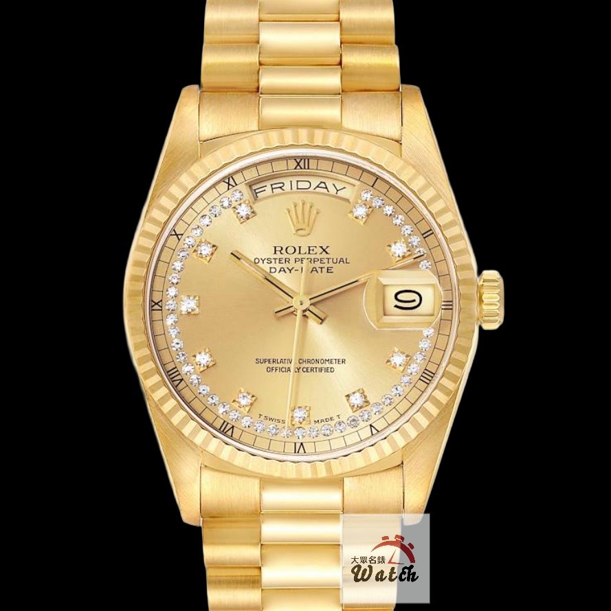 Rolex 勞力士 18238 Day-Date 蠔式18K金 多層鑽面盤 錶徑36mm 自動上鍊 18K金材質 防水100米 L字頭 附原廠盒裝 店保卡