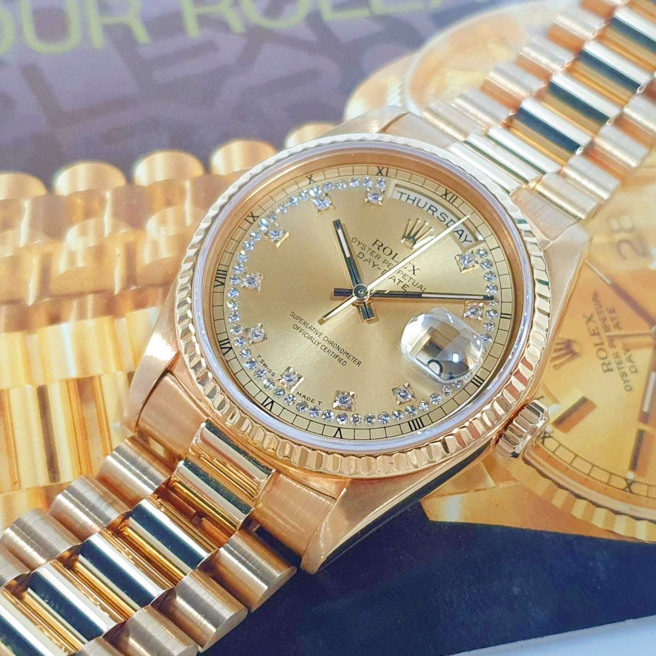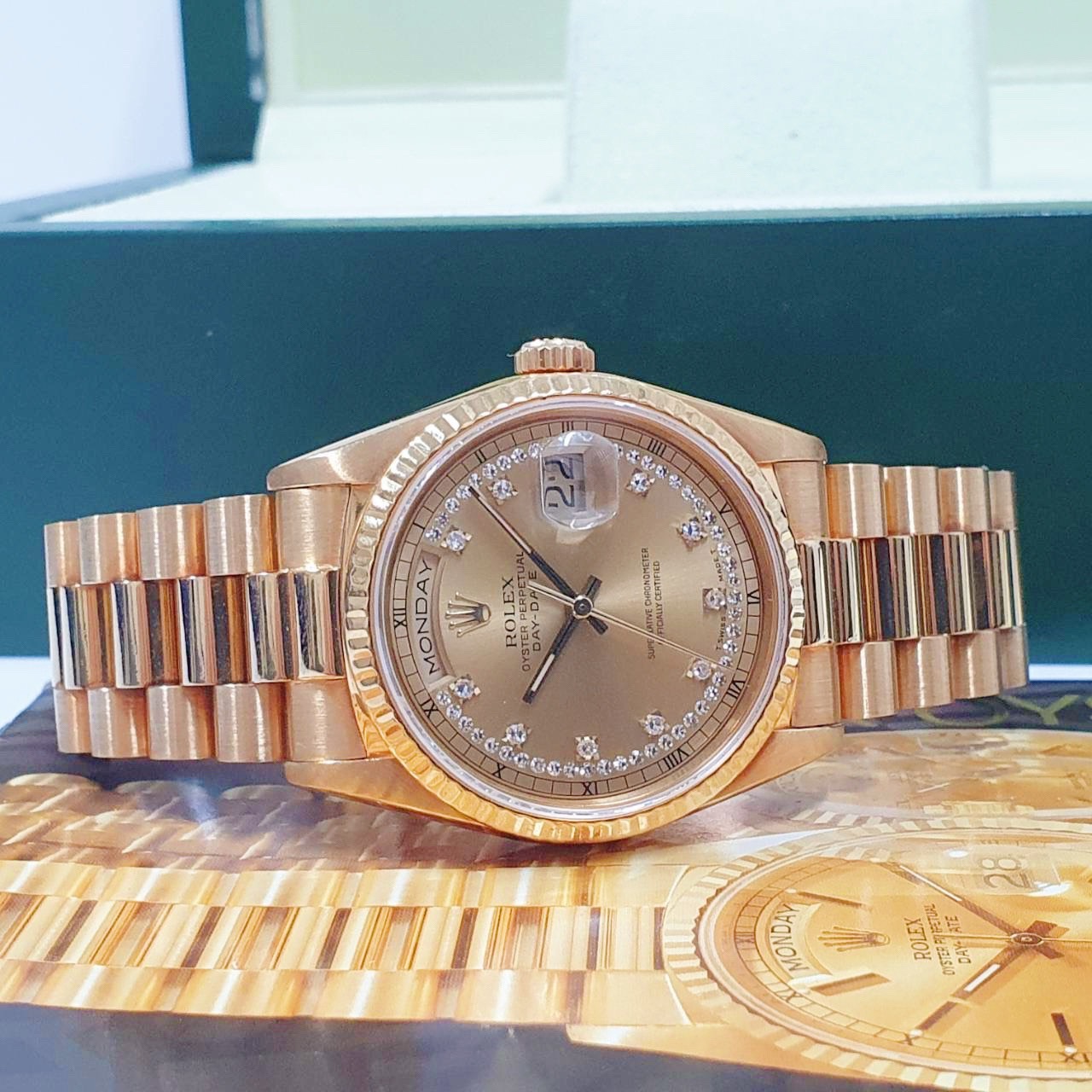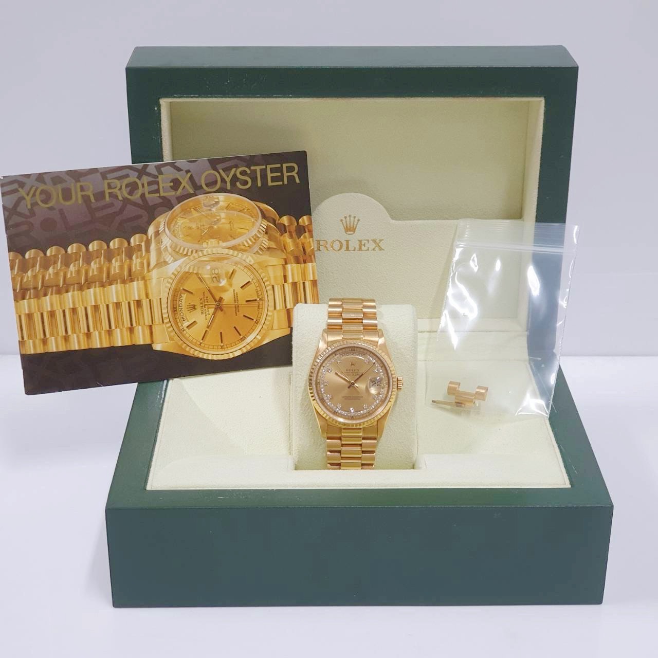Rolex 勞力士 18238 Day-Date 蠔式18K金 多層鑽面盤 錶徑36mm 自動上鍊 18K金材質 防水100米 L字頭 附原廠盒裝 店保卡