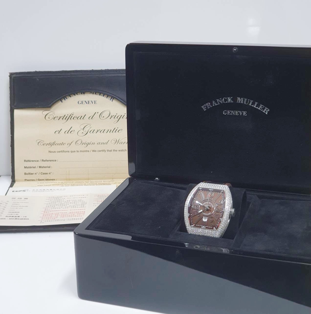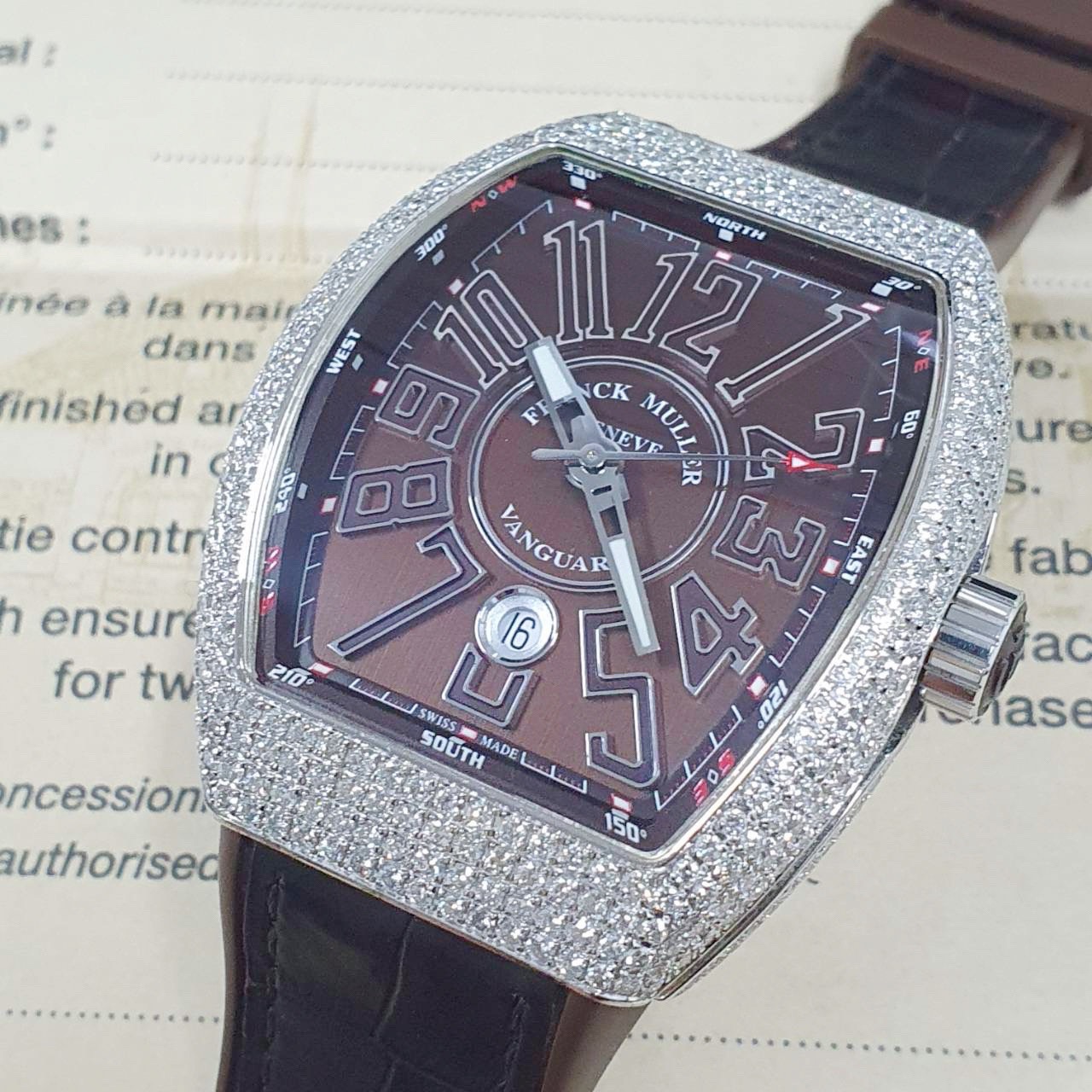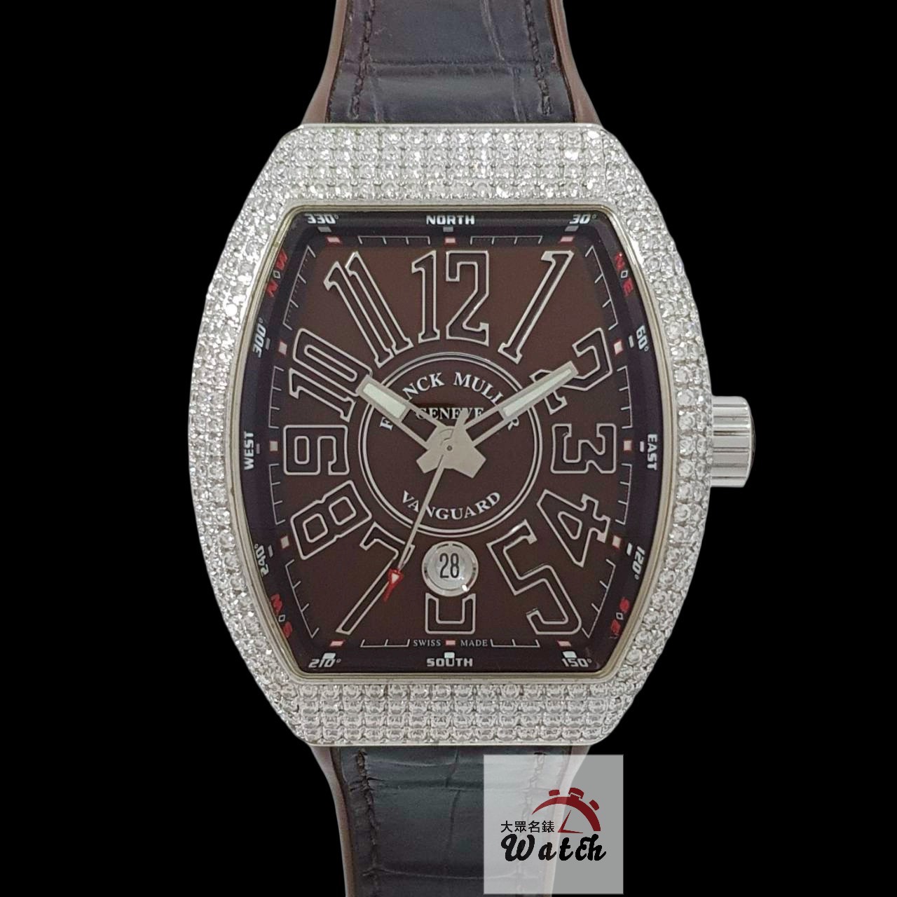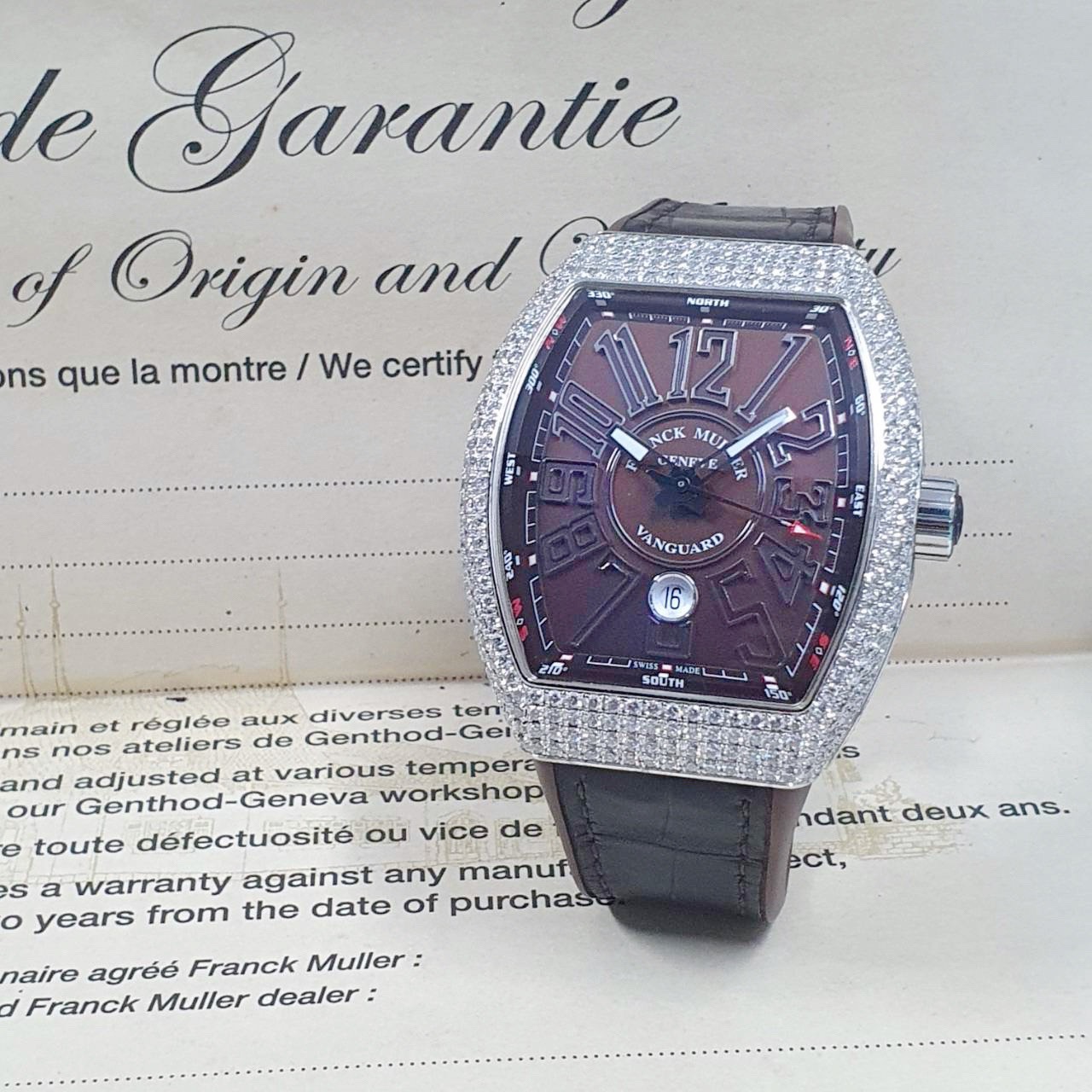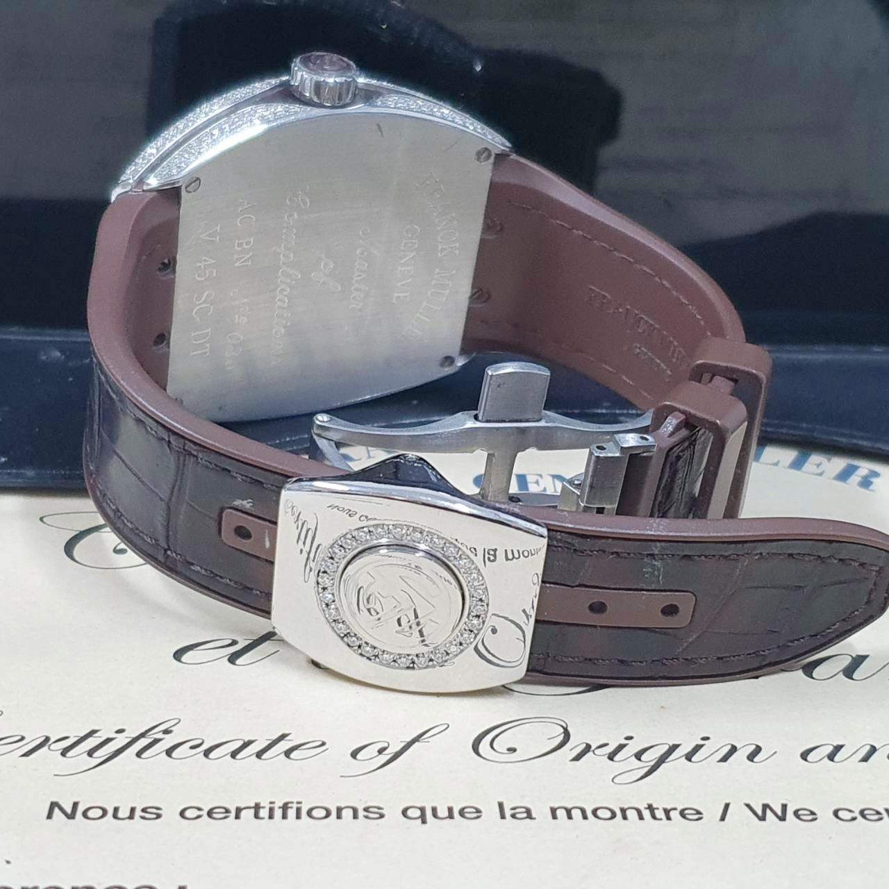 Franck Muller 法蘭克穆勒 V45 SC DT 精鑲鑽石錶圈 巧克力數字面盤 錶徑45mm 自動上鍊 不鏽鋼材質 皮膠帶 生活防水 原廠盒單齊全