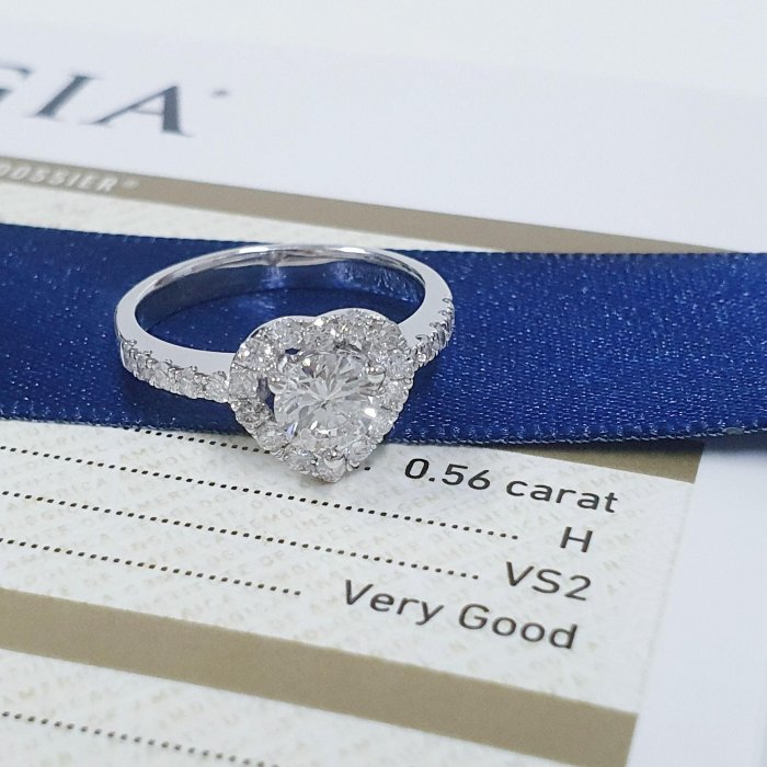 全新品 GIA鑽石女戒 哈尚愛心款 主鑽56分 H色 VS2 8心8箭 585K金鑽石台 配鑽約0.40ct 國際圍10號 面寬1.1cm 總重0.79錢 附GIA證書 精美盒裝