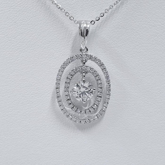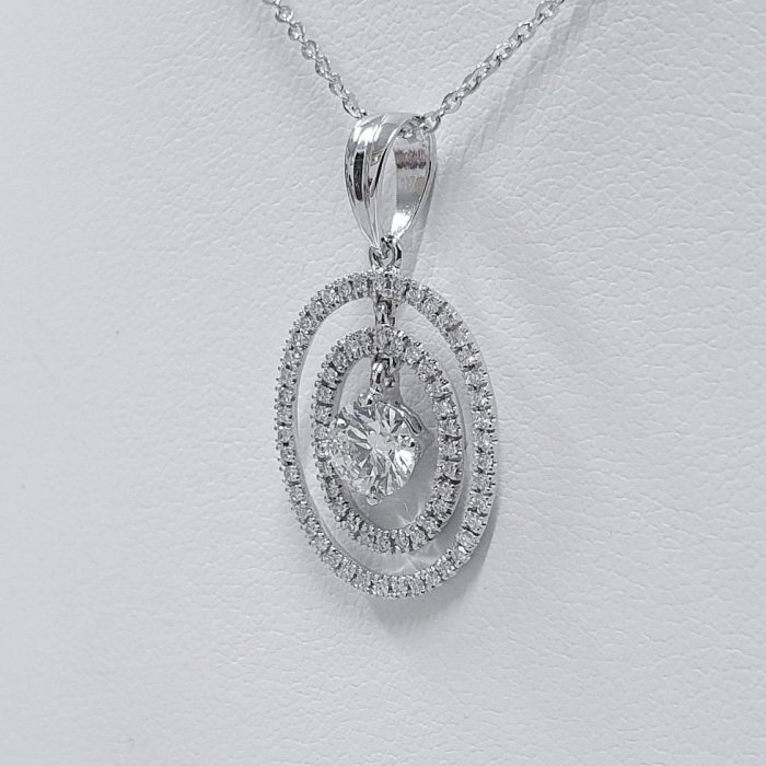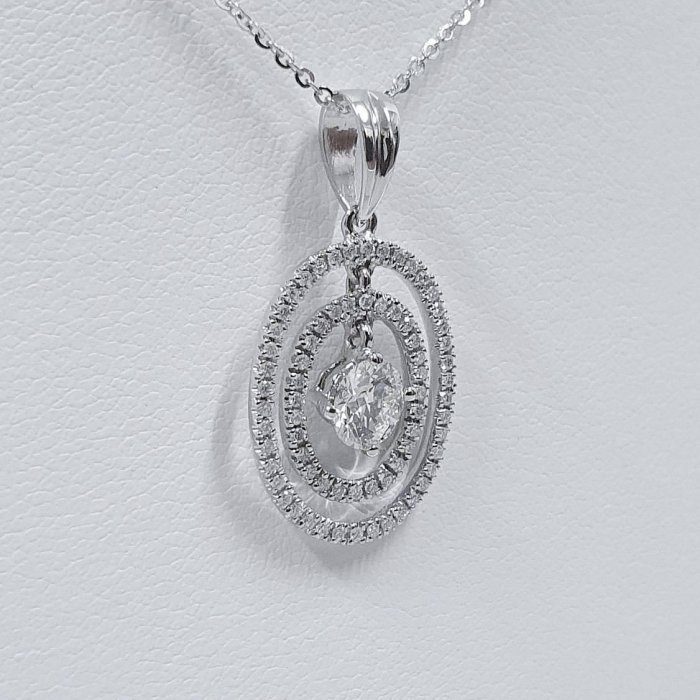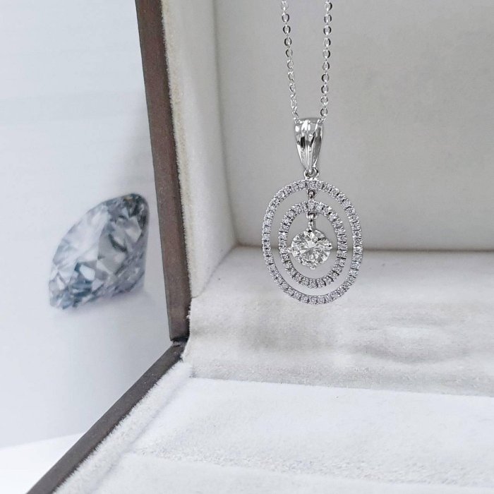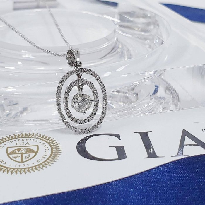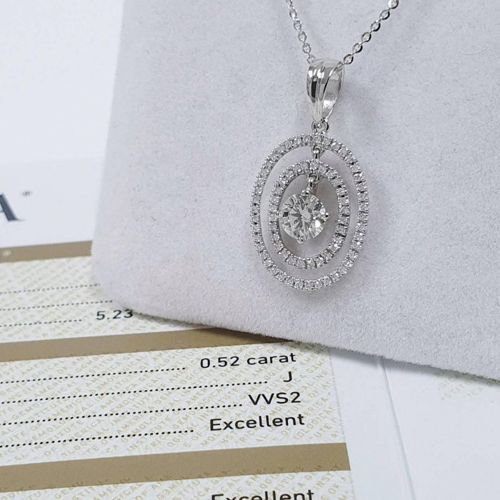全新品GIA鑽石項鍊 橢圓雙鑽圈款 主鑽52分 J色VVS2 3EX完美車工 8心8箭 750K金墜台 墜2.5x1.5cm 配鑽約0.50ct 重0.58錢 白金項鍊 GIA證書 精美盒裝