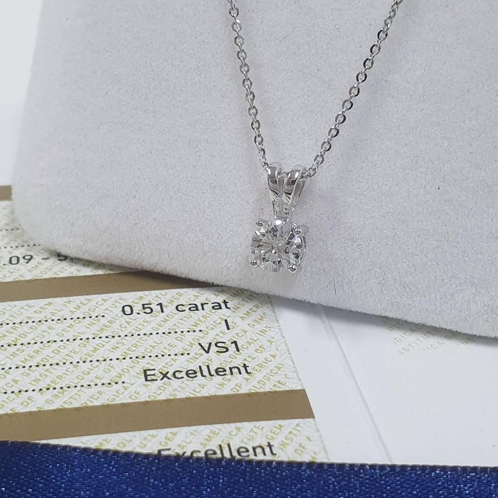 全新品GIA鑽石項鍊 經典四爪 點綴鑽款 主鑽51分 I色VS1 3EX完美車工 8心8箭 750K金墜台 墜1x0.5cm 重0.18錢 白金項鍊 GIA證書 精美盒裝