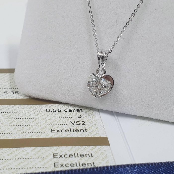全新品GIA鑽石項鍊 怦然心動 愛心款 主鑽50分 J色VS2 3EX完美車工8心8箭 750K金墜台 墜1.4x0.9cm 重0.39錢 白金項鍊 GIA證書 精美盒裝