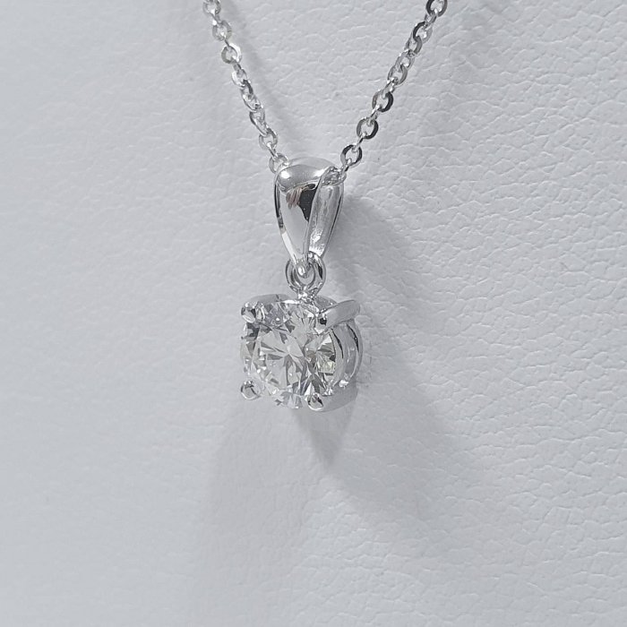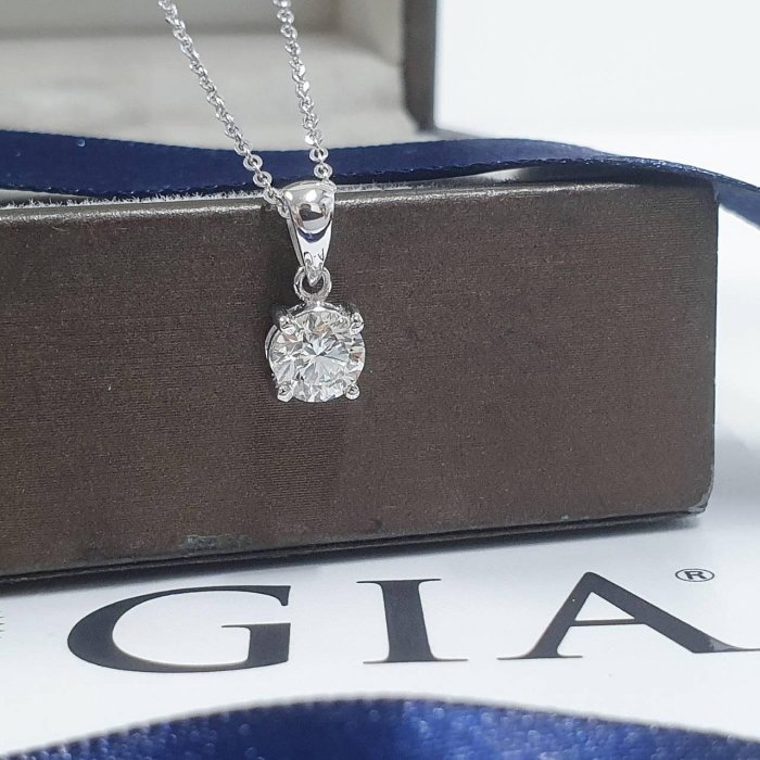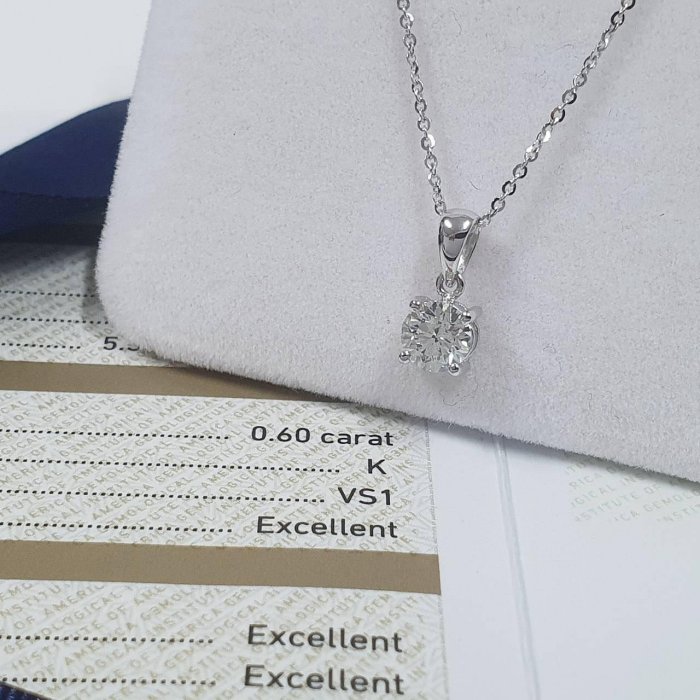 全新品GIA鑽石項鍊 經典四爪 百搭款 主鑽60分 K色VS1 3EX完美車工8心8箭 750K金墜台 墜1x0.5cm 重0.20錢 白金項鍊 GIA證書 精美盒裝